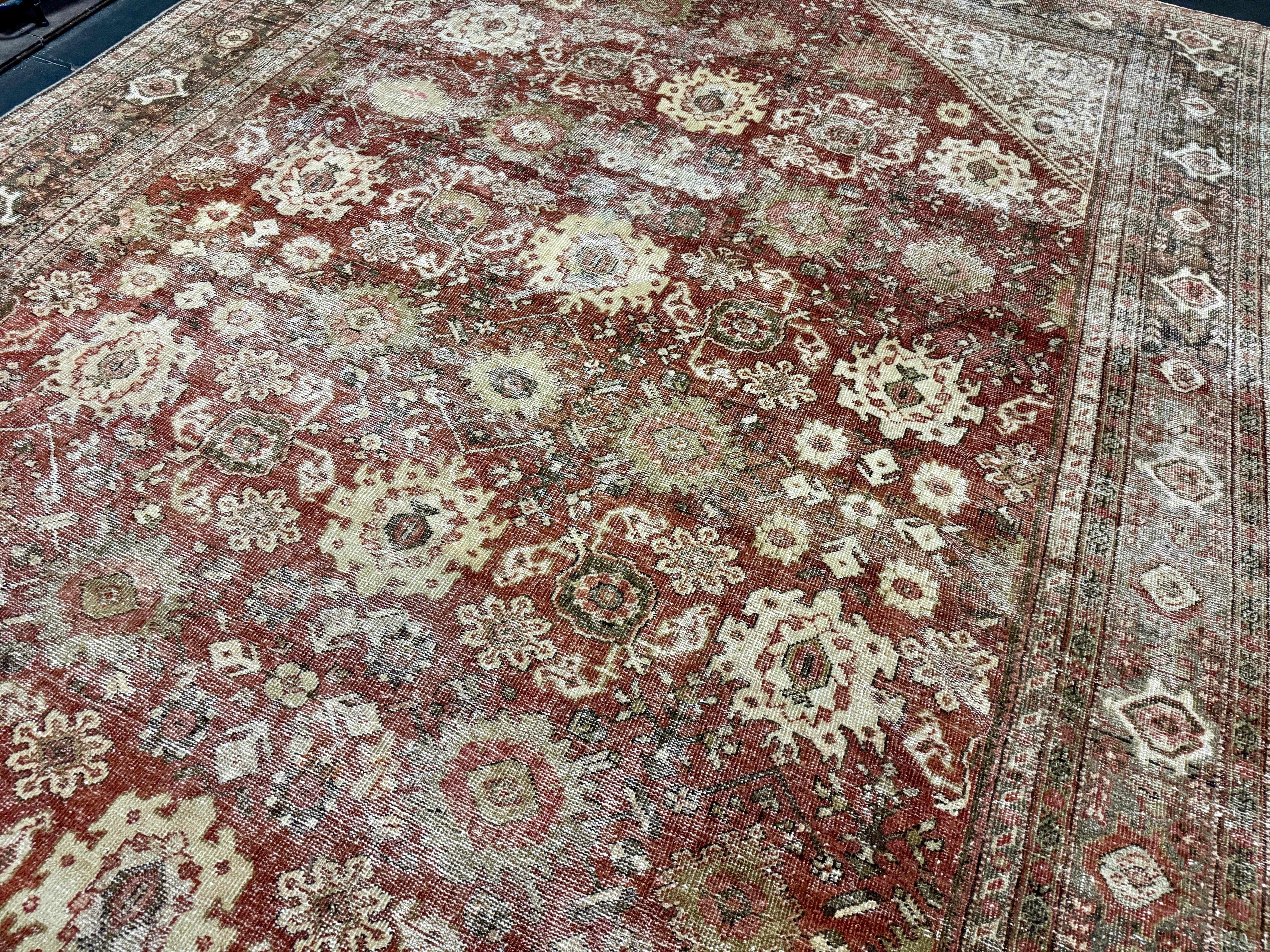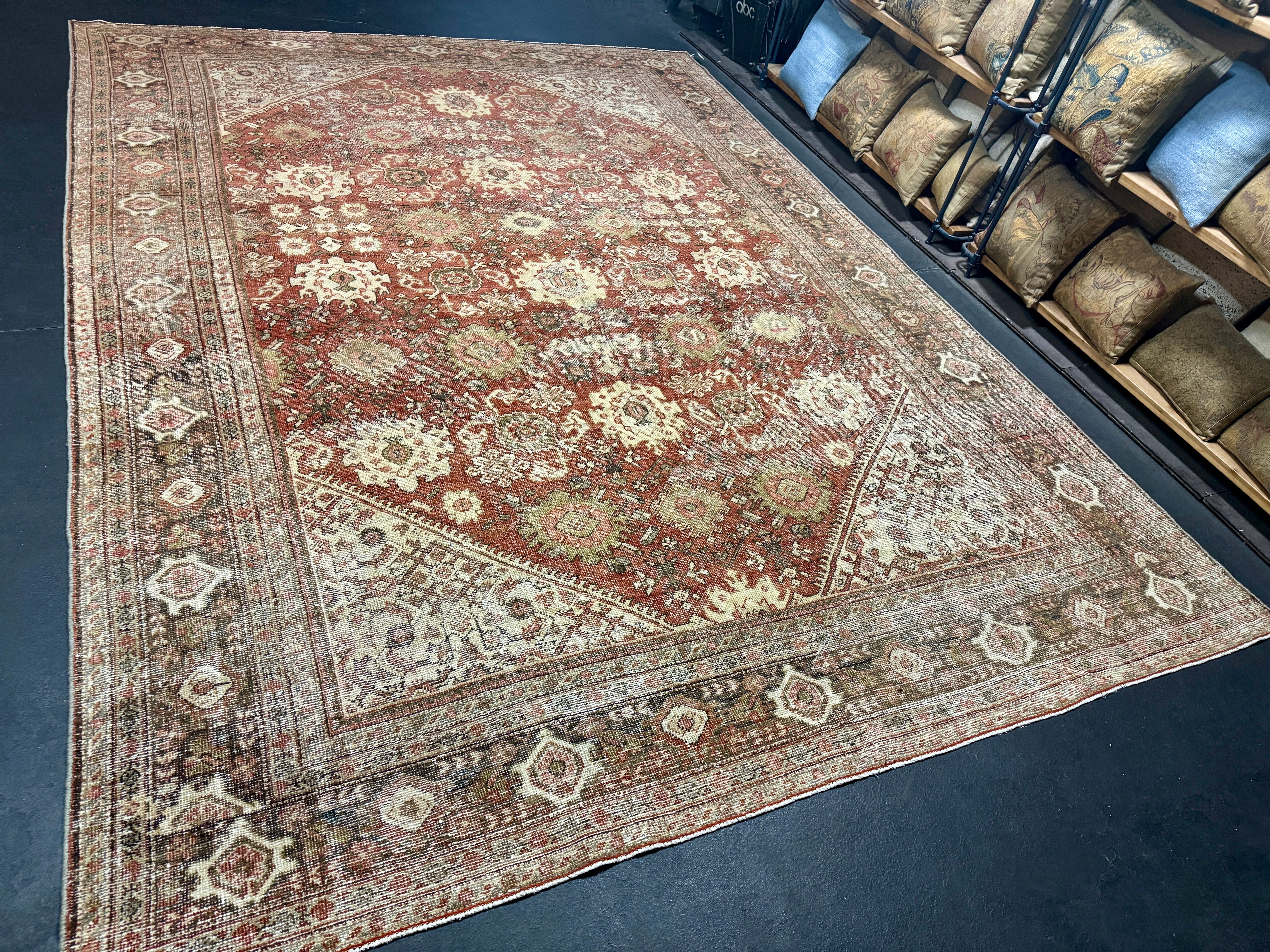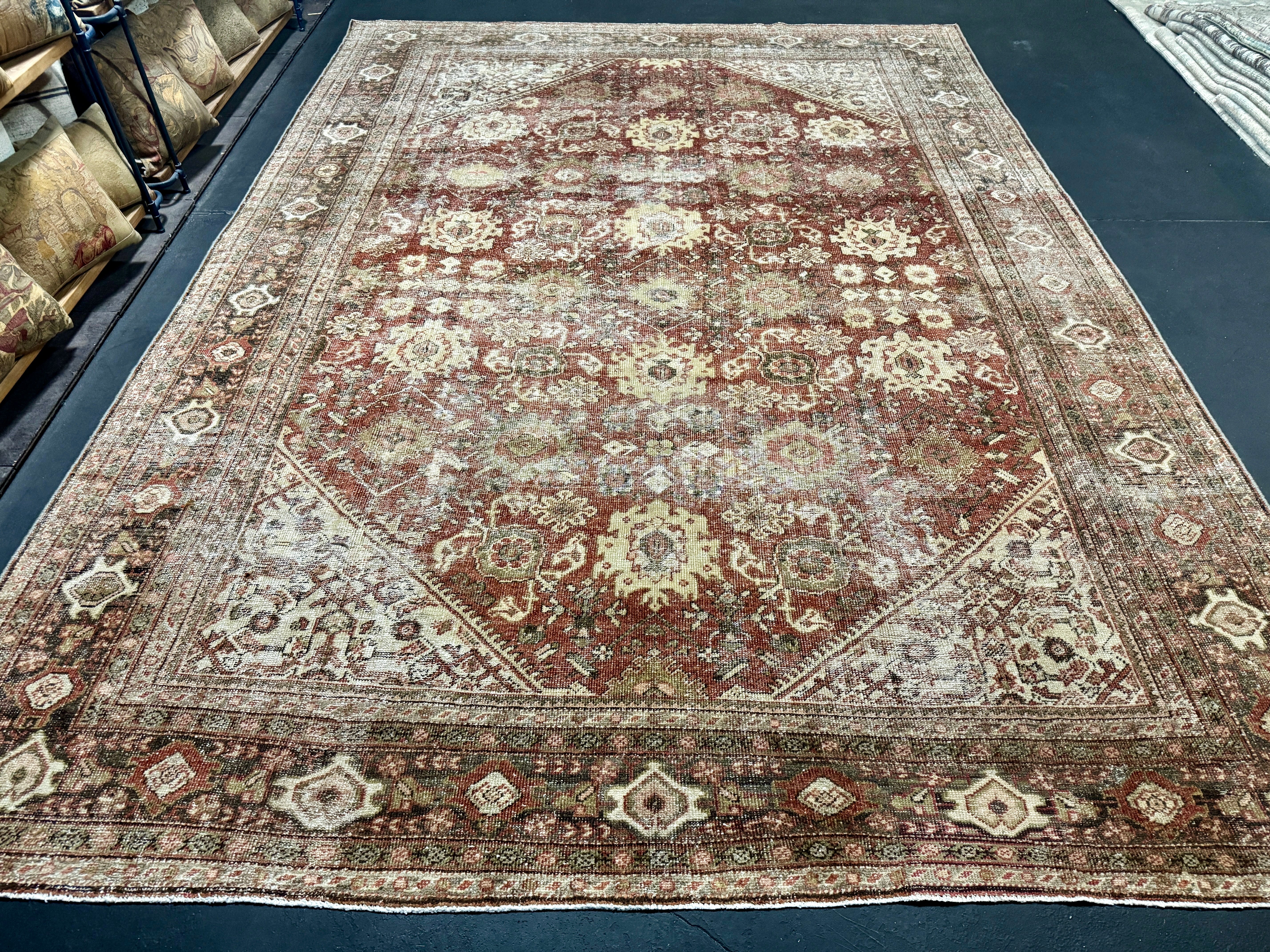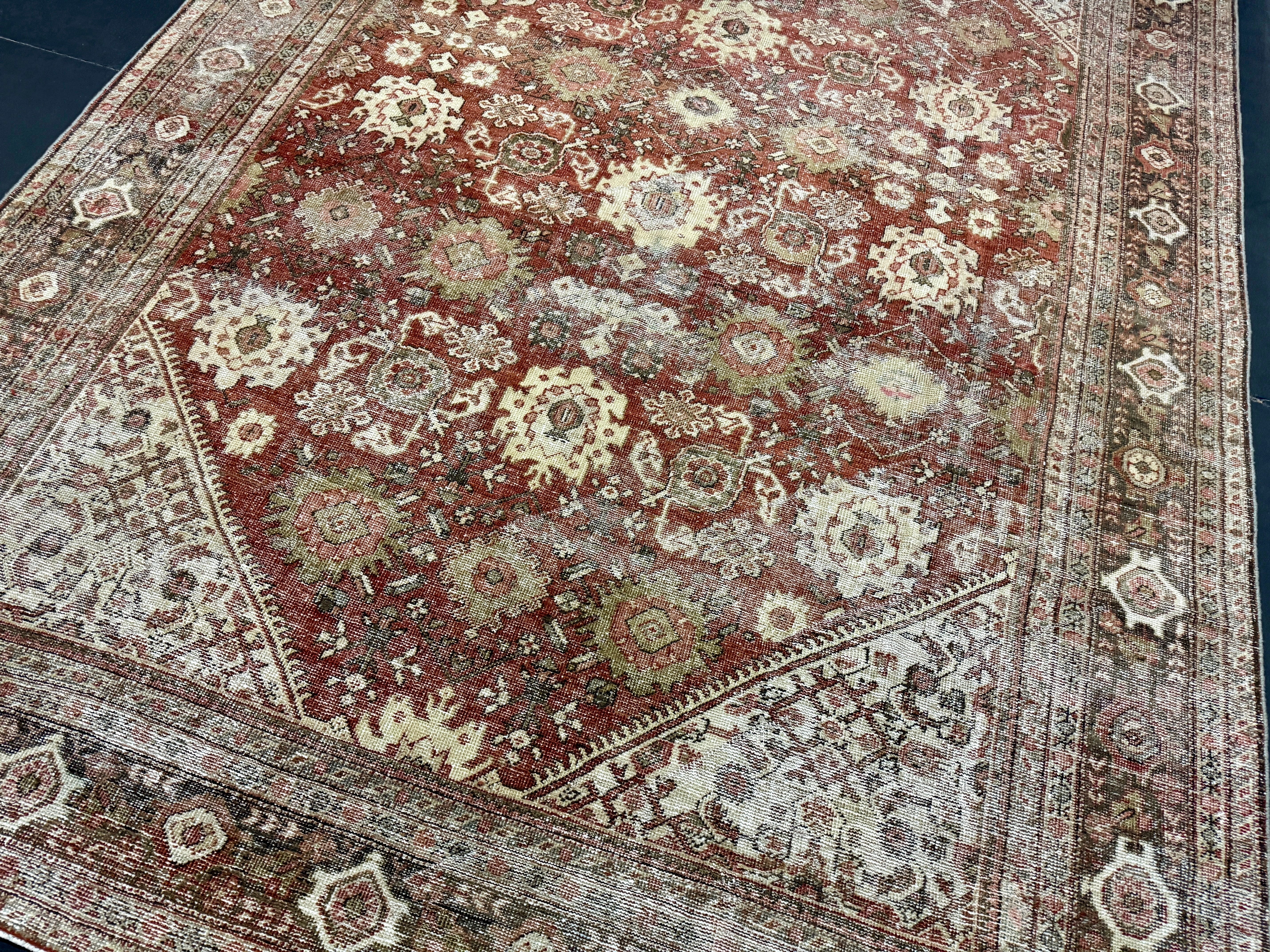 This antique Persian Mahal area rug is handmade and hand knotted using pure wool from the 30’s