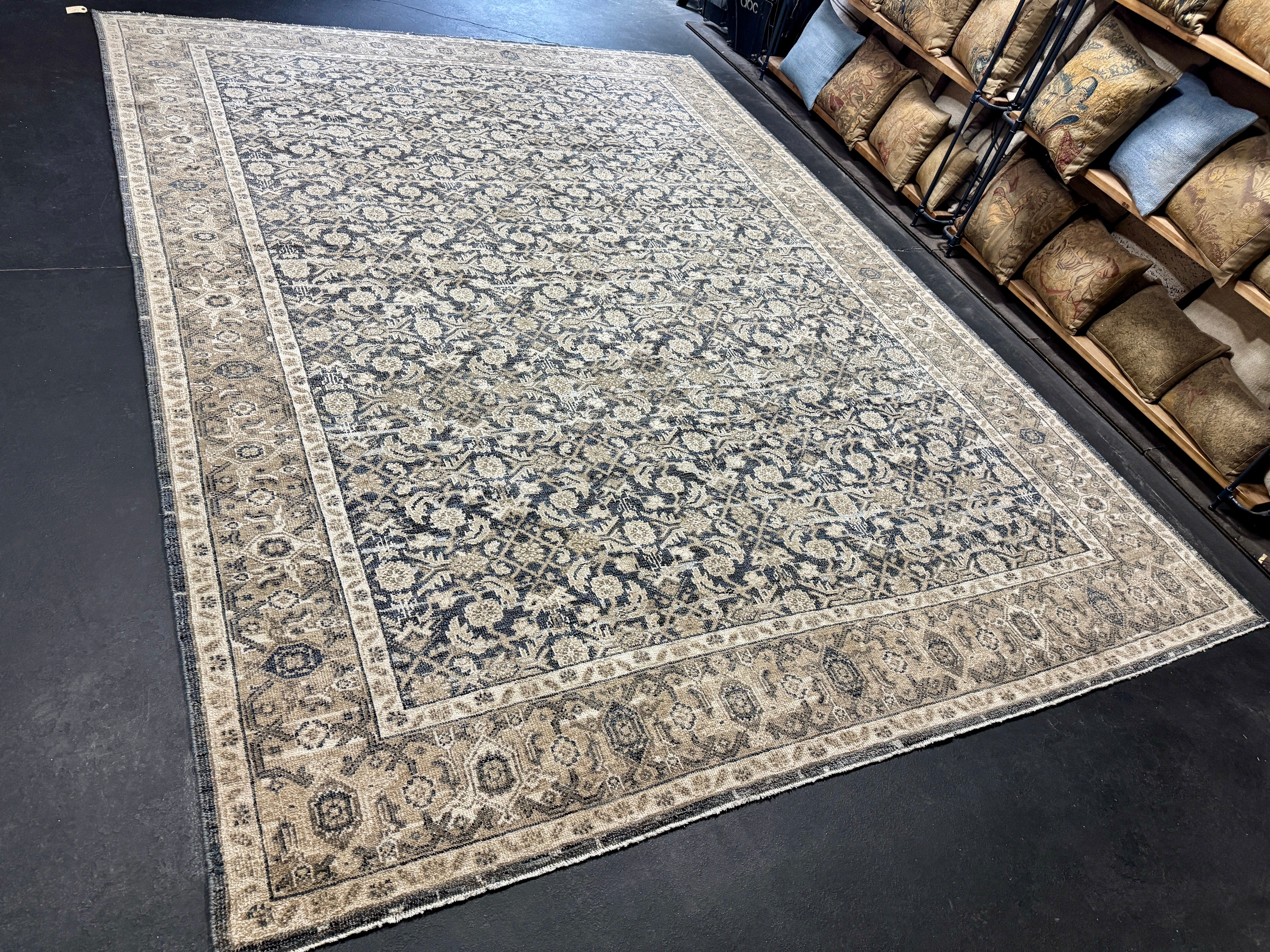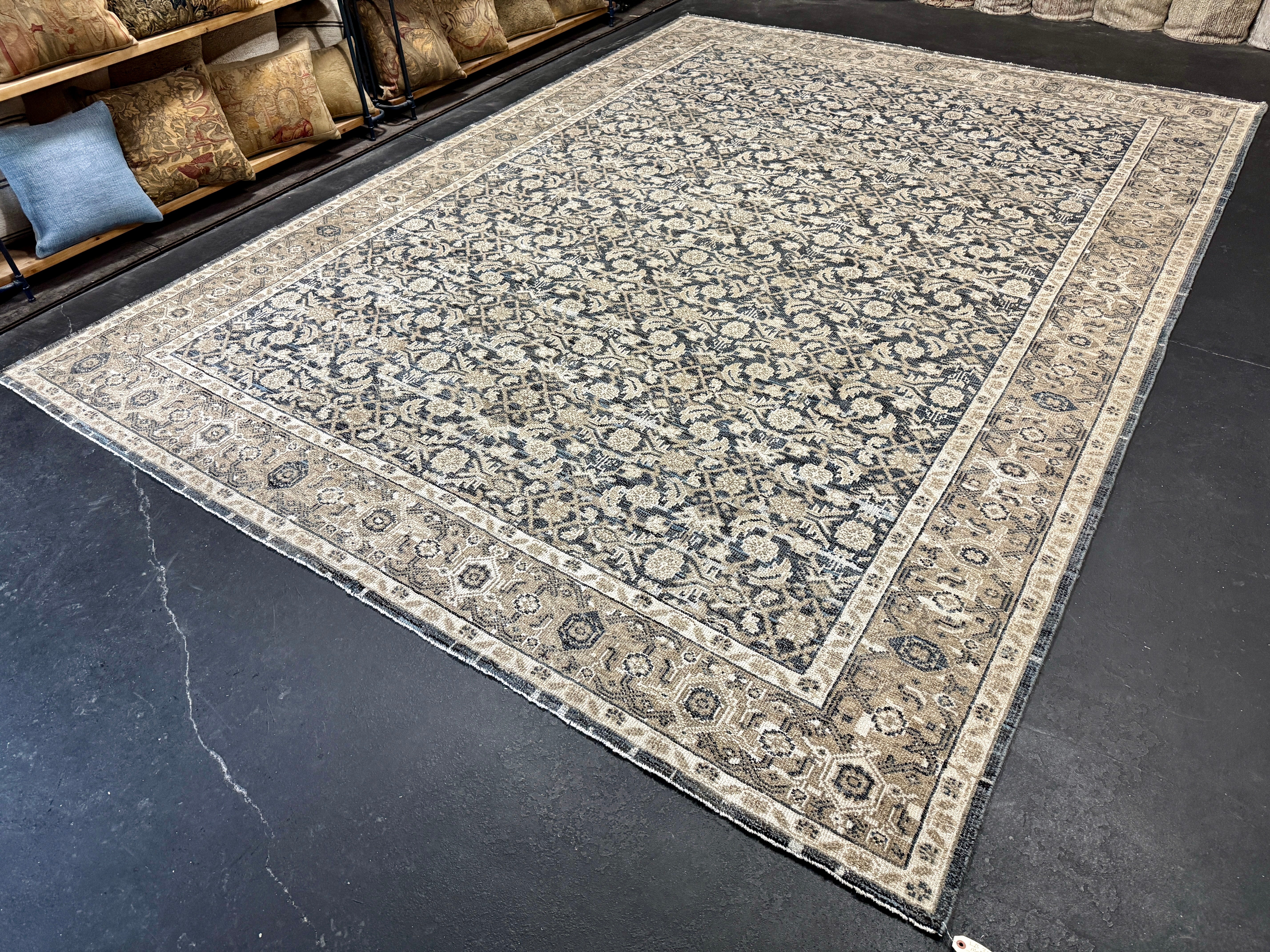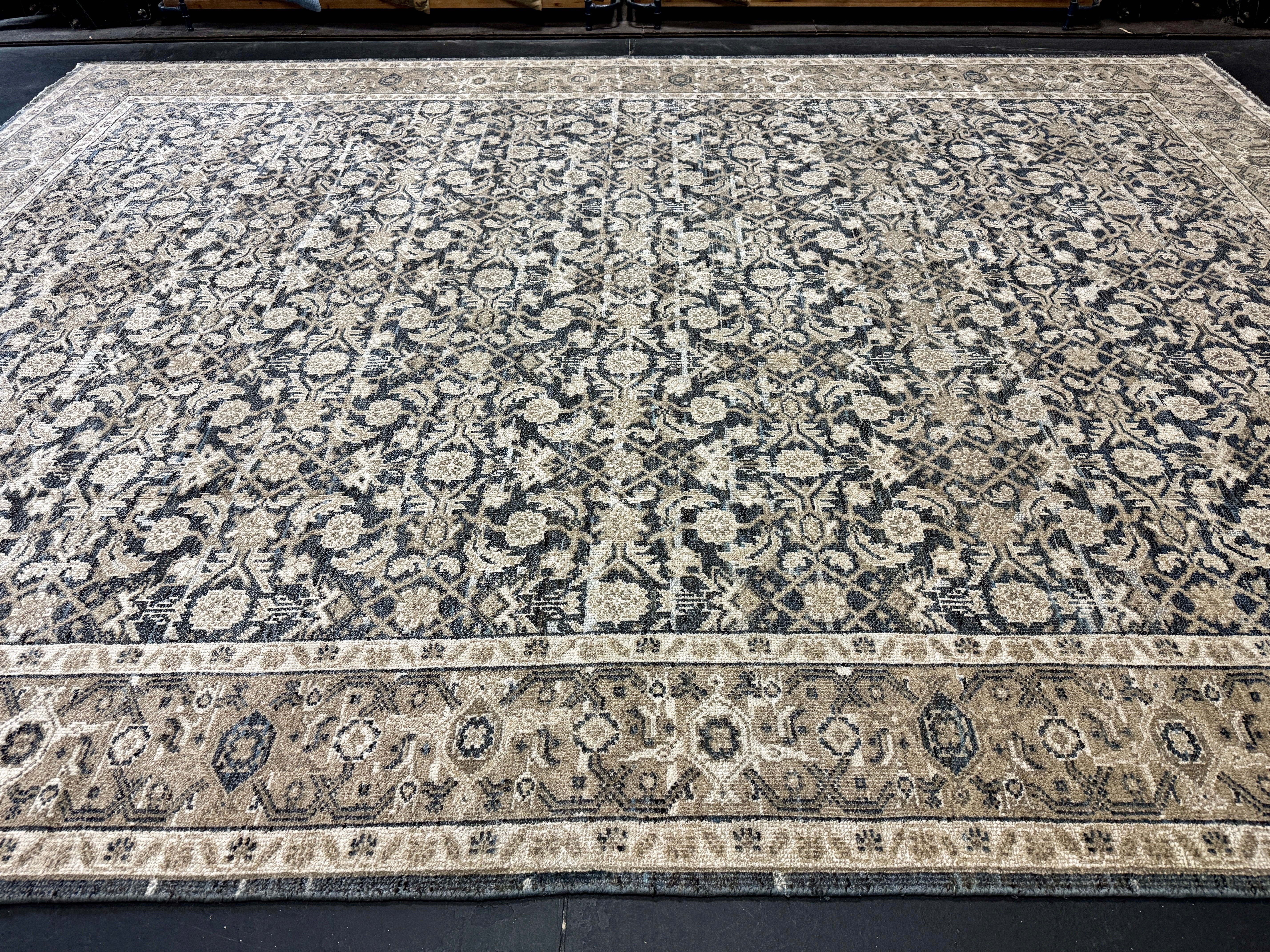 8’10 x 12’3 Persian Style Rug Pure Distressed Silk, Organic Wool + Allo Muted Midnight Blue, Taupe & Bone LB32