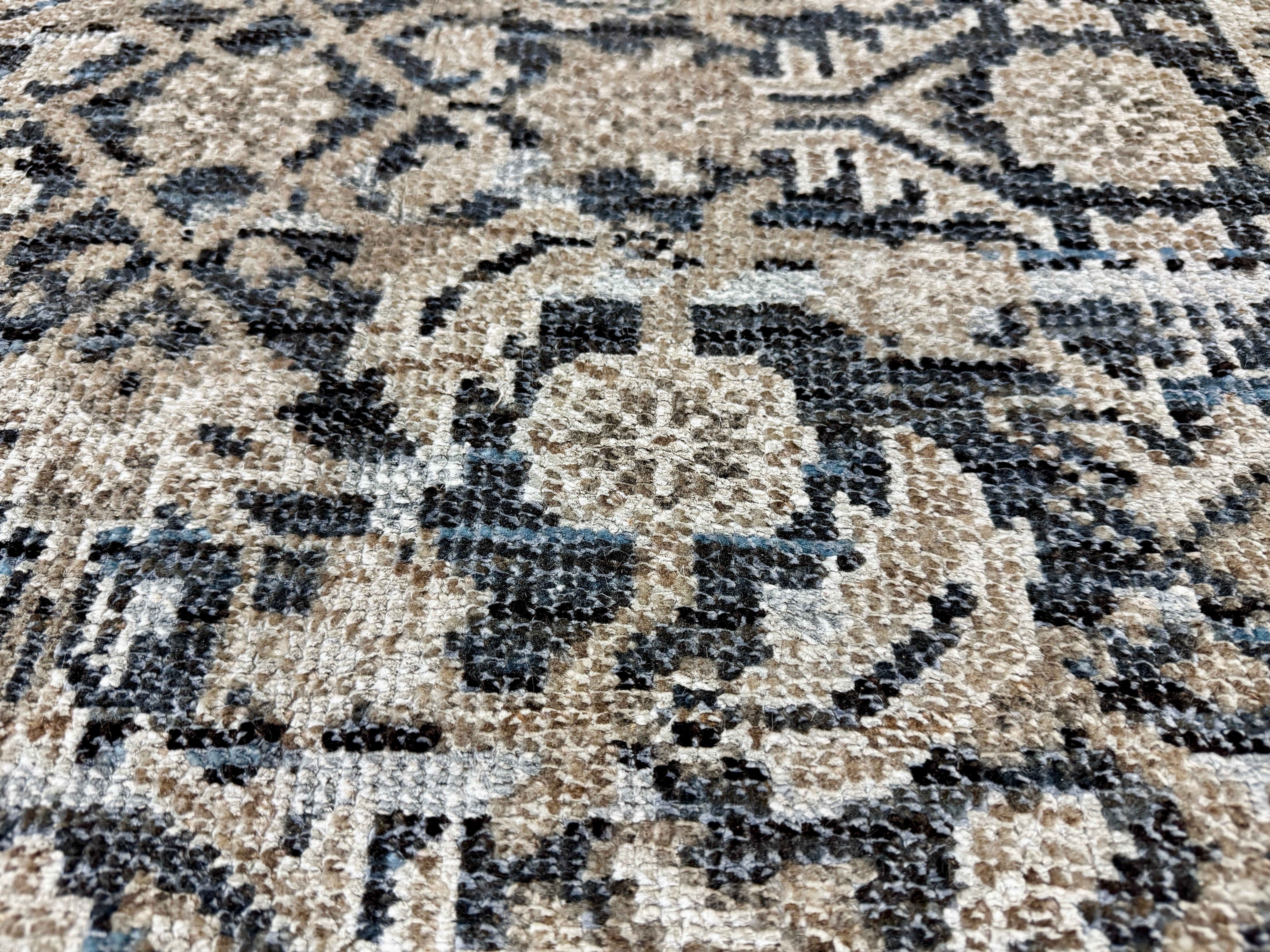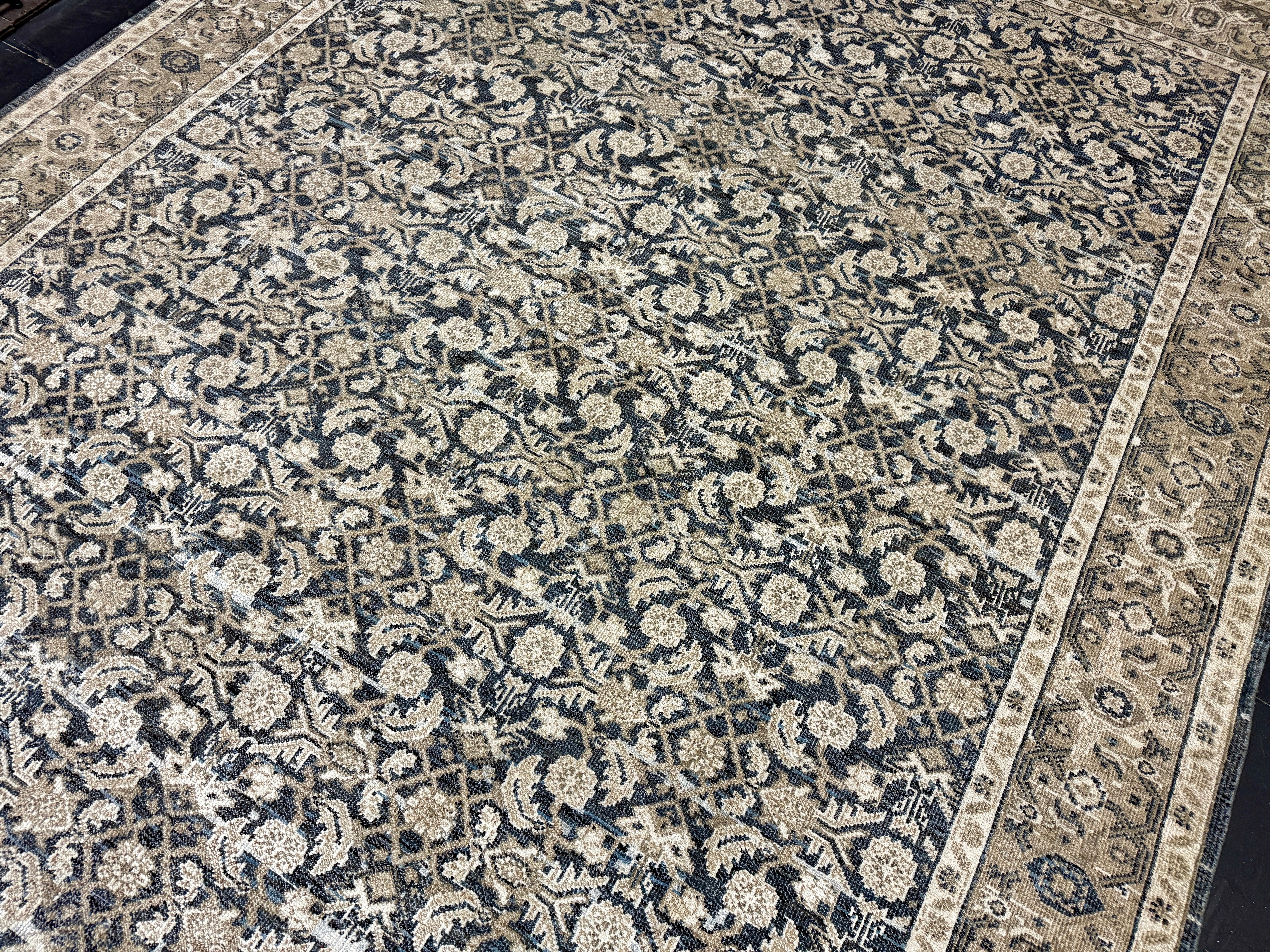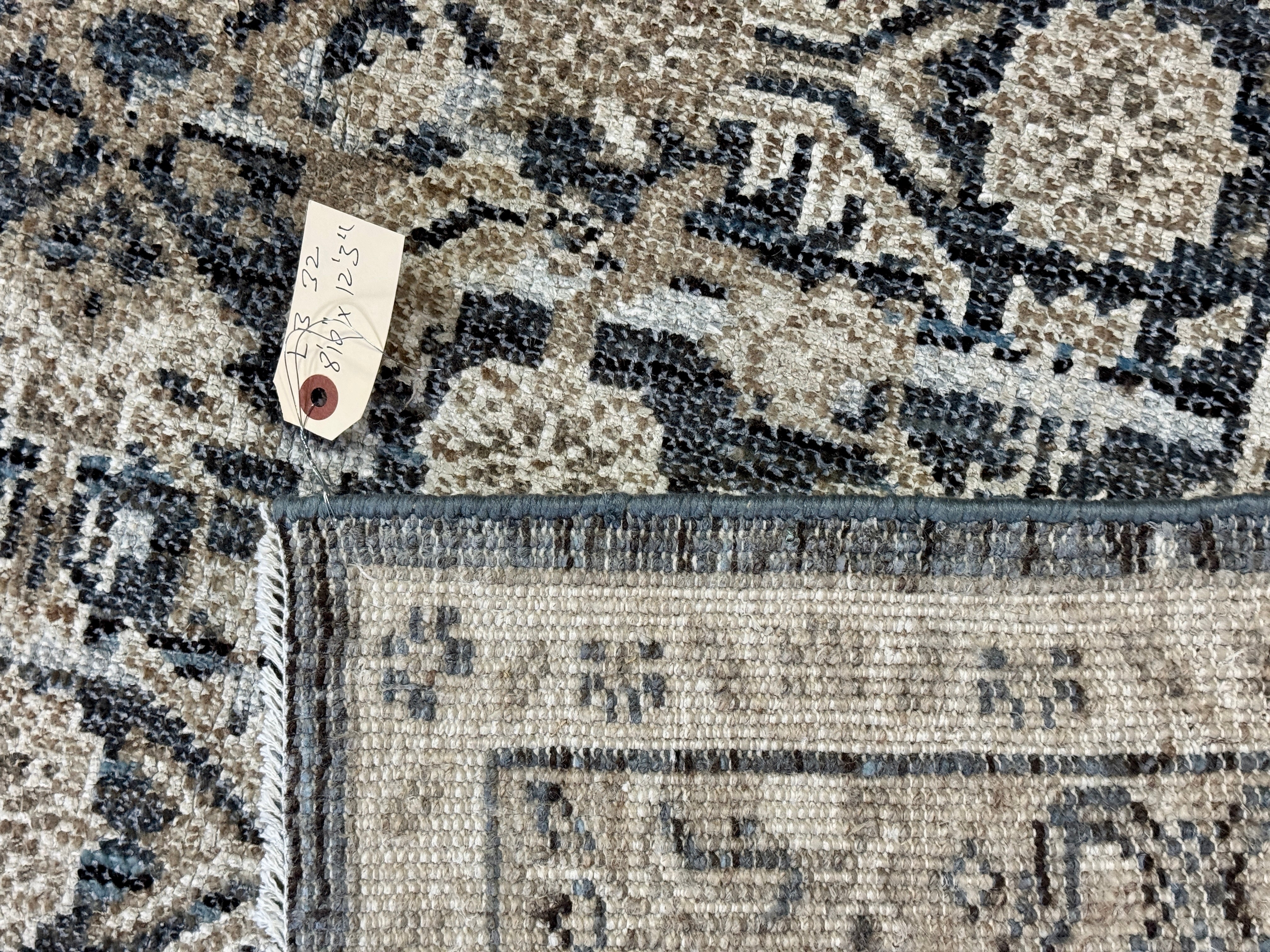 8’10 x 12’3 Persian Style Rug Pure Distressed Silk, Organic Wool + Allo Muted Midnight Blue, Taupe & Bone LB32