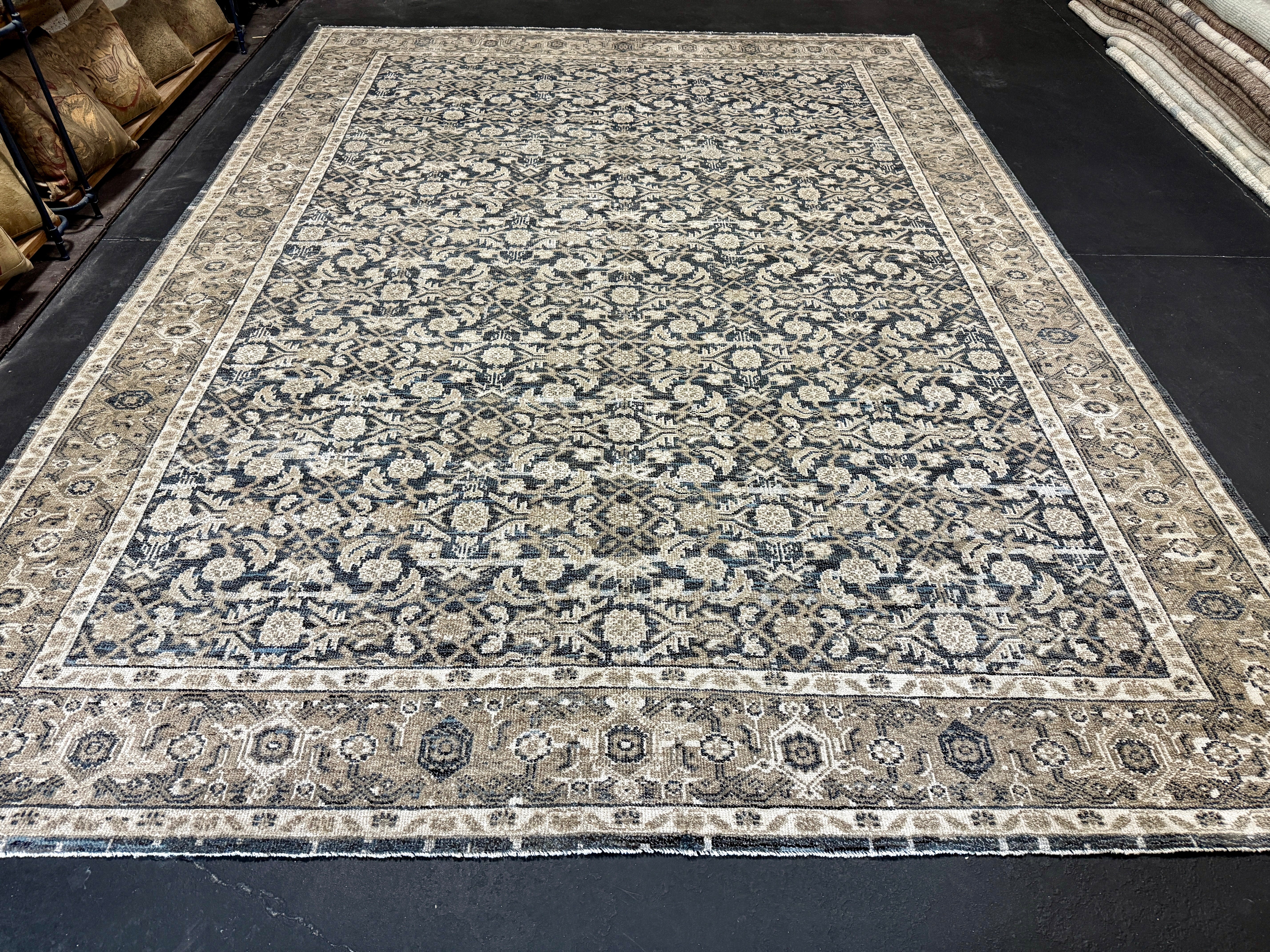 Designed by Lindas husband, Murat Ketenci, this Persian style Mahal stonewashed hand knotted silk rug is available exclusively at Lindas Barn and also available in custom orders. Please inquire for lead times and oversized order pricing. General sizes price per square foot is $98.00