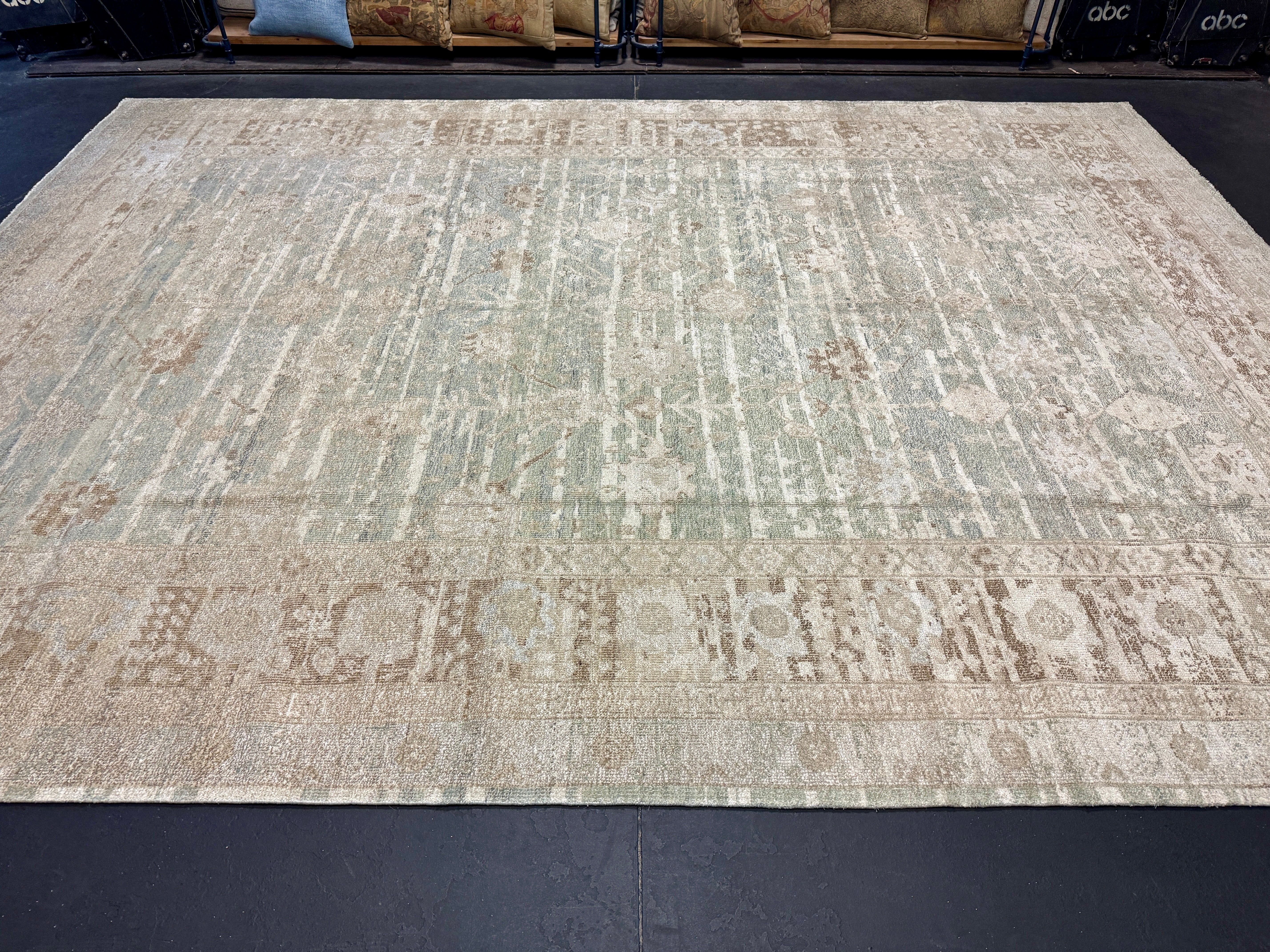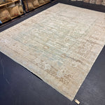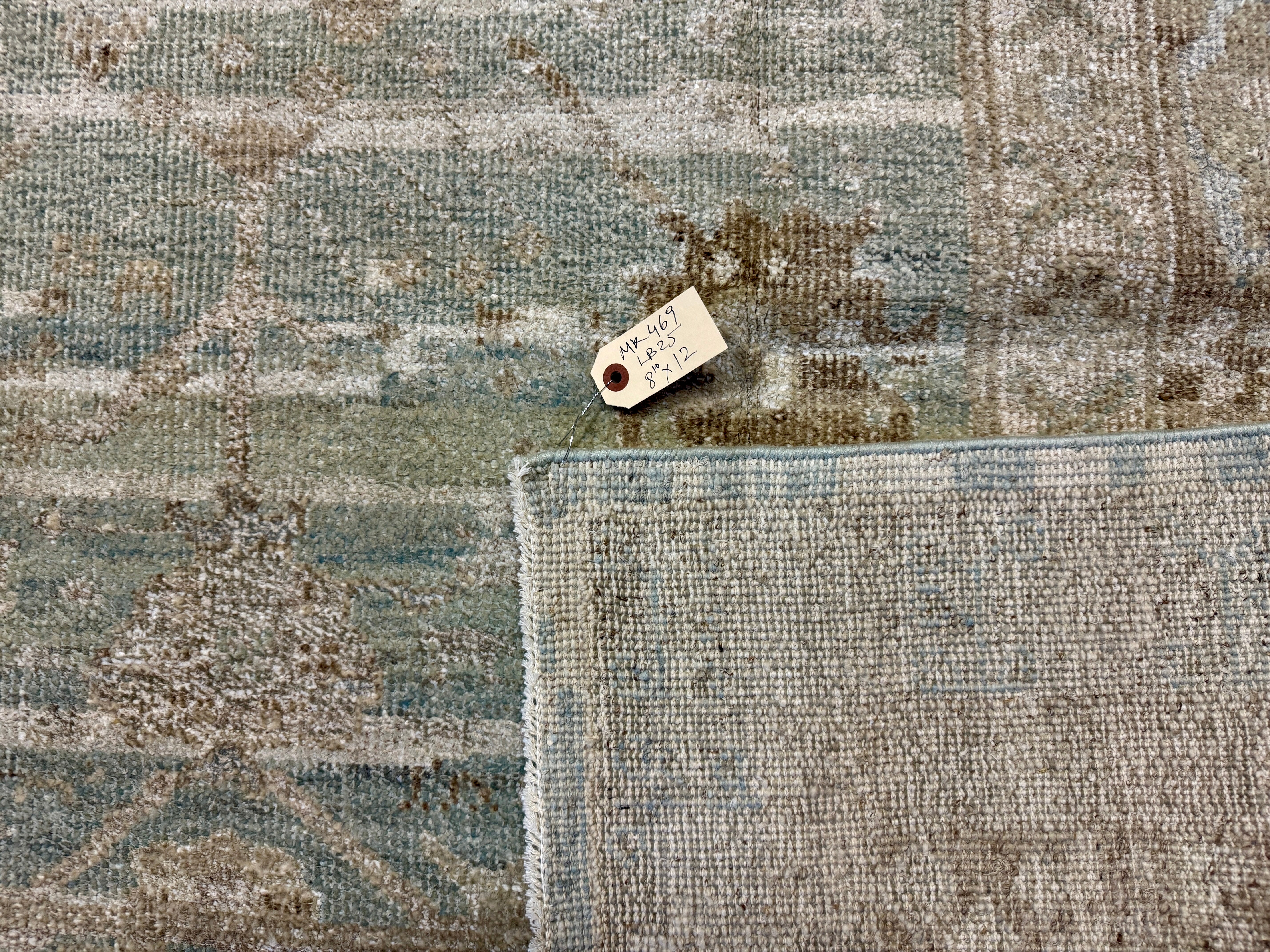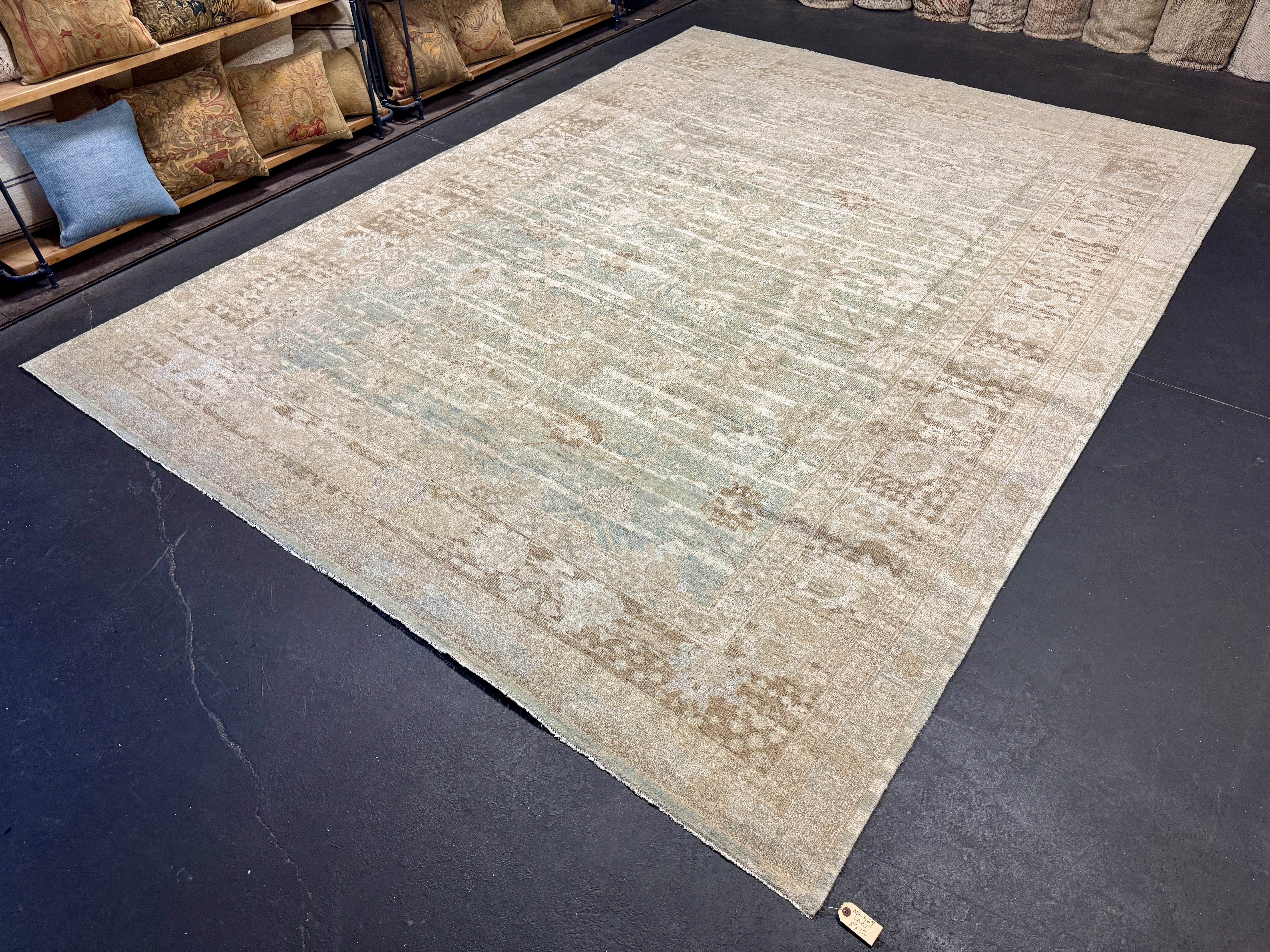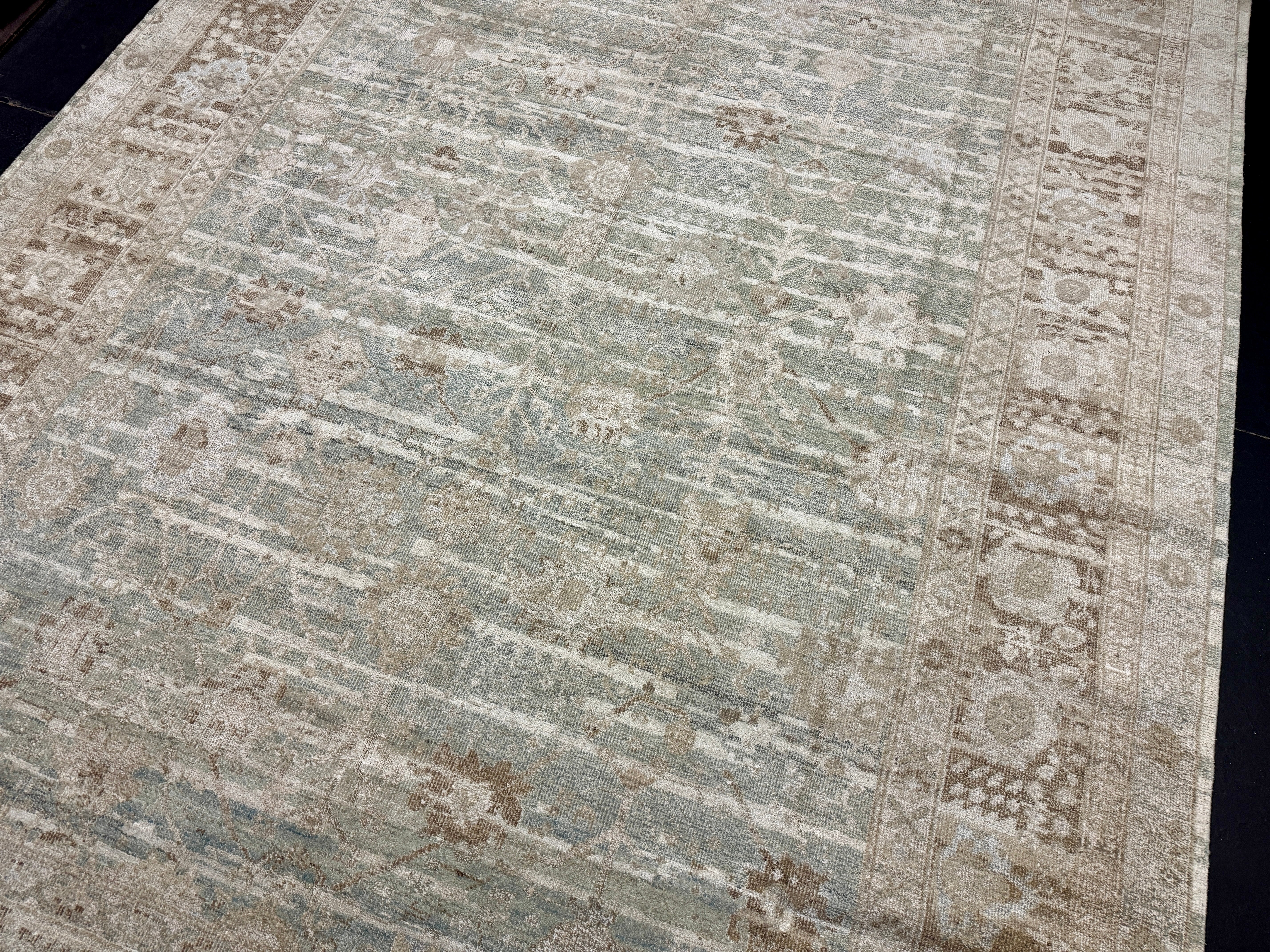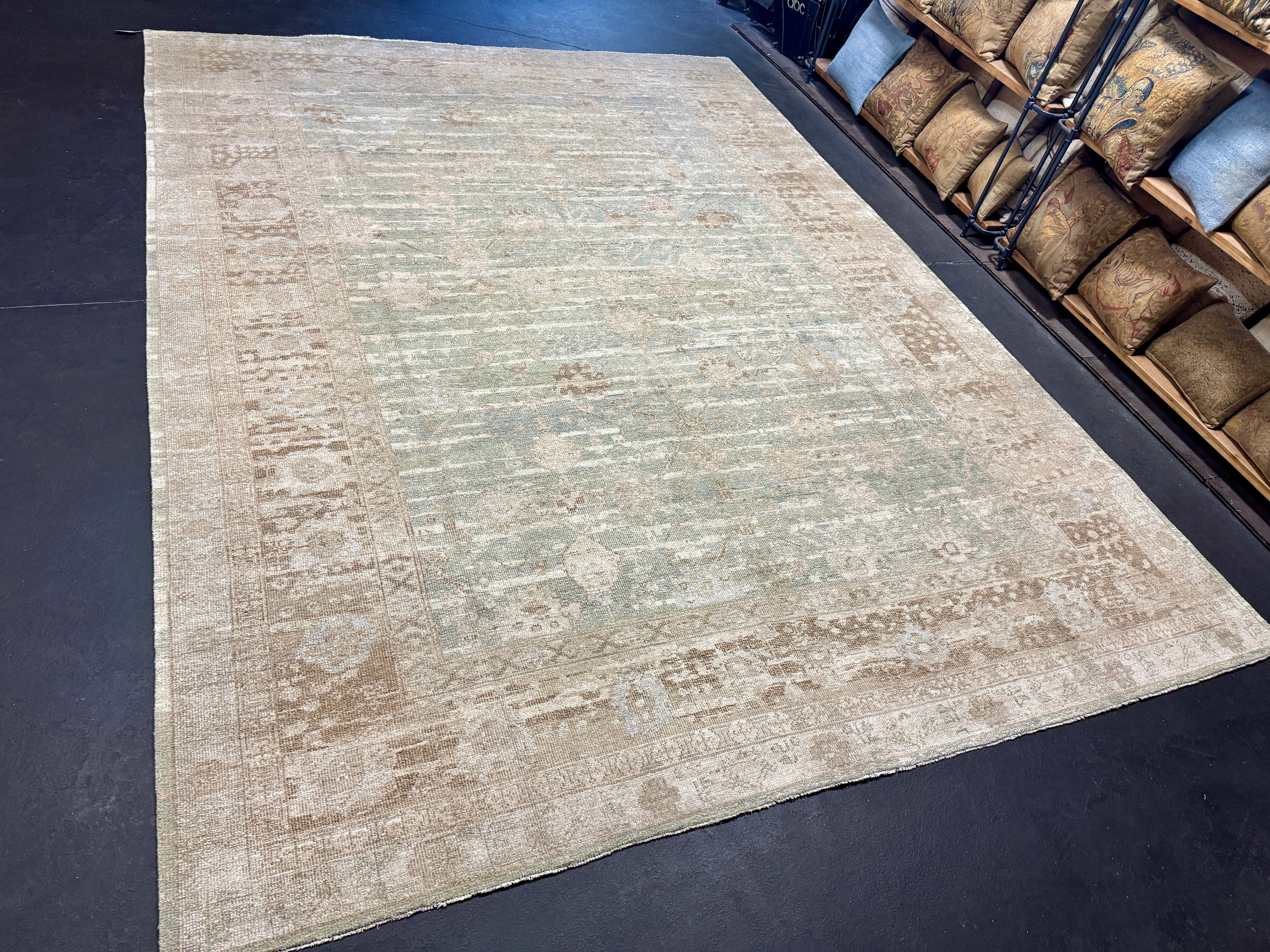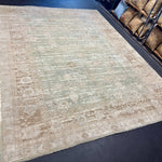 8’10 x 12’ Silk & Wool Gordes Rug Sea Foam Blue and Green, Taupe, Cream + Stone MK469