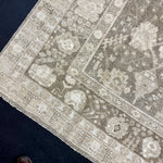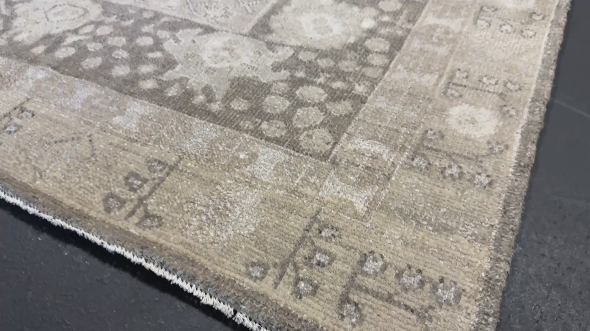 The stonewashing has been a decades long process developed by us at our restoration plant in Oushak Turkey. This stonewashed process gives a subtle sheen to the silk yet gives the appearance and texture and feel of an antique rug. It has been finished by hand washing and blocking