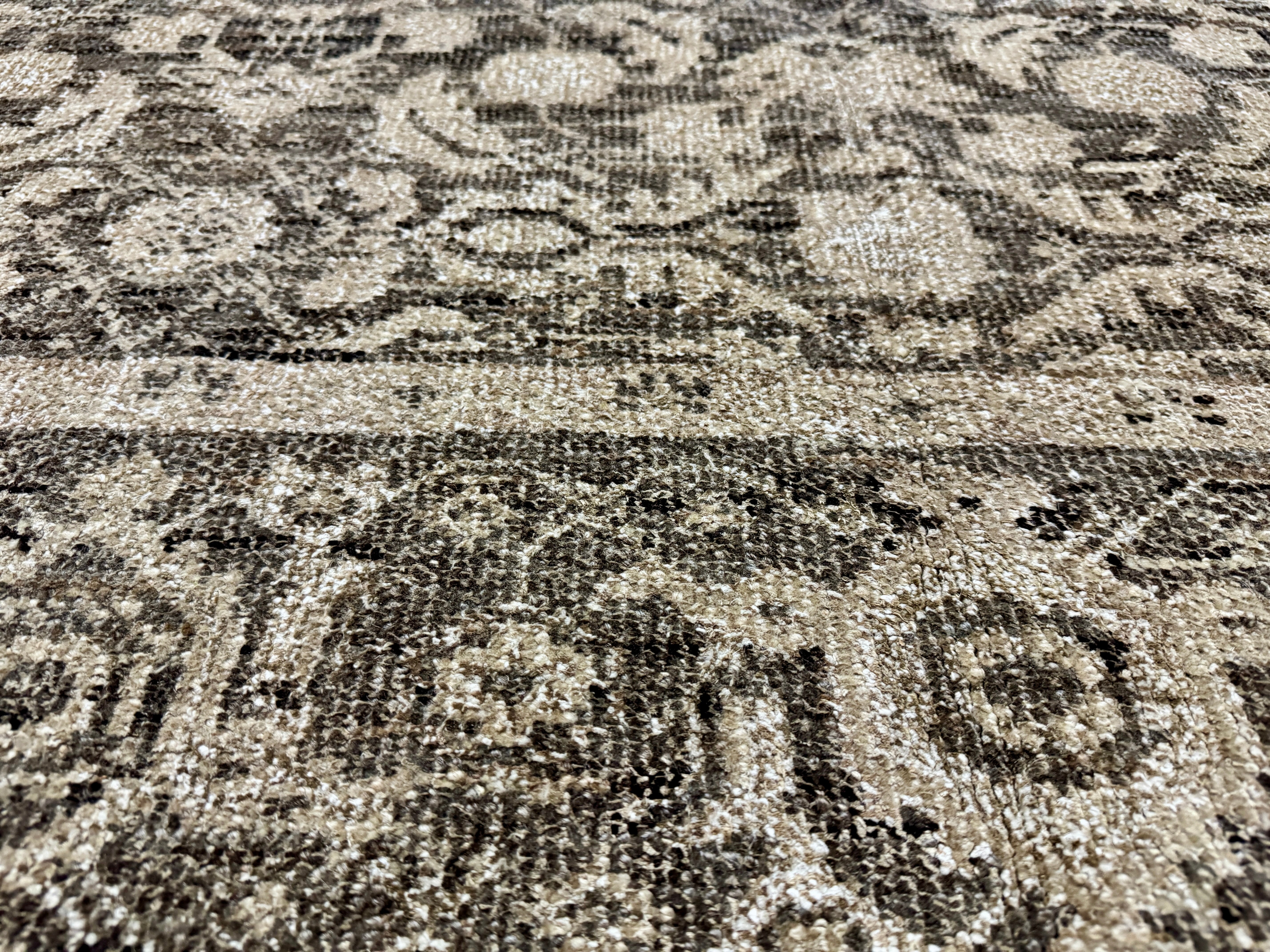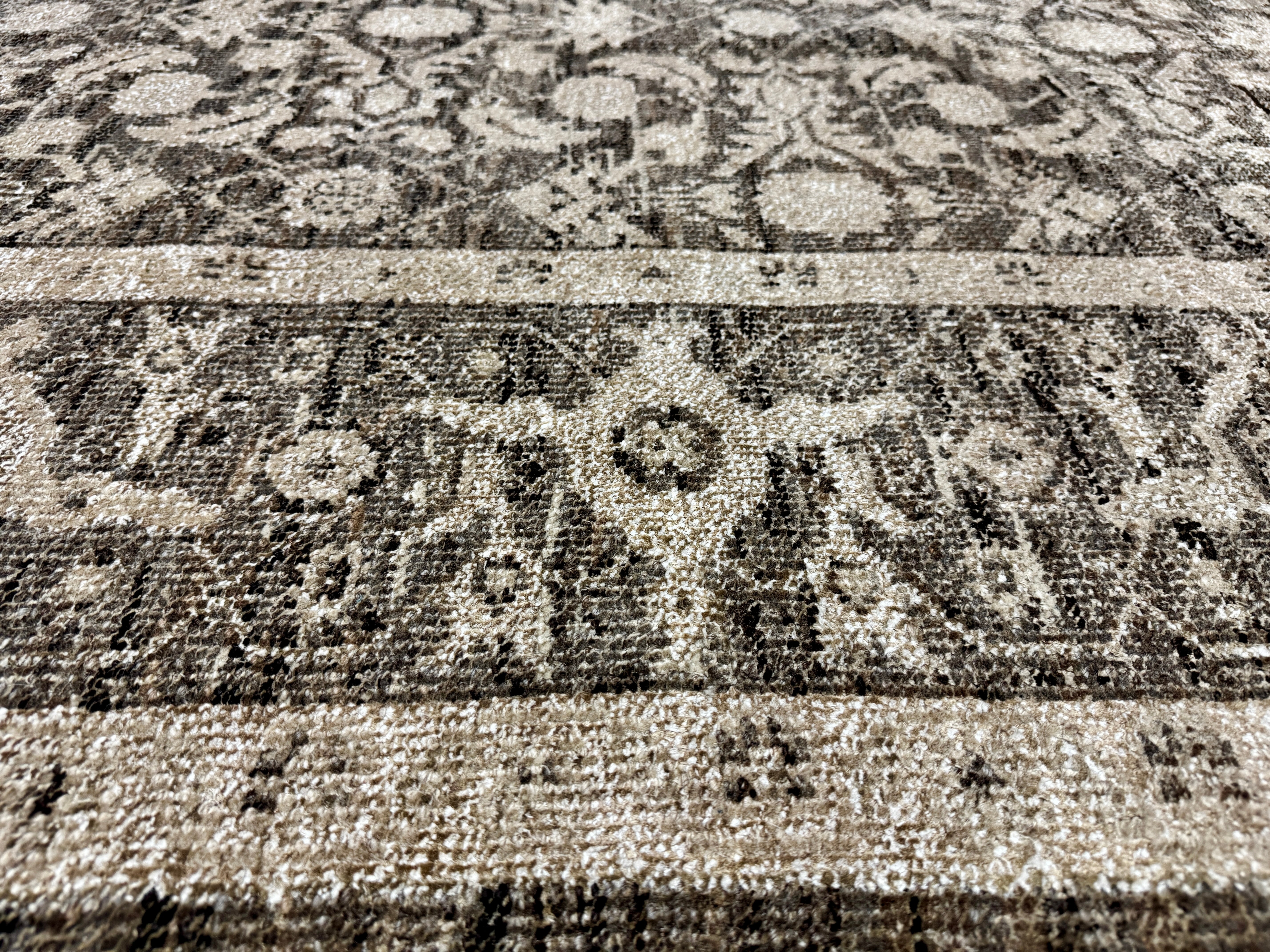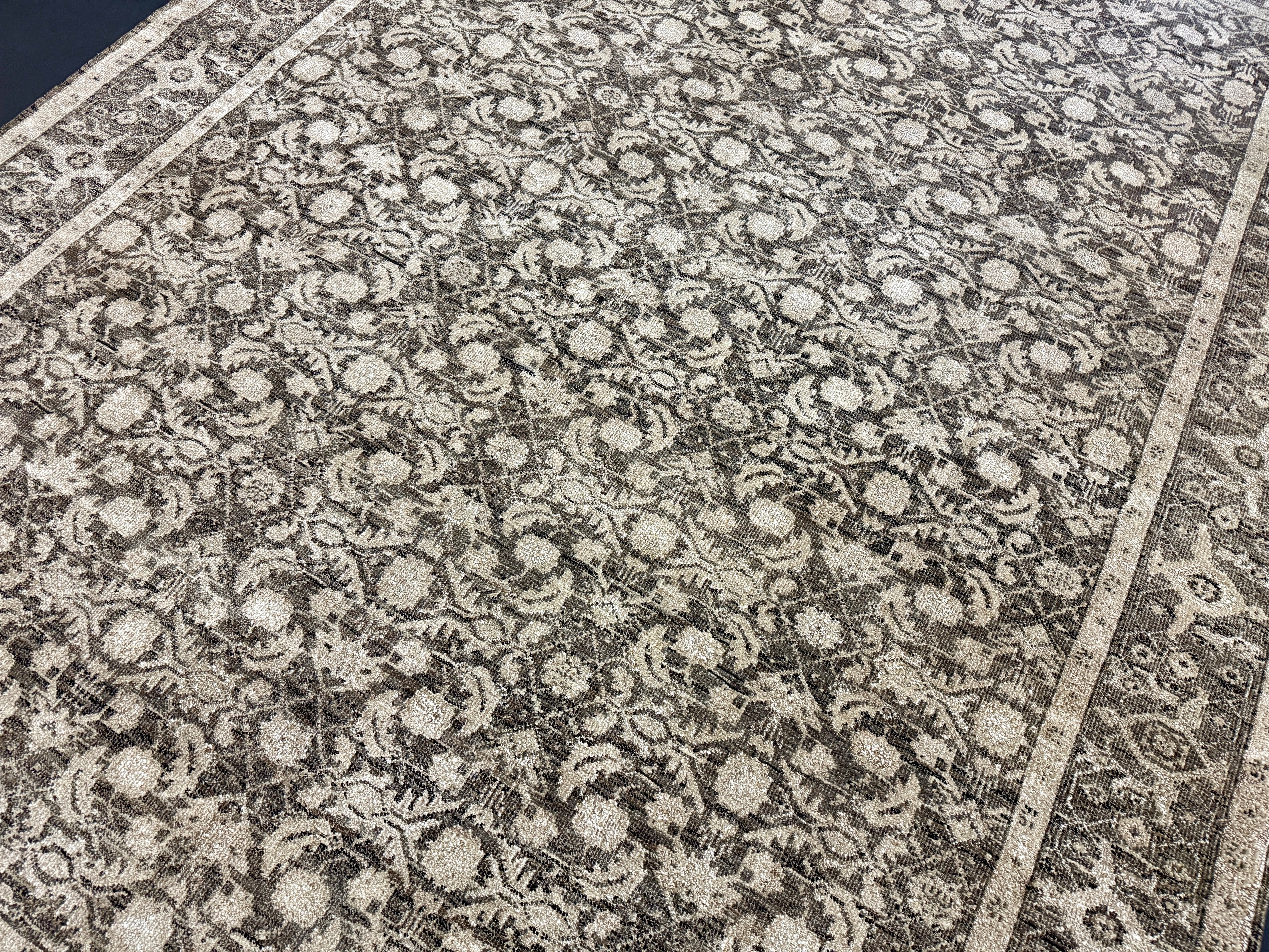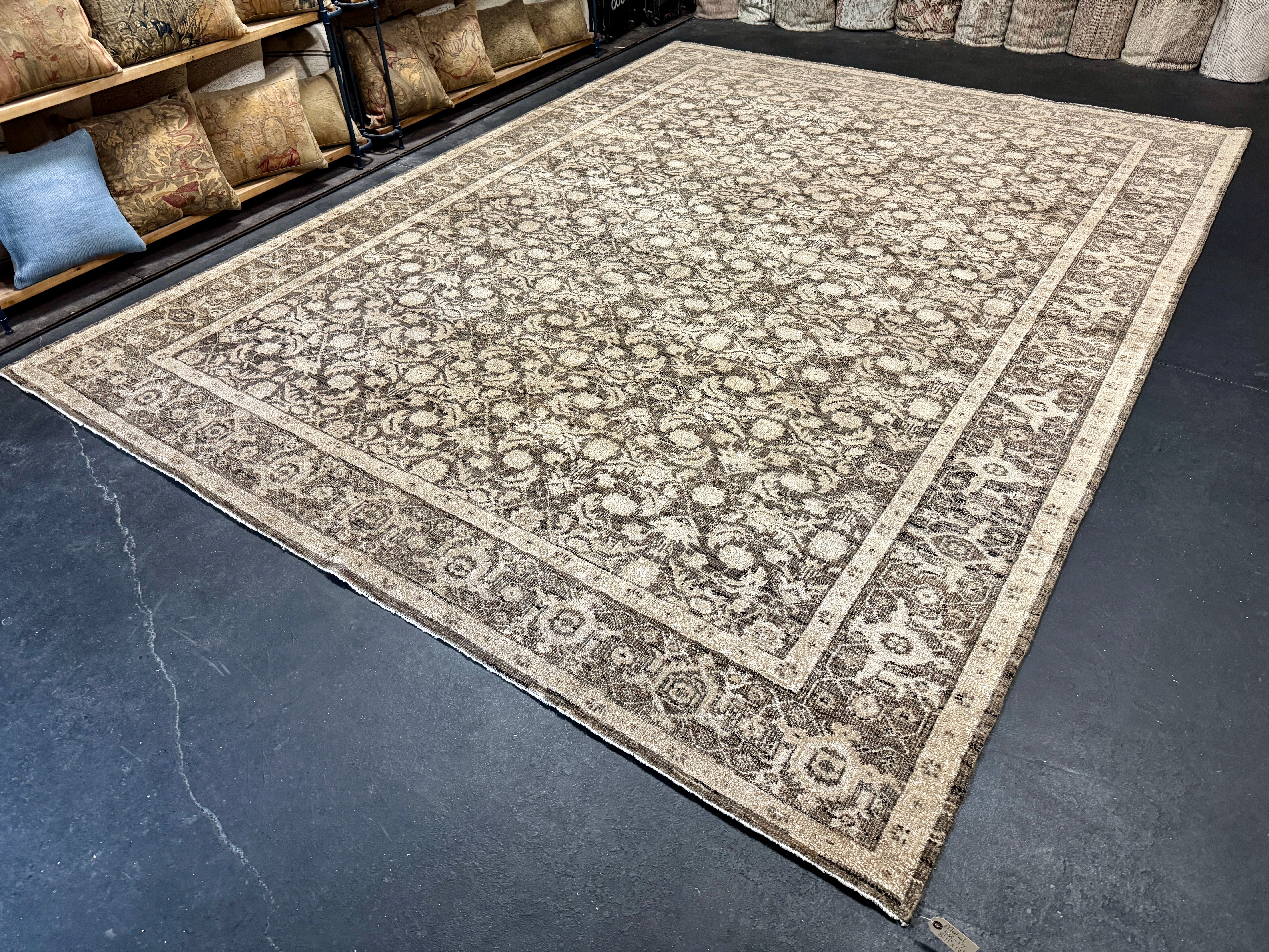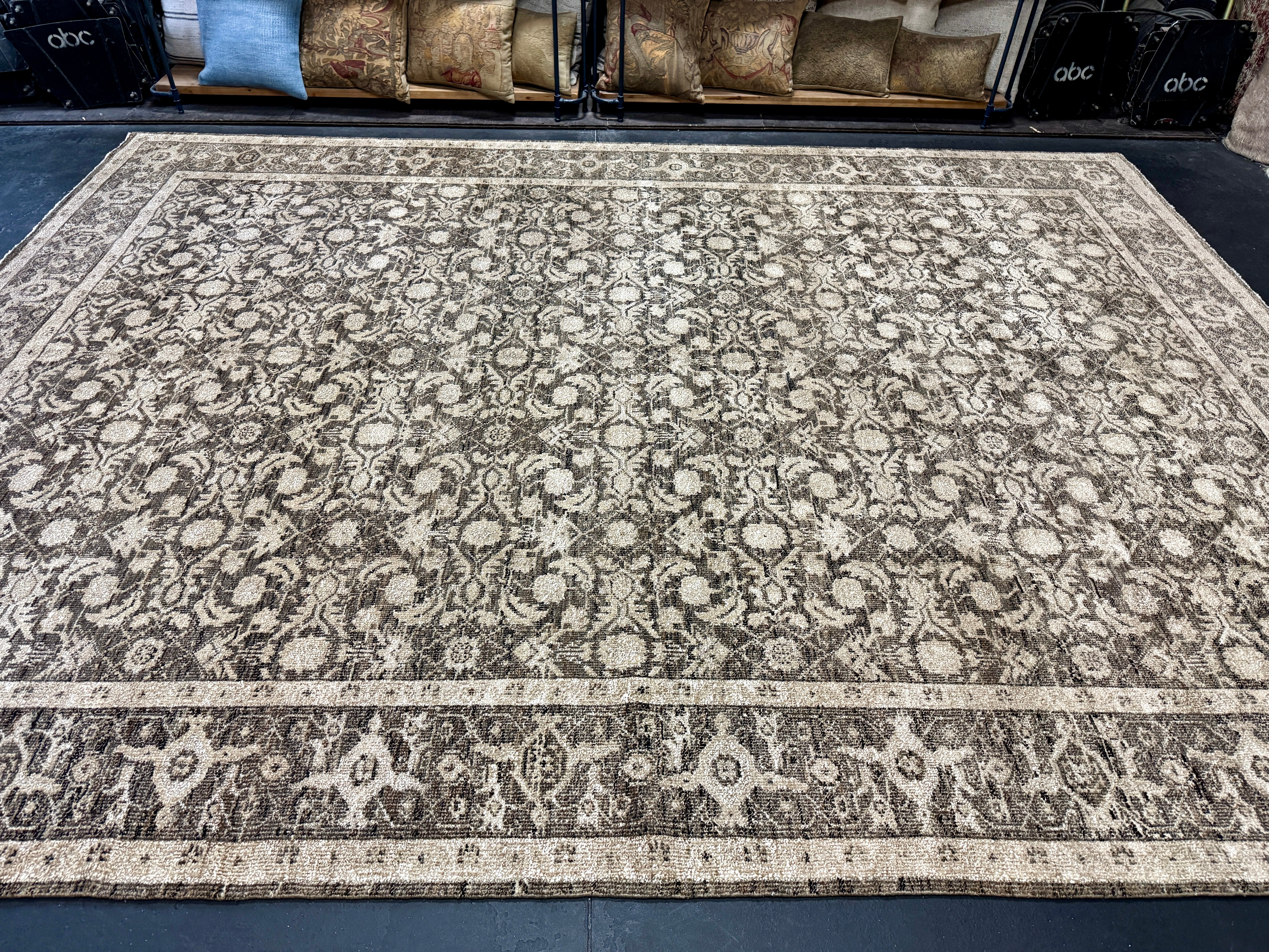 8’11 x 12’Persian Style Rug Pure Distressed Silk, Organic Wool + Allo Muted Browns, Taupe & Gray LB17