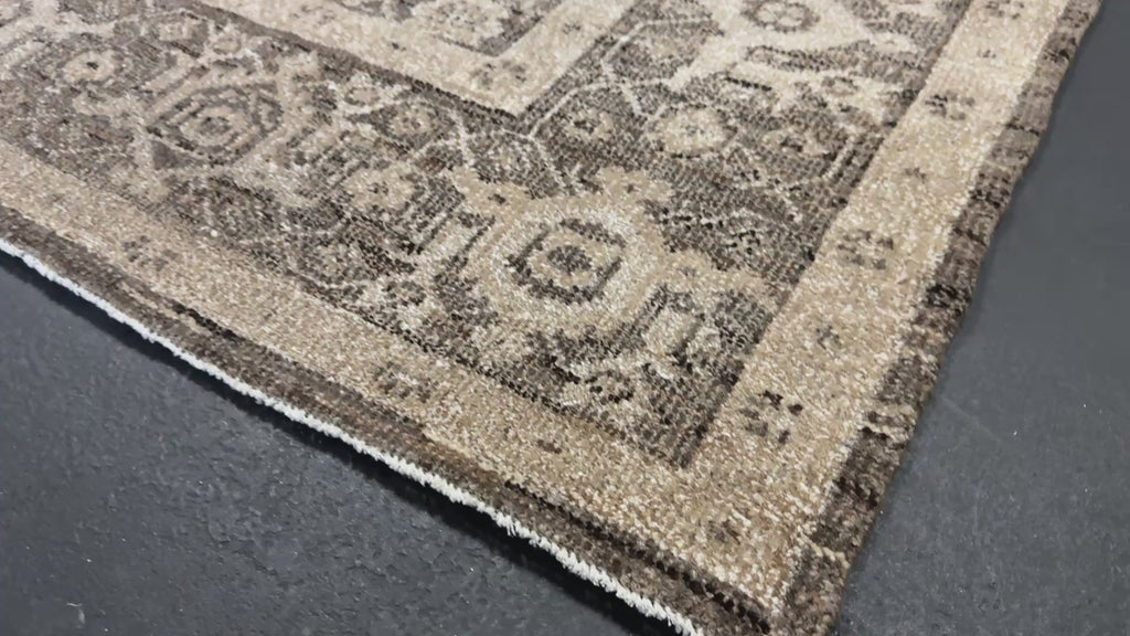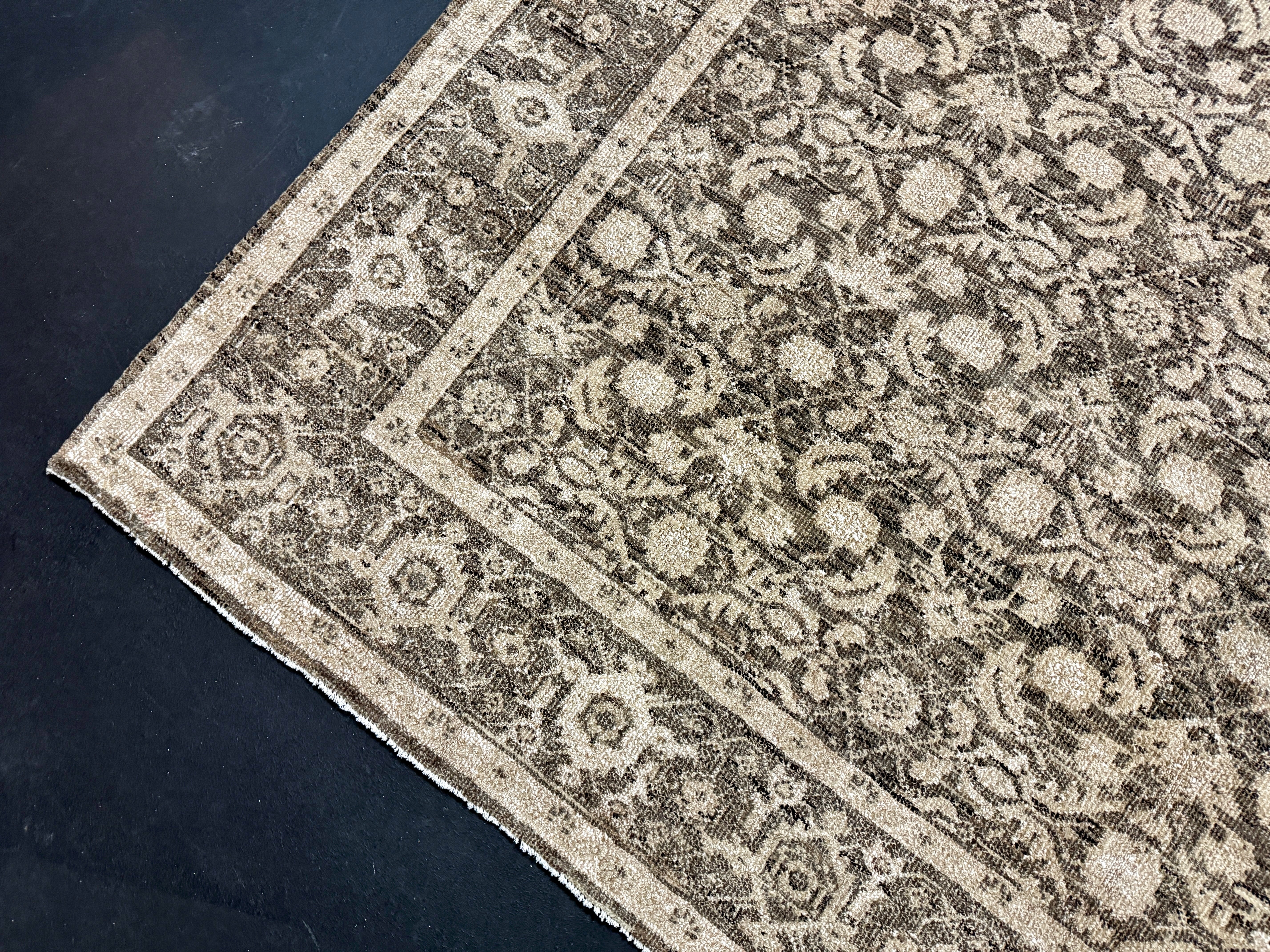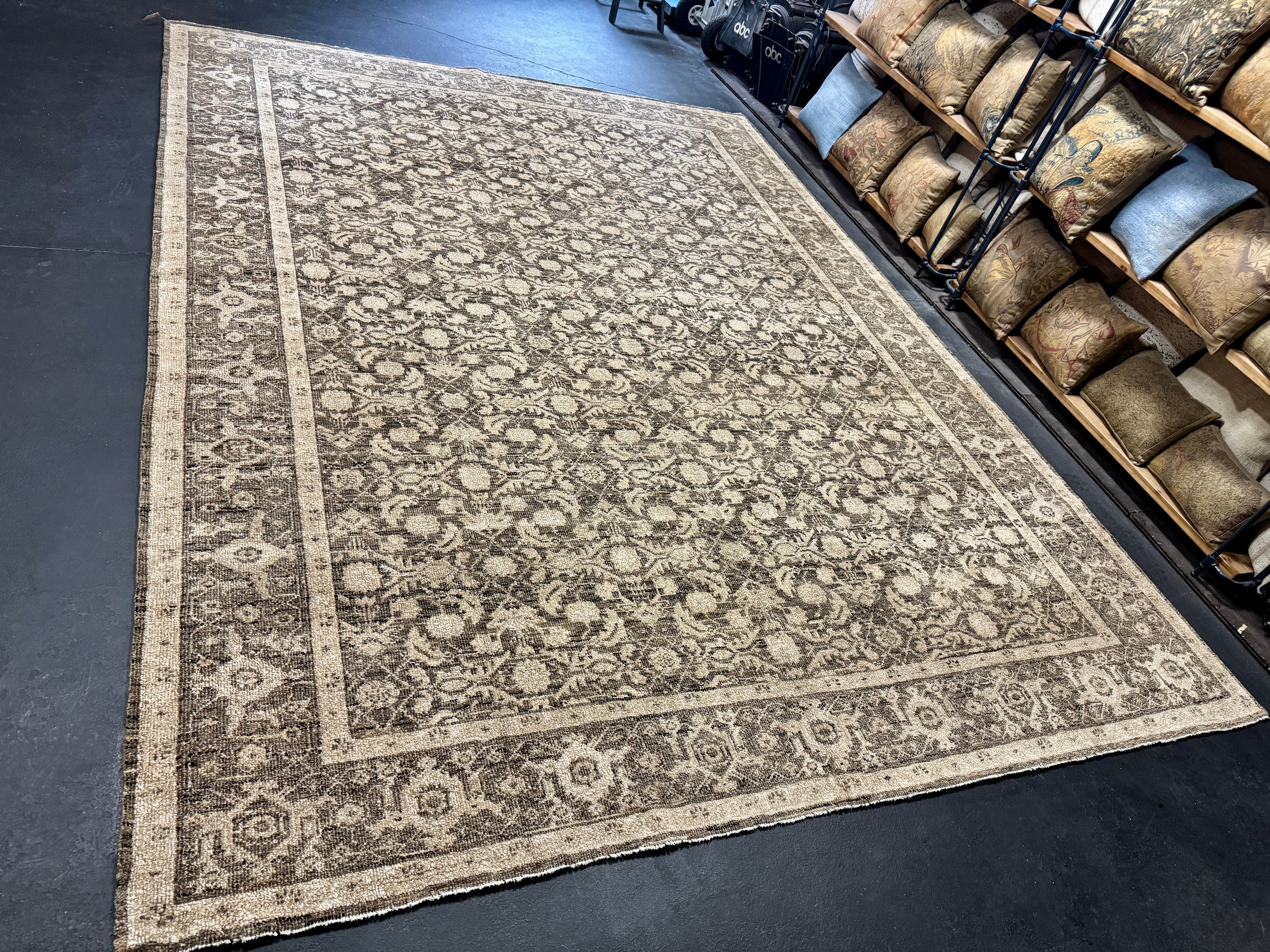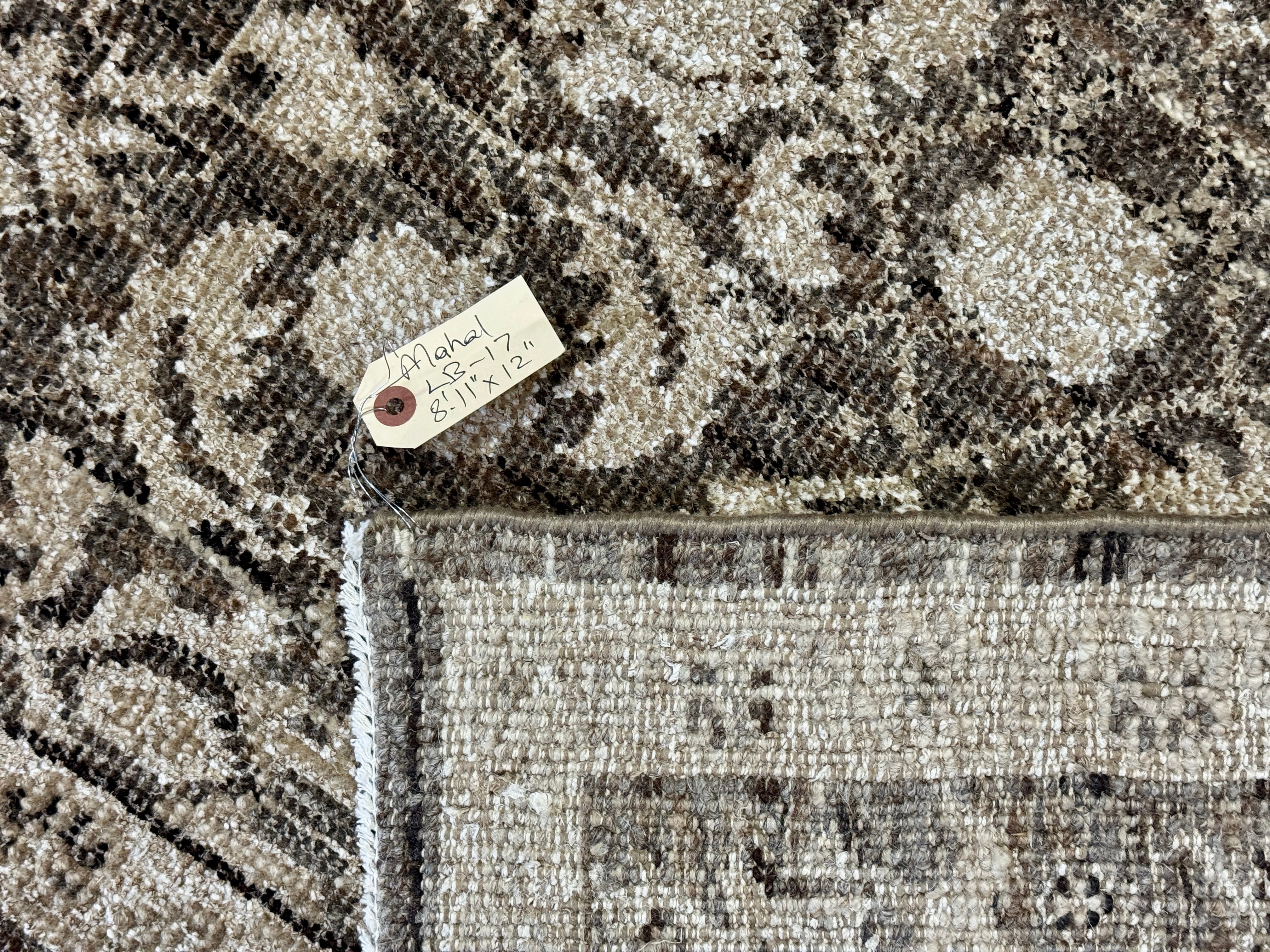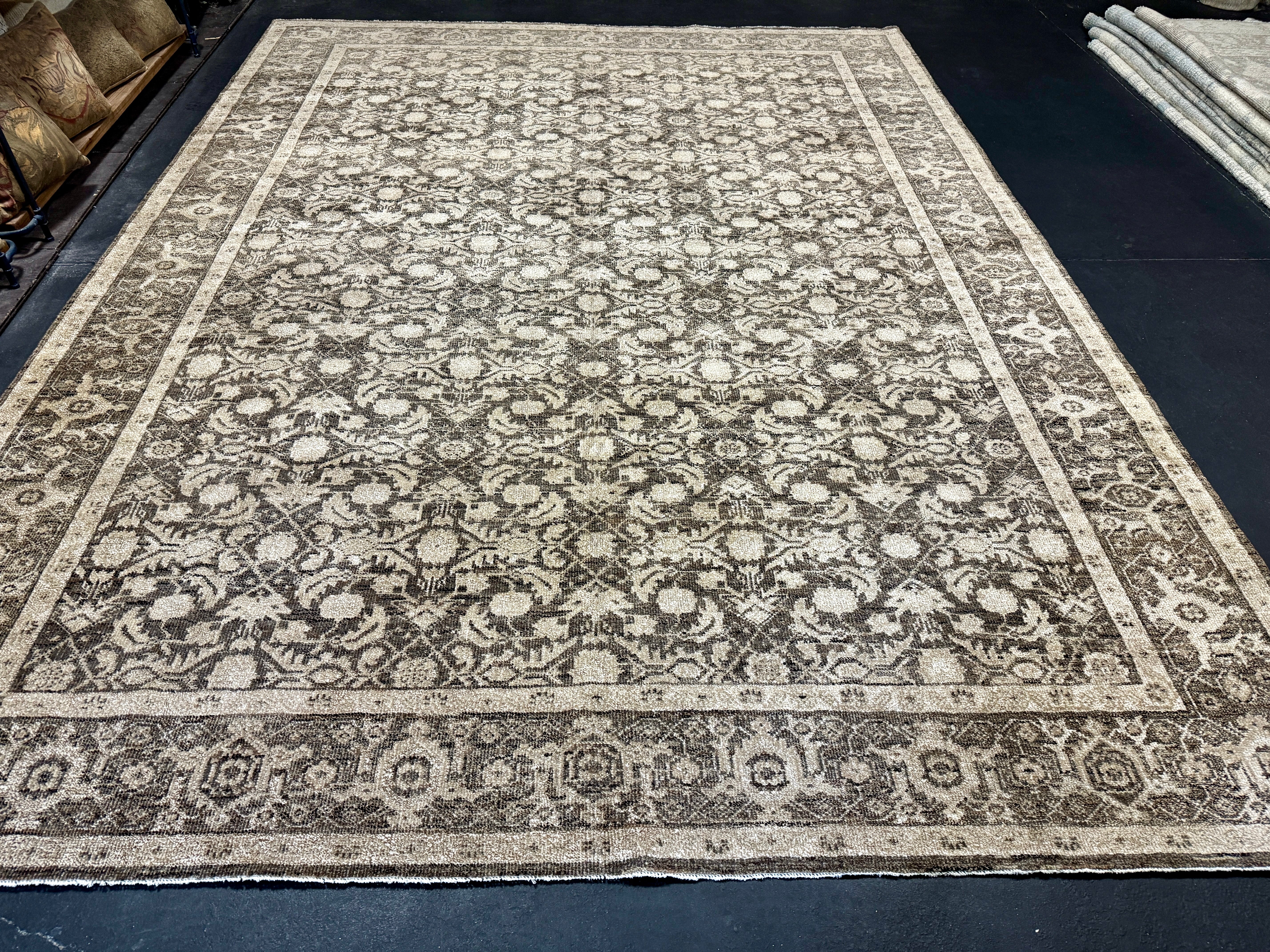 8’11 x 12’Persian Style Rug Pure Distressed Silk, Organic Wool + Allo Muted Browns, Taupe & Gray LB17