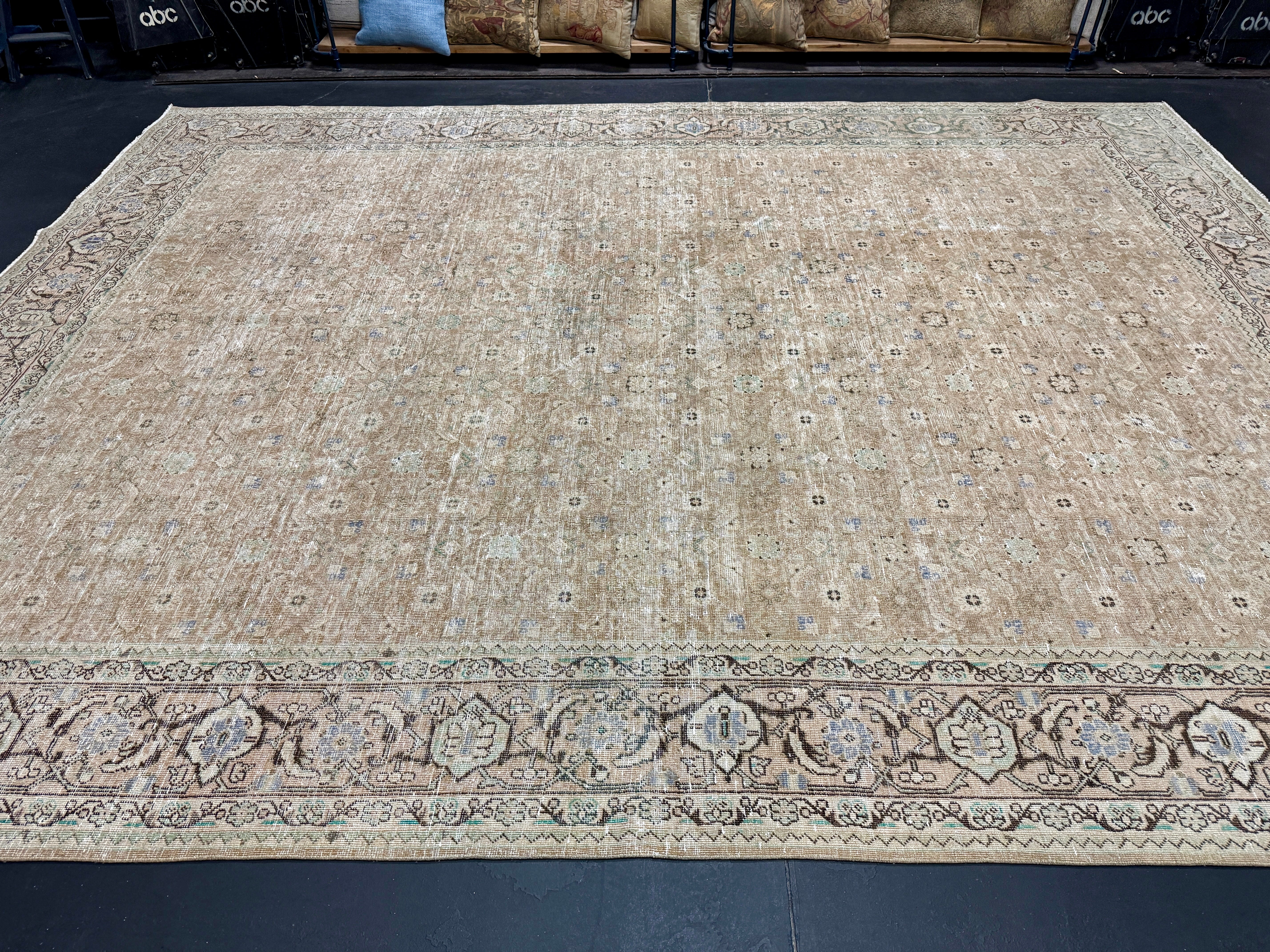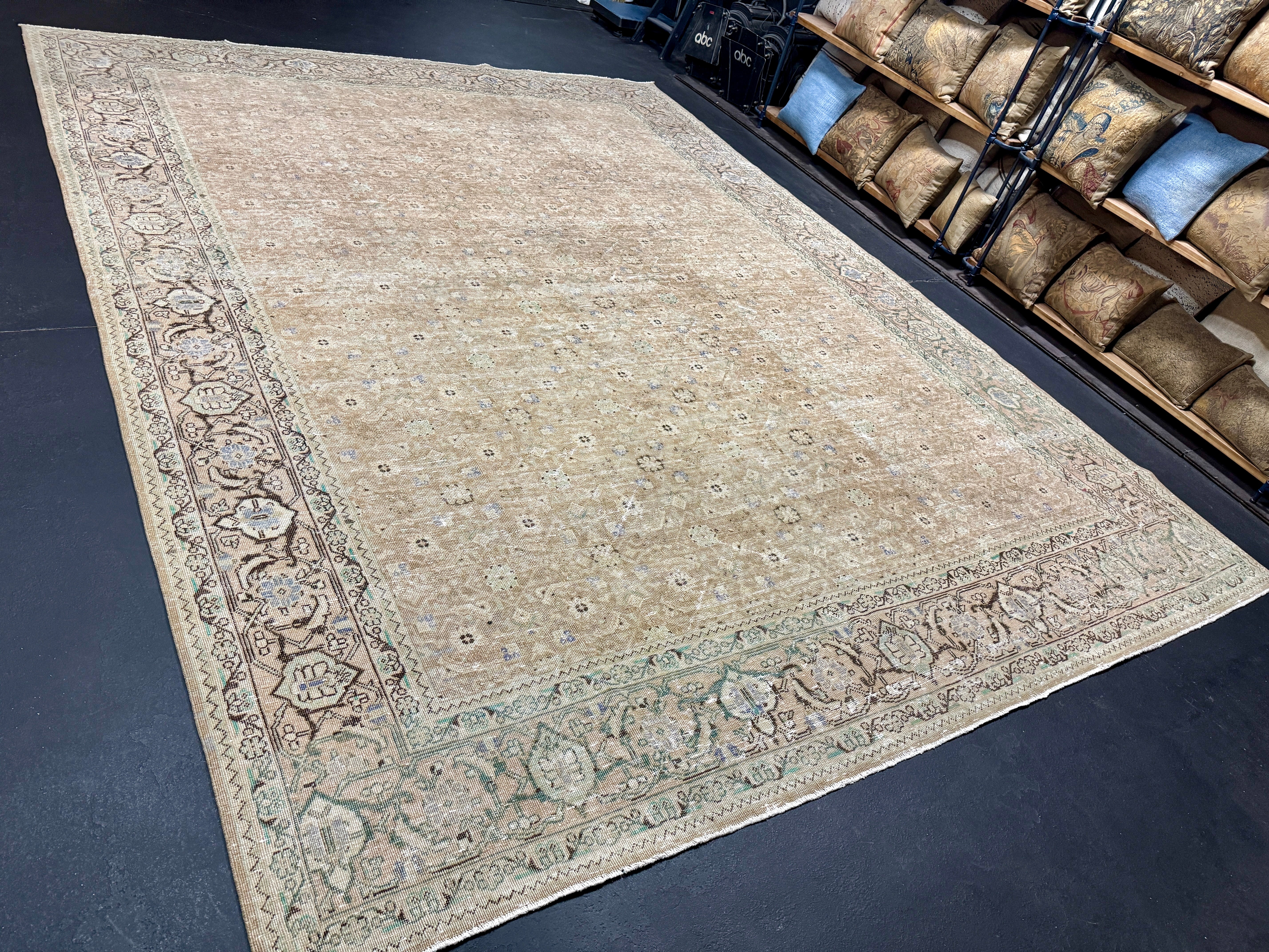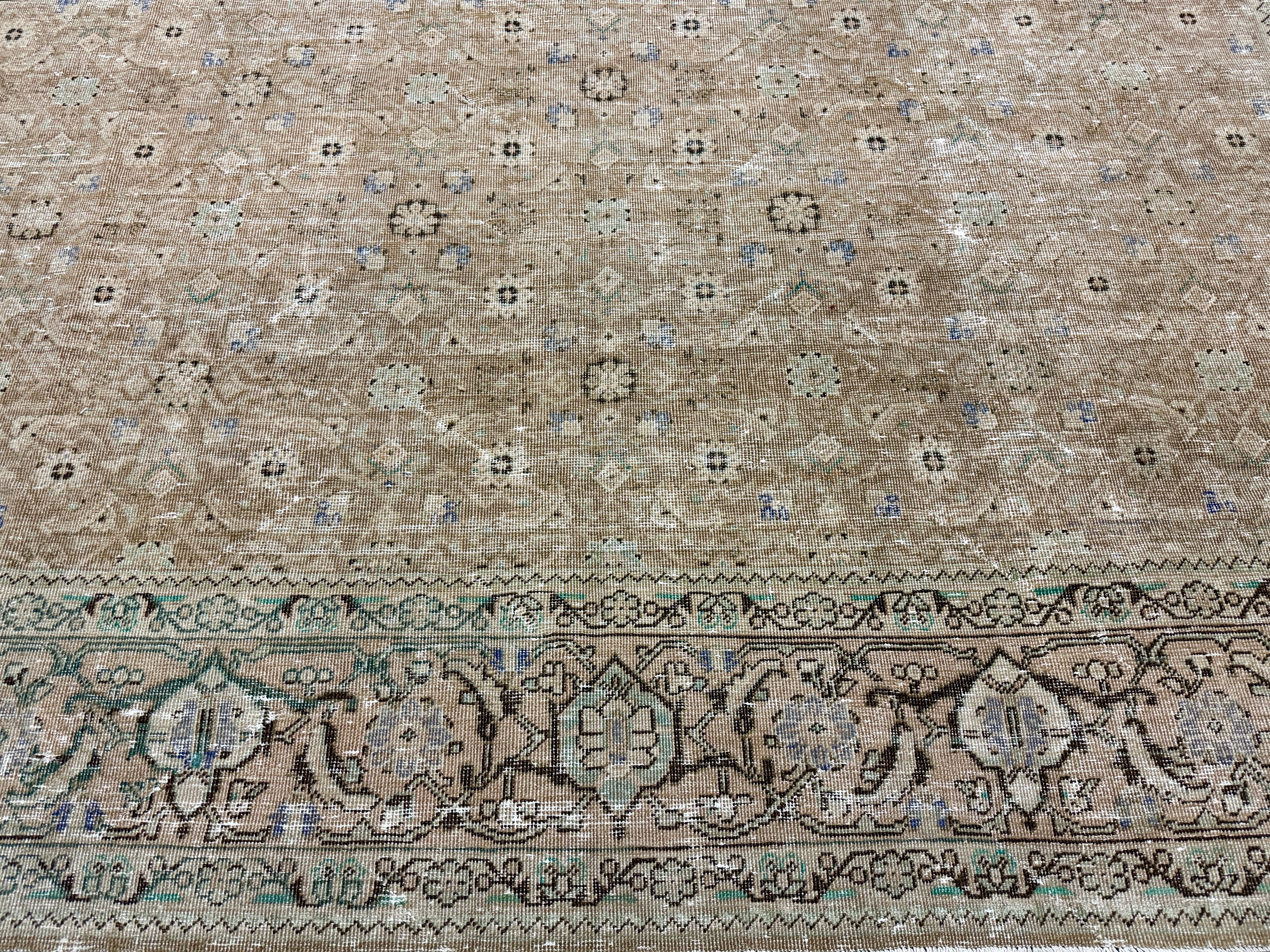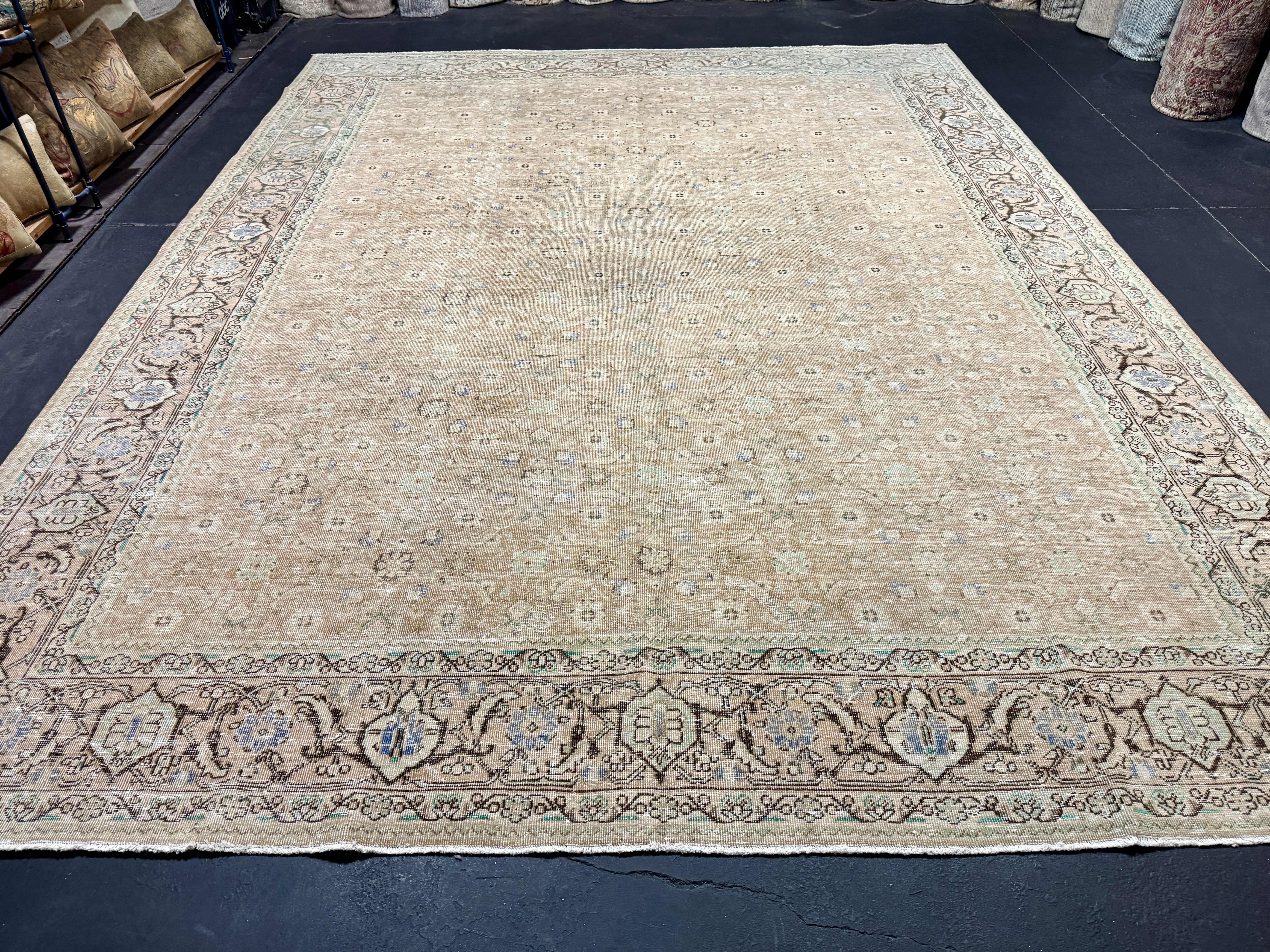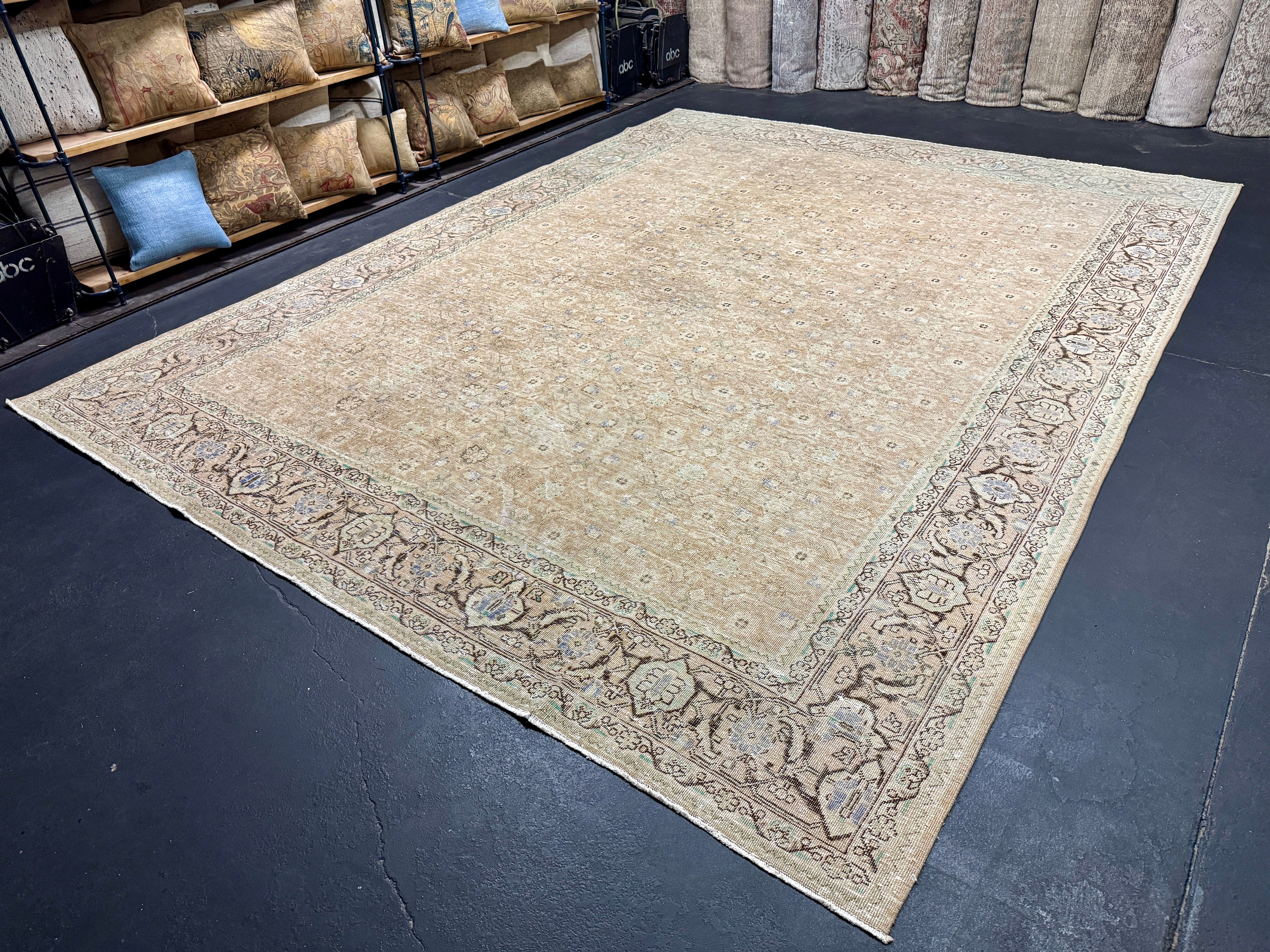 9’10 x 12’11 Classic Vintage Rug Cappuccino Beige, Sage, Teal & Periwinkle 5754