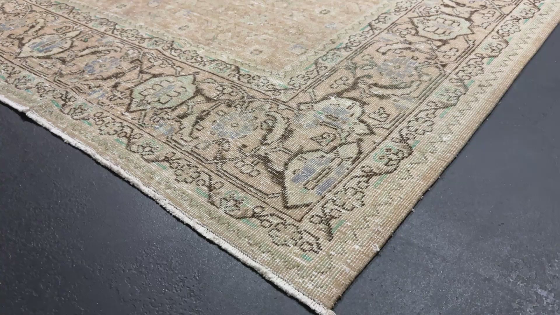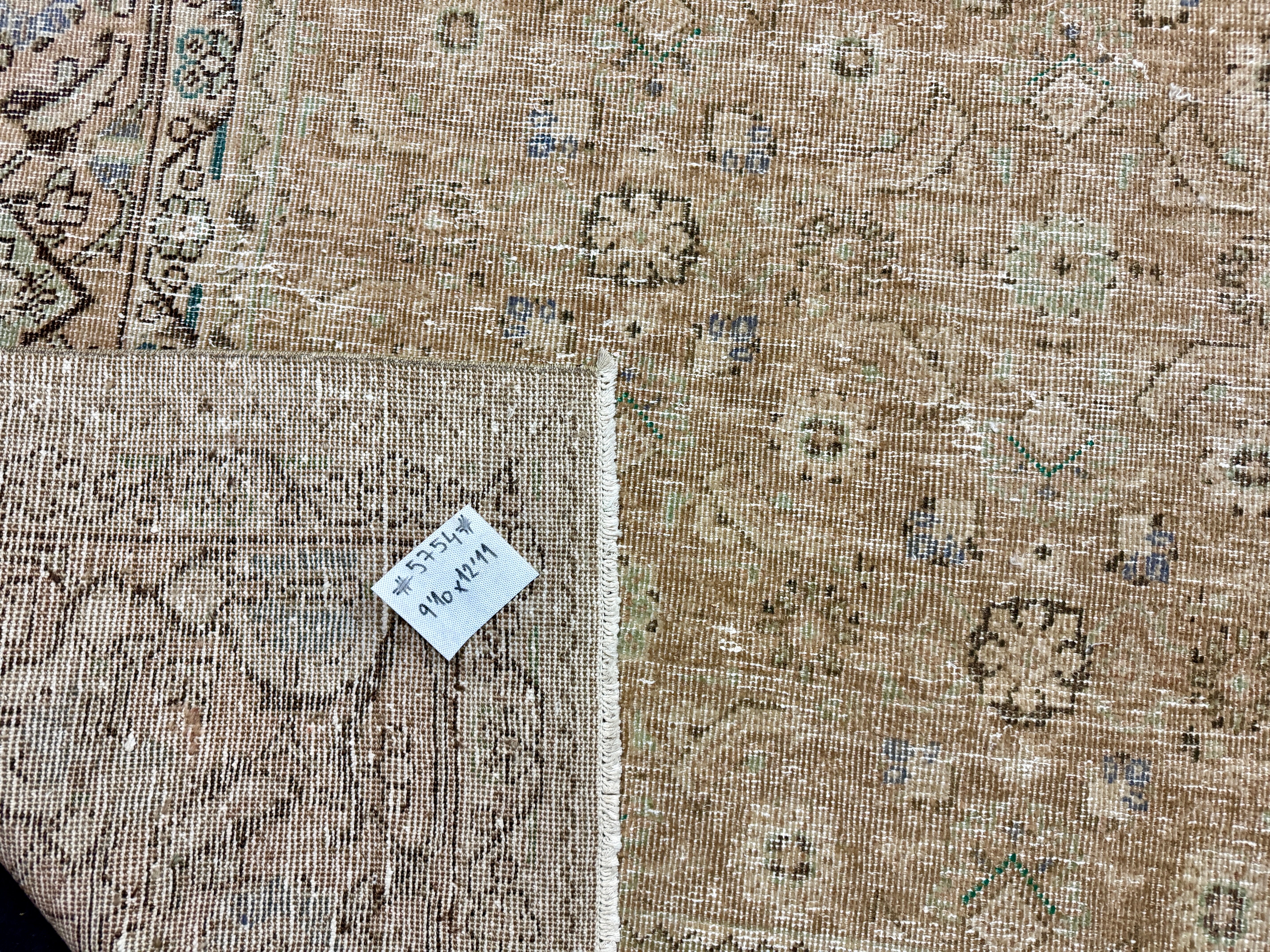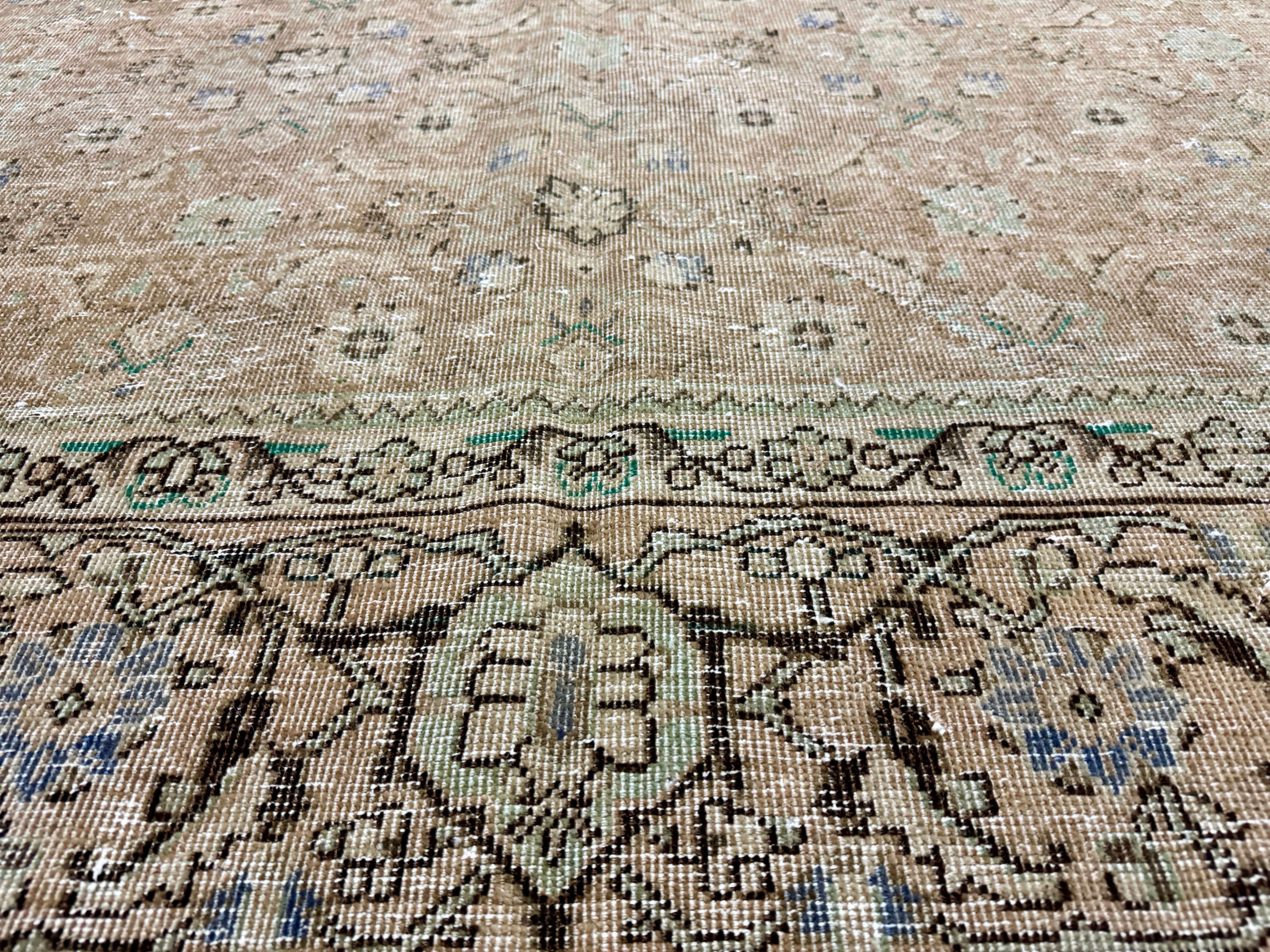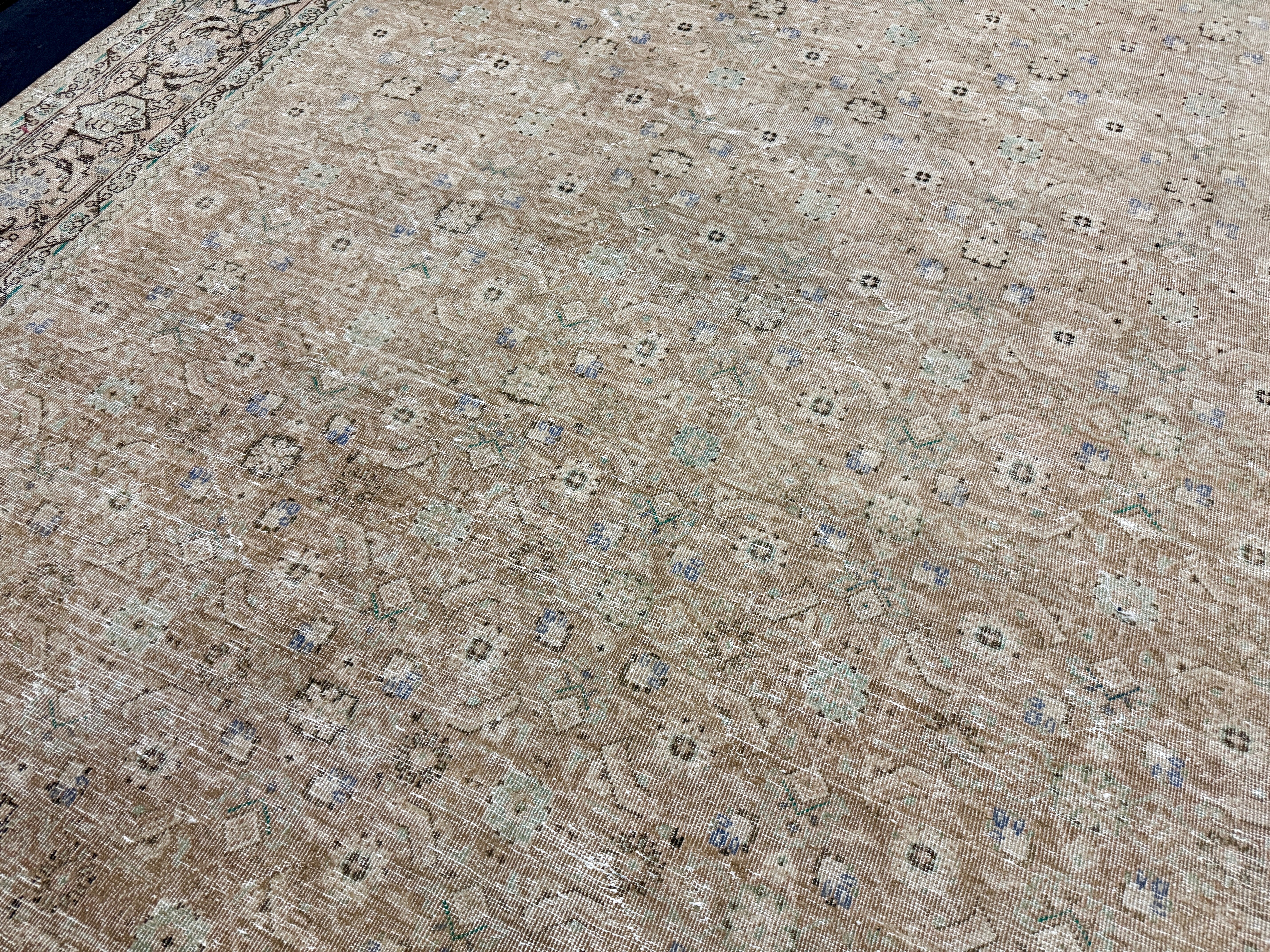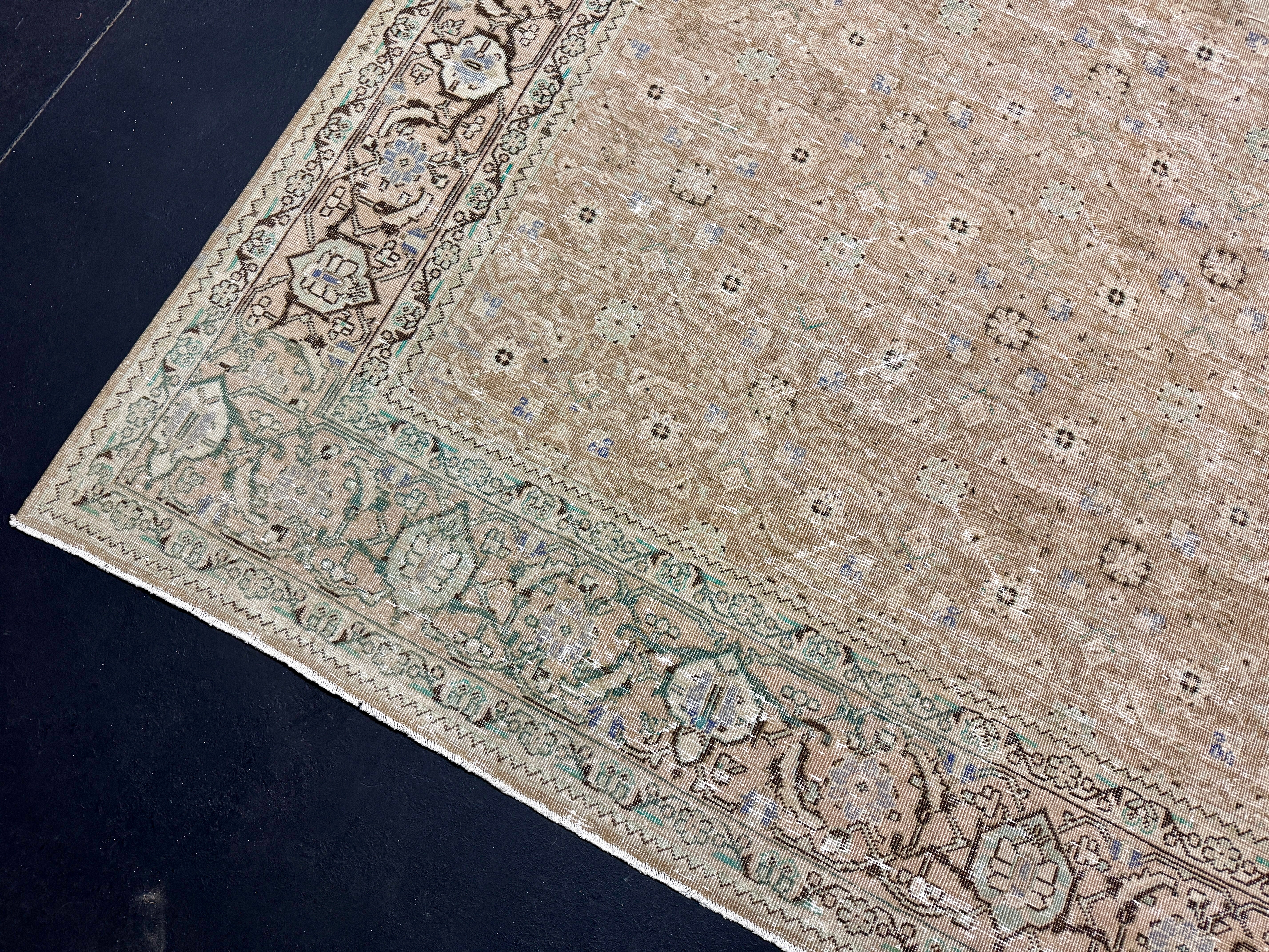 9’10 x 12’11 Classic Vintage Rug Cappuccino Beige, Sage, Teal & Periwinkle 5754