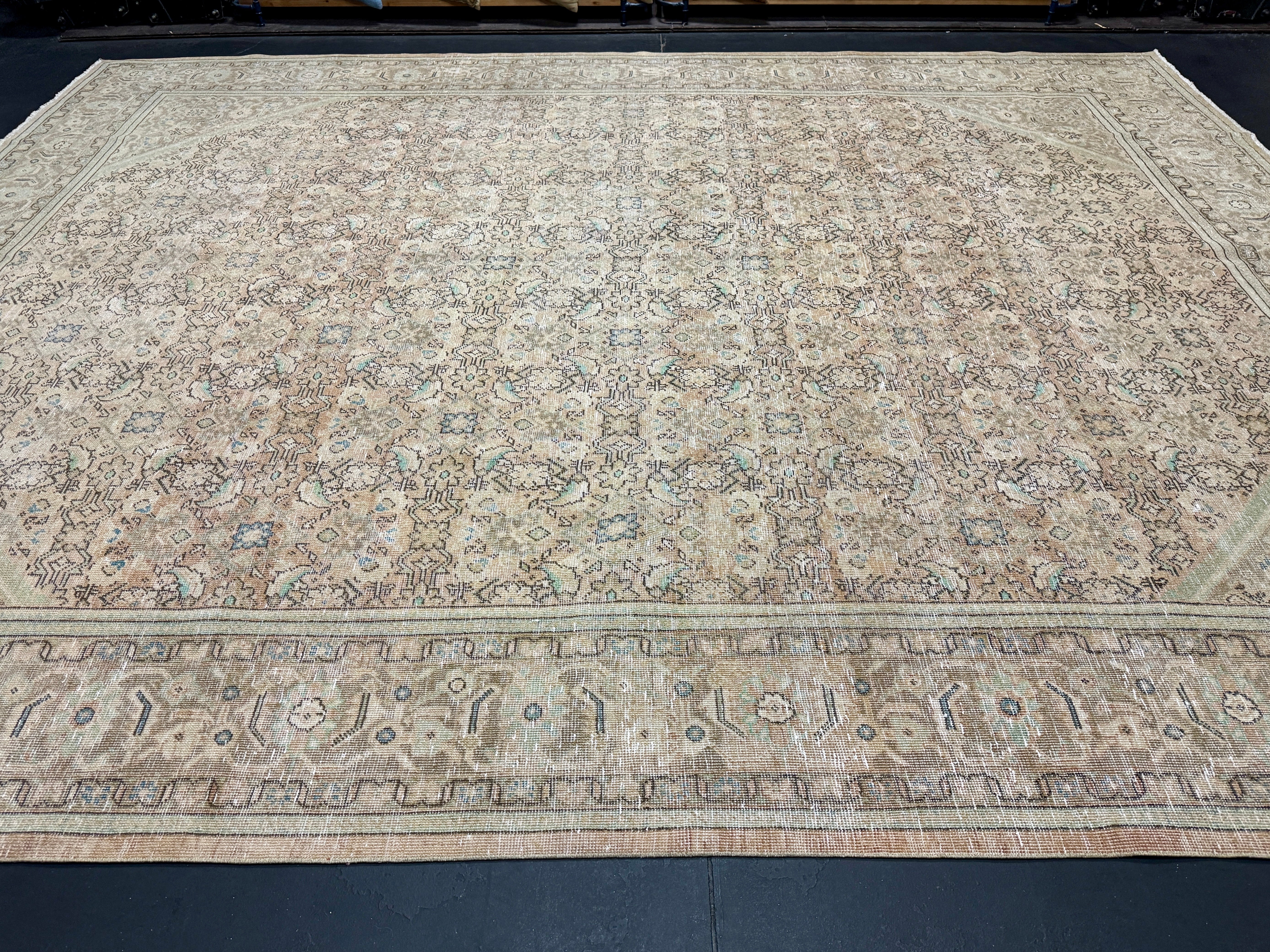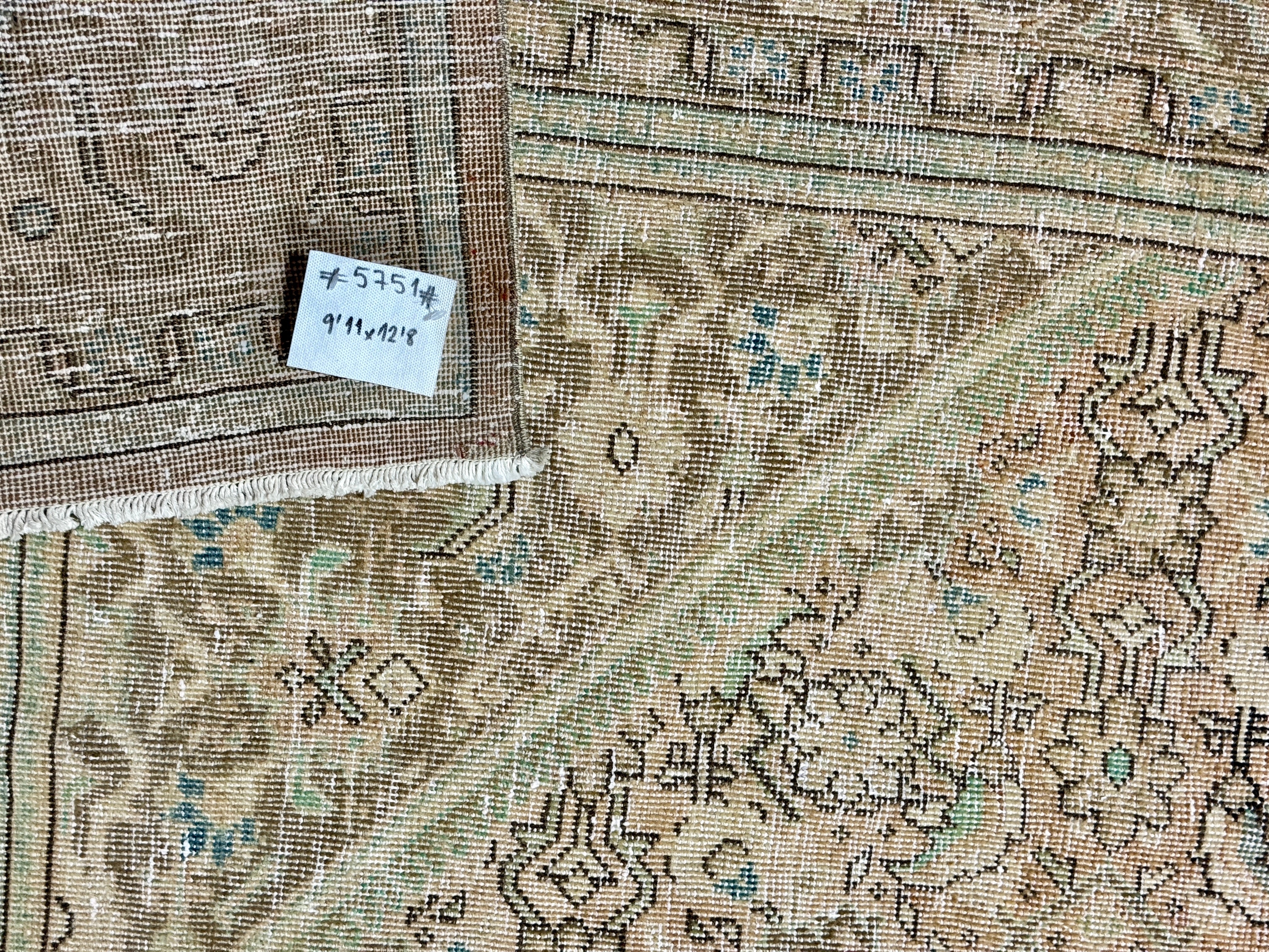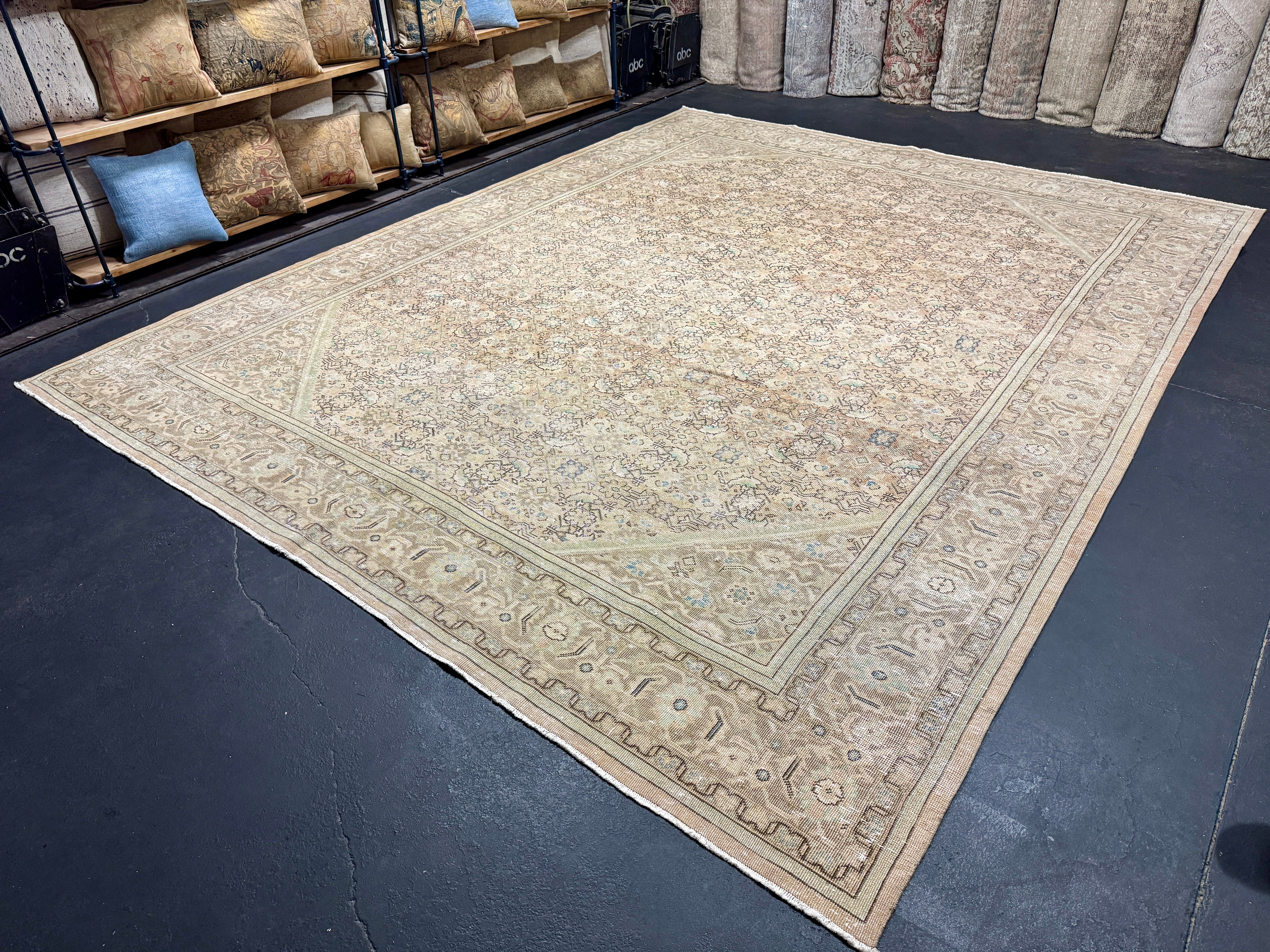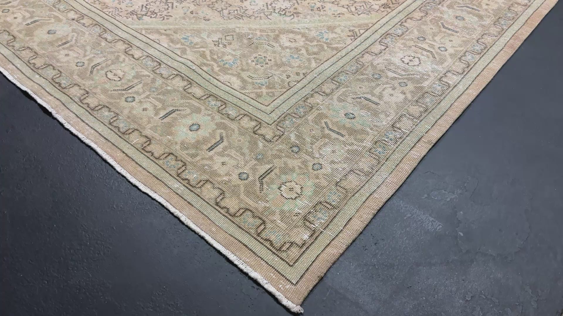 9’11 x 12’8 Classic Vintage Rug Muted Ecru Beige, Sea Green & Periwinkle 5751