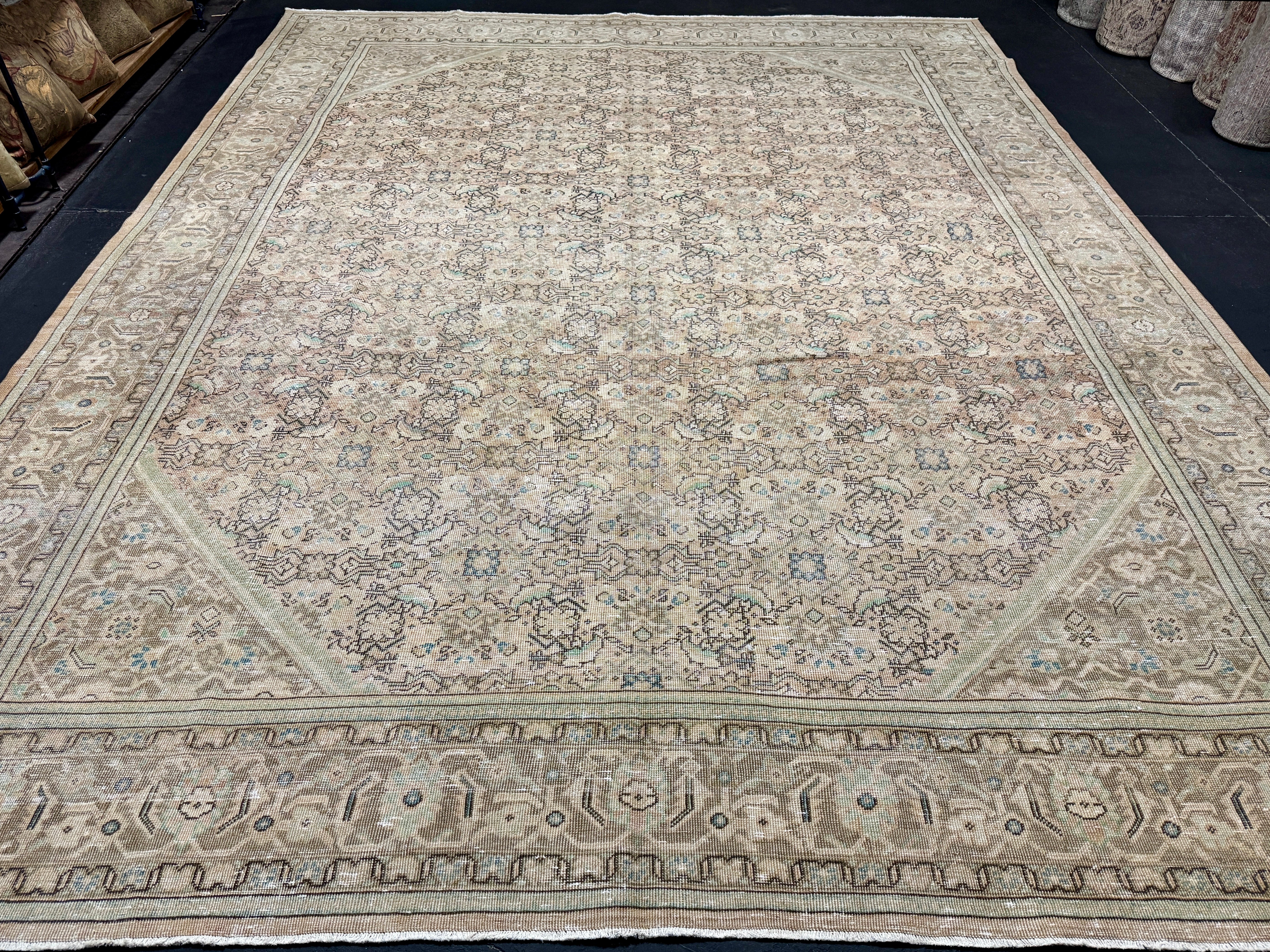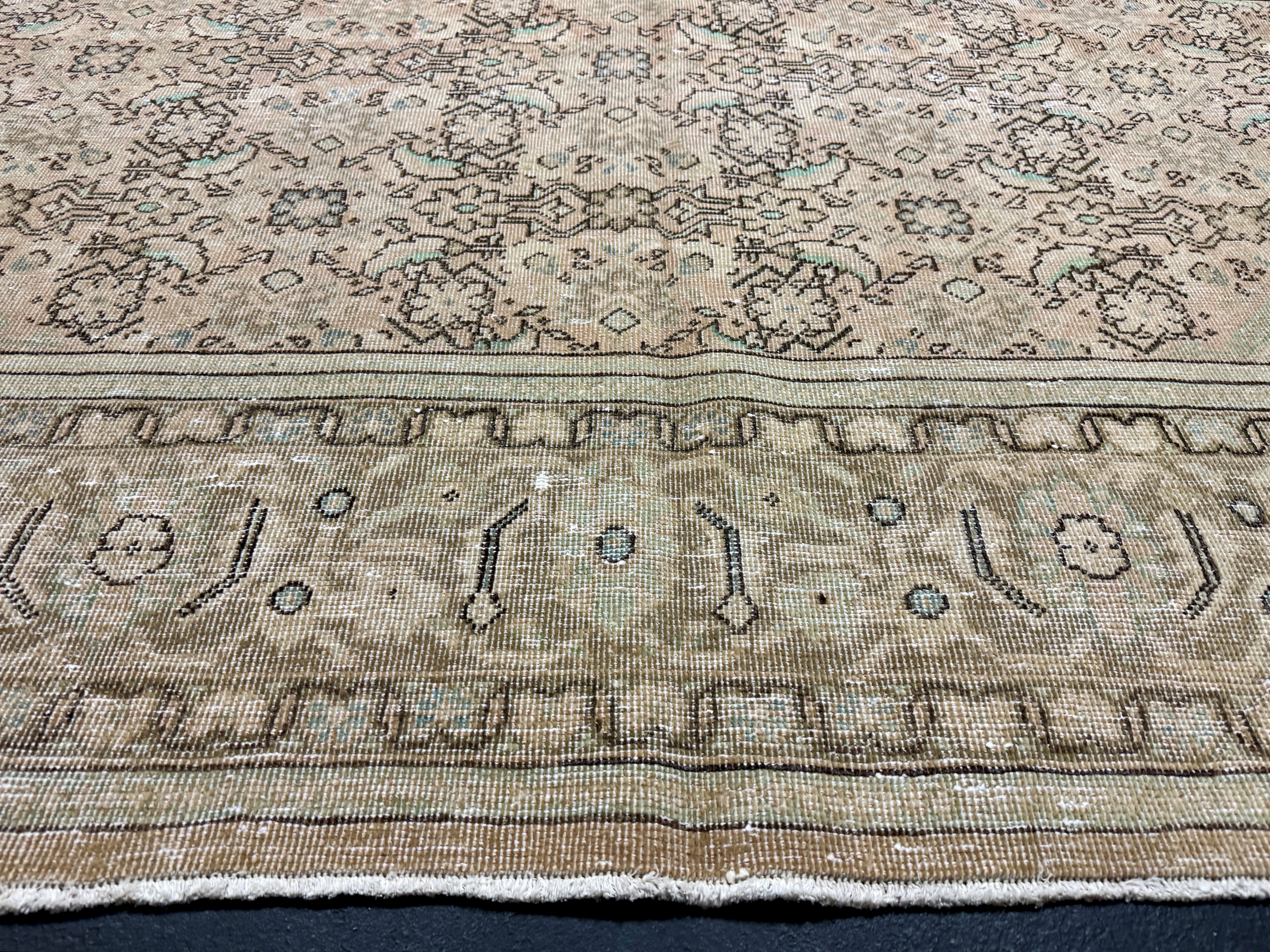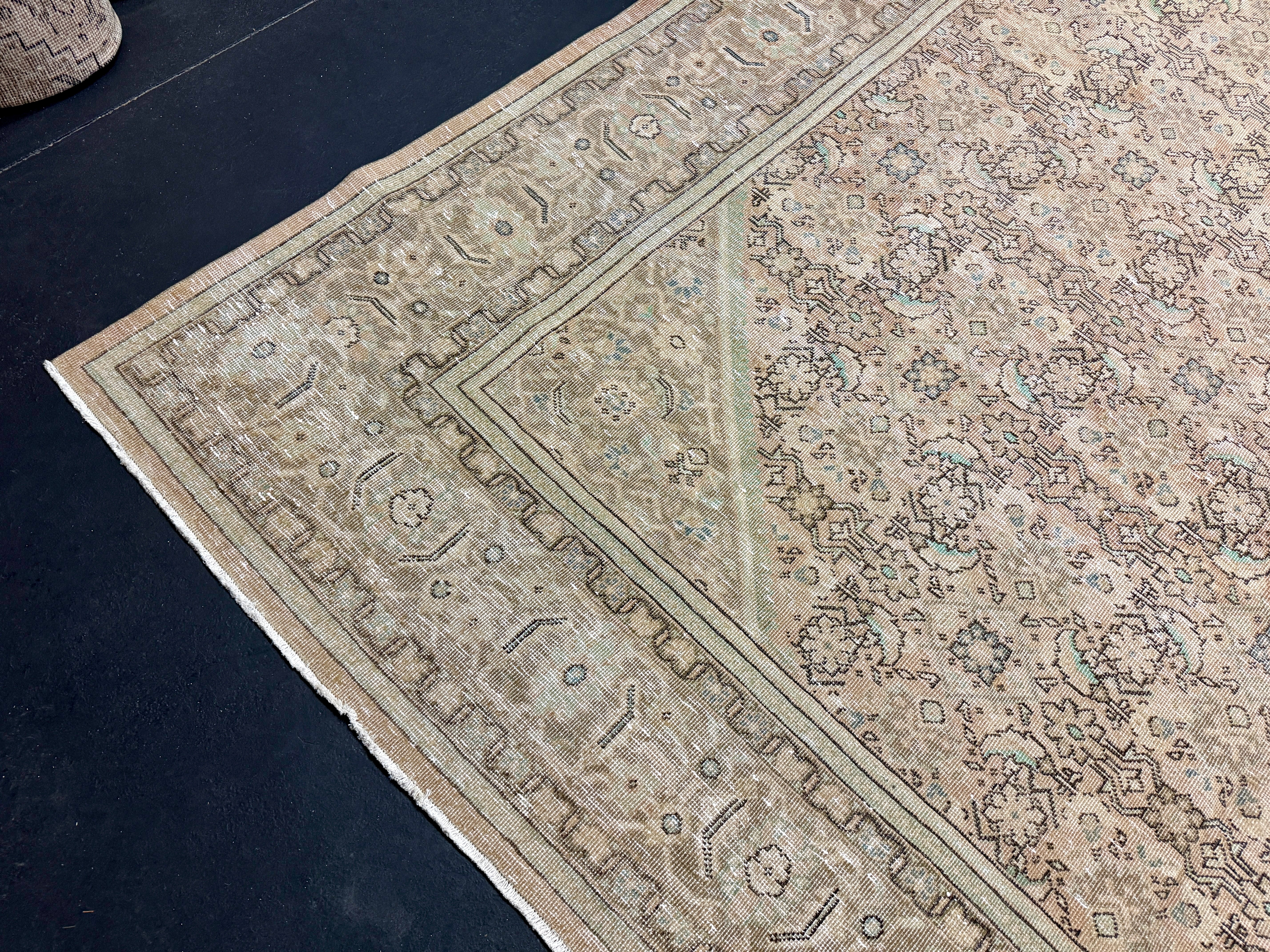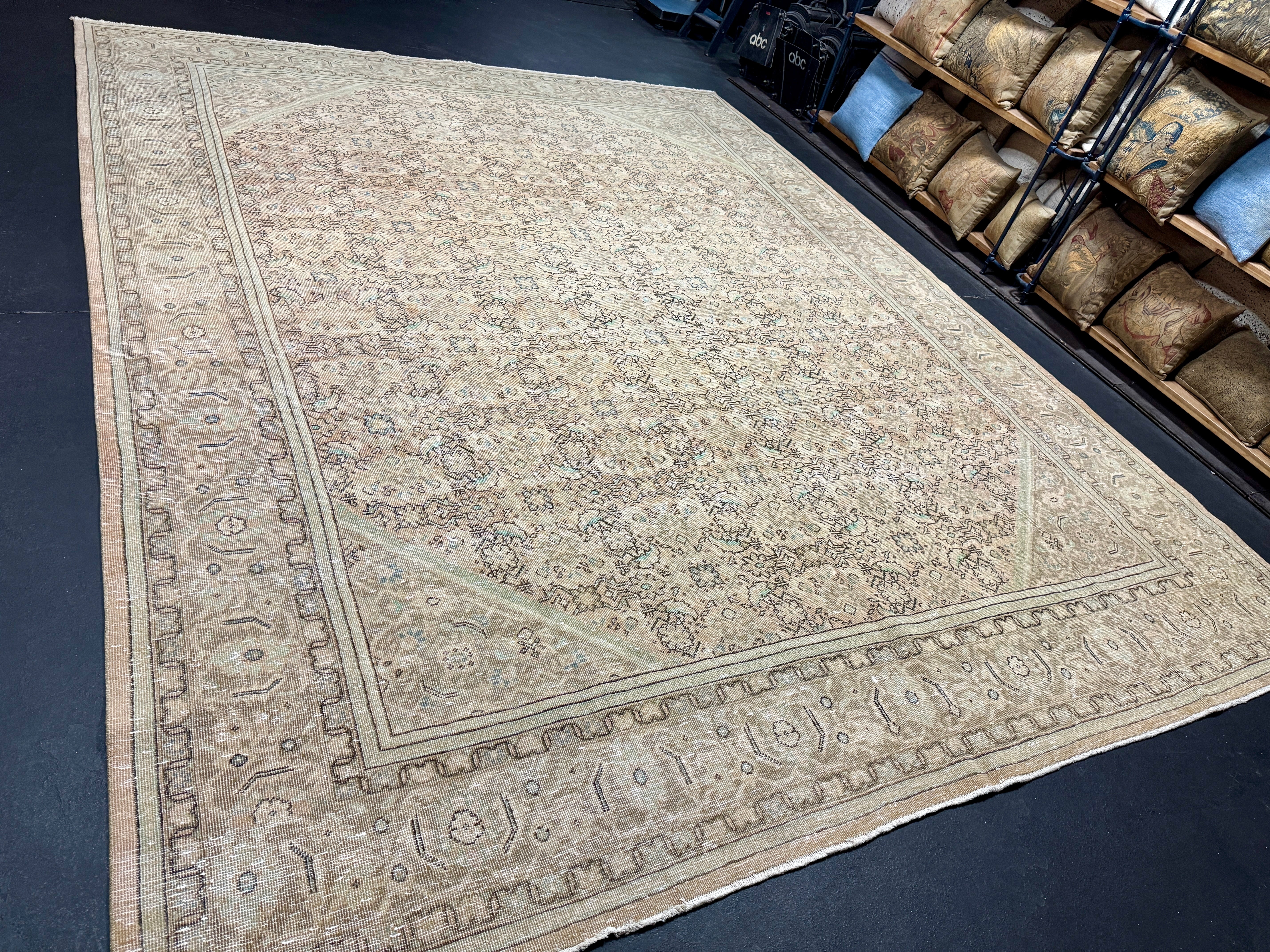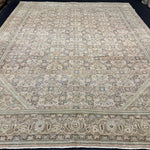 9’11 x 12’8 Classic Vintage Rug Muted Ecru Beige, Sea Green & Periwinkle 5751