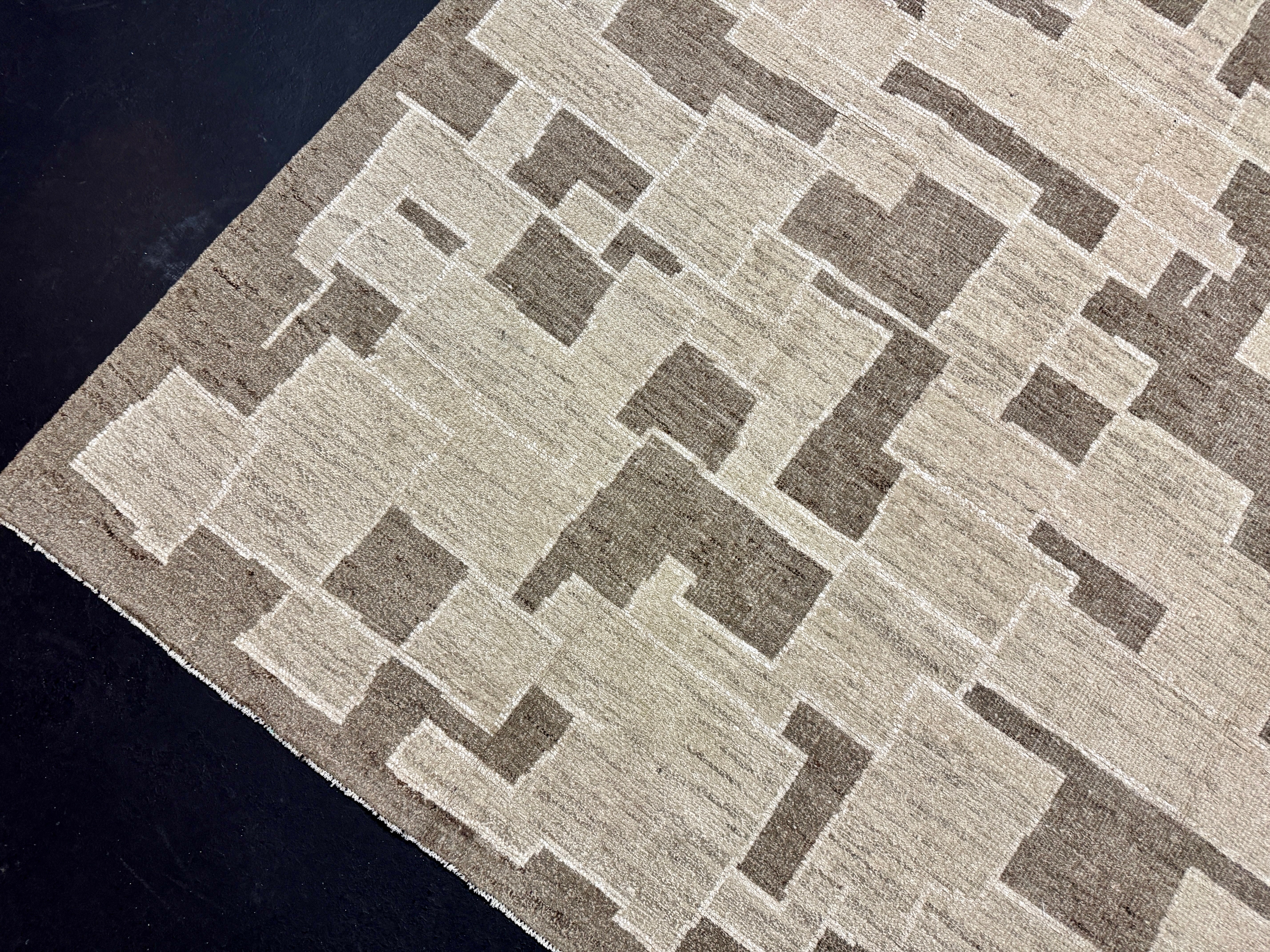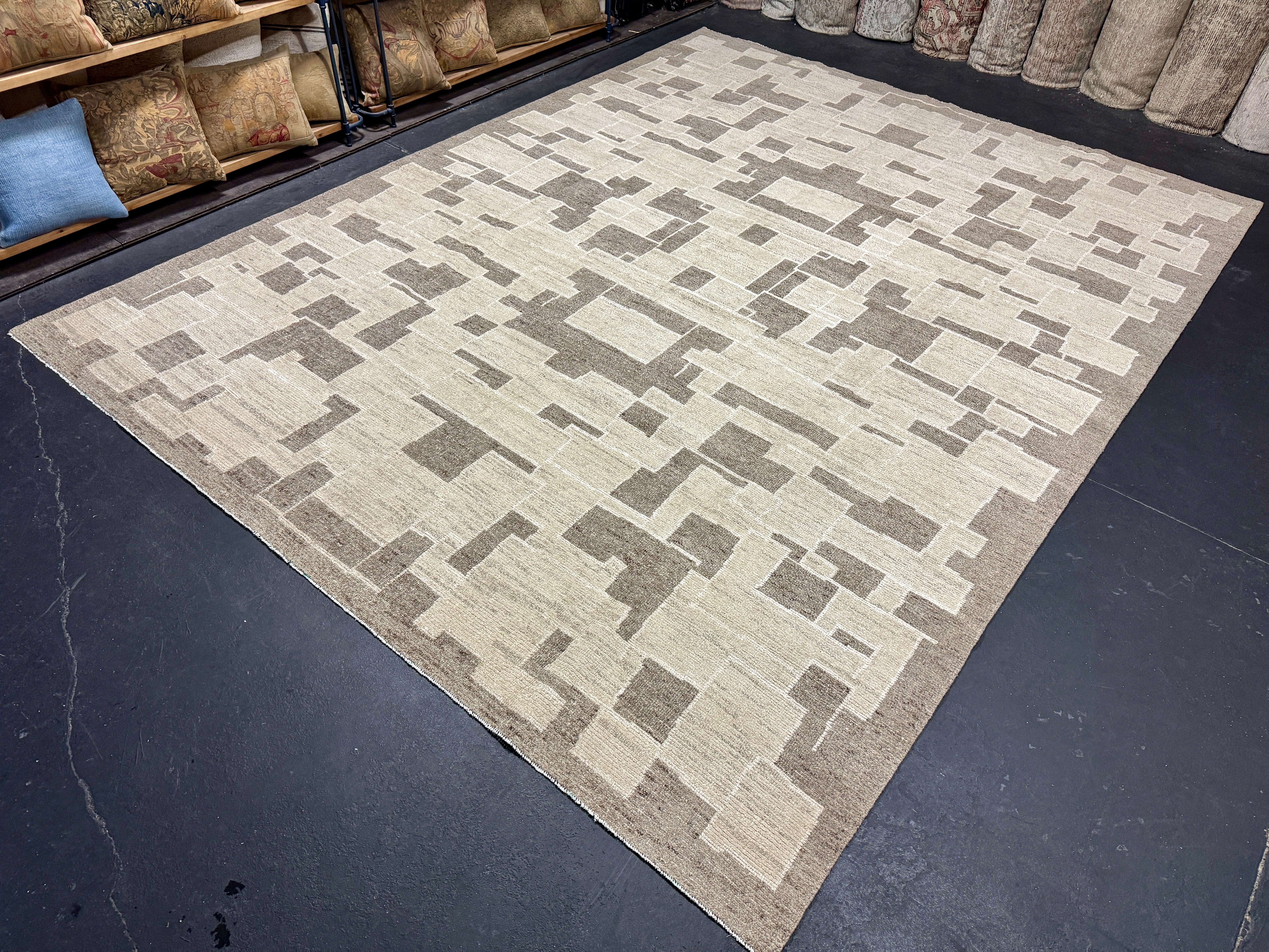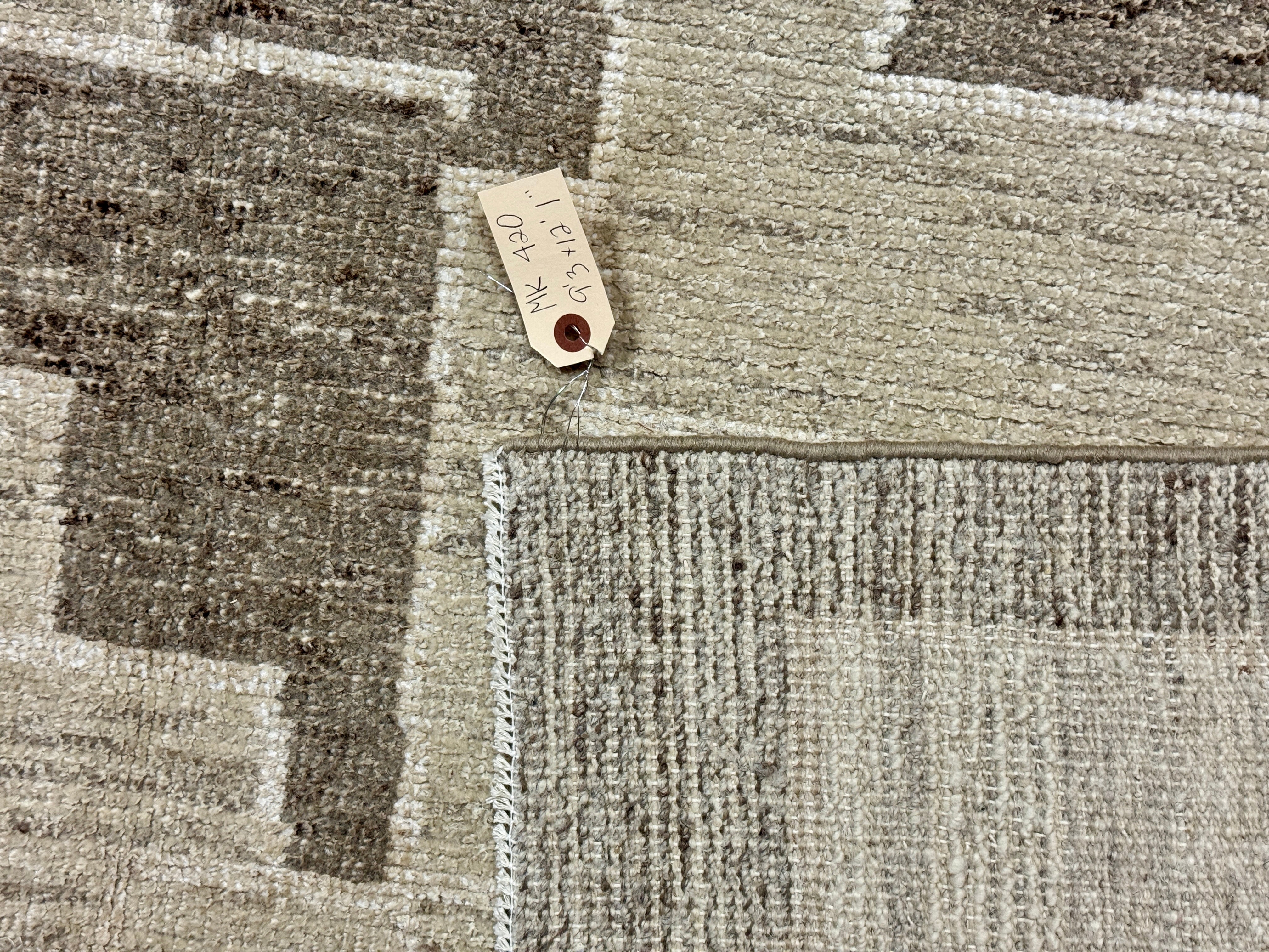 9’3 x 12’1 Moroccan Style Rug Pure Silk and Organic Wool Muted Beige Stone, Brown & Cream MK420