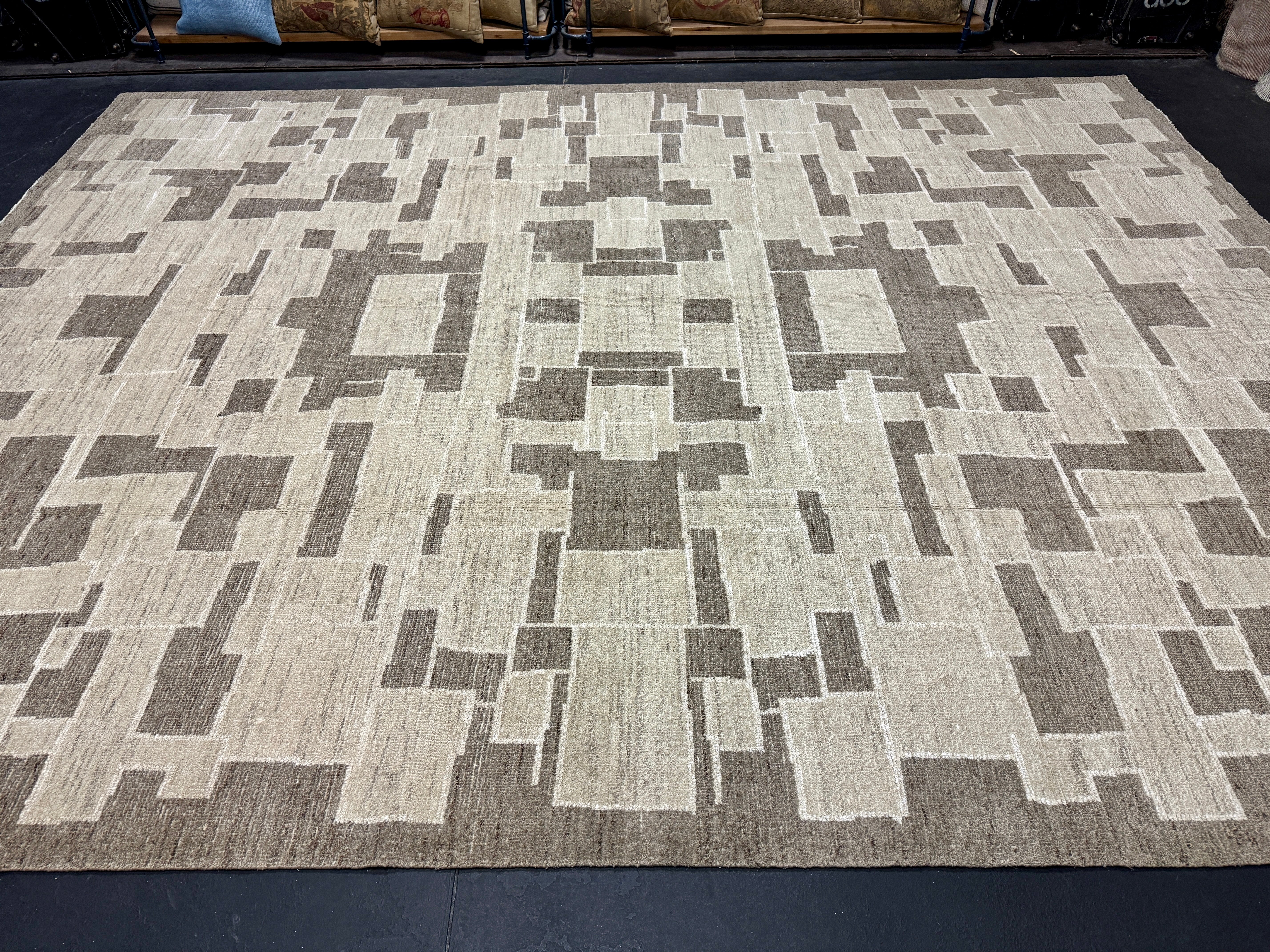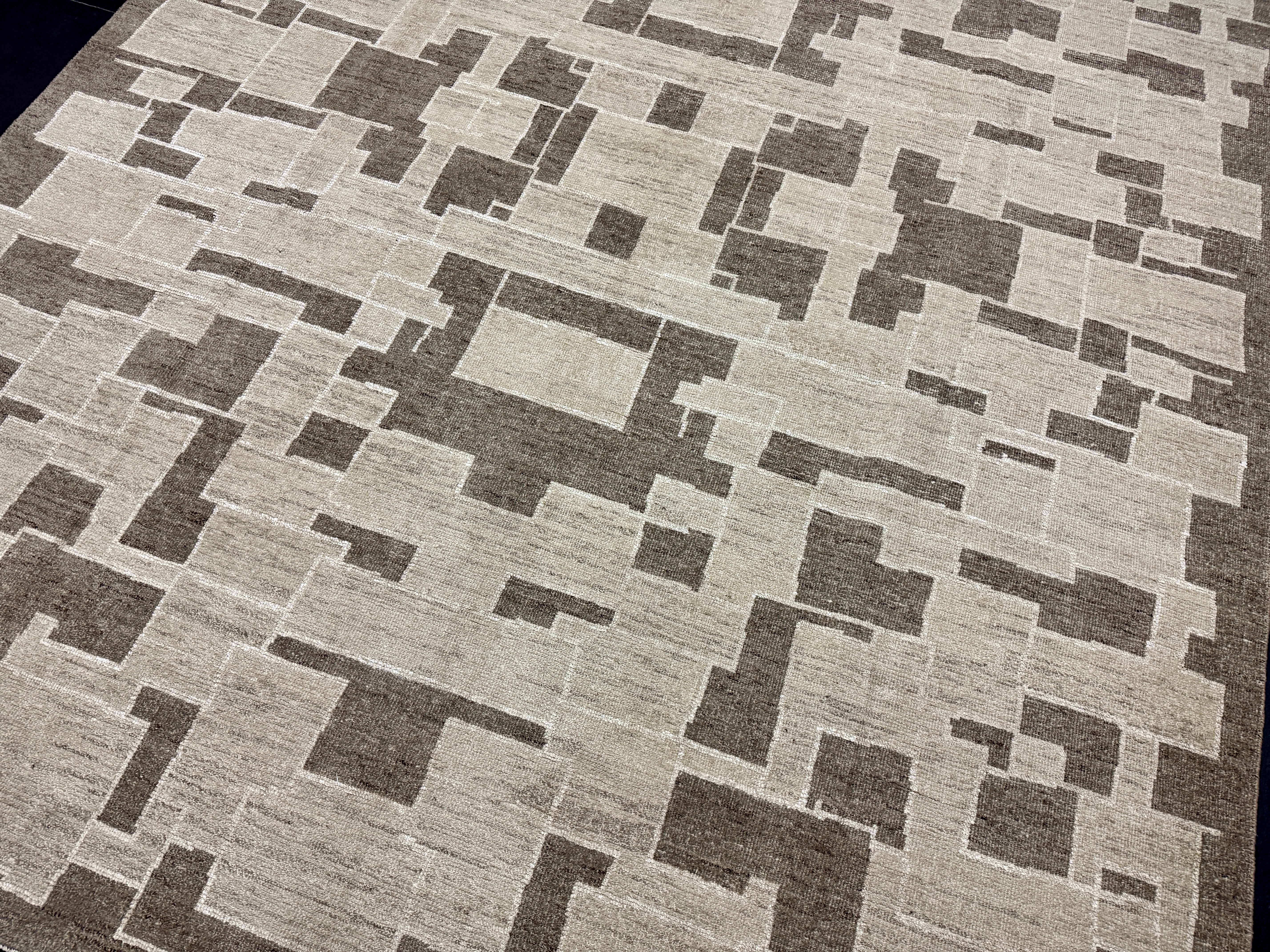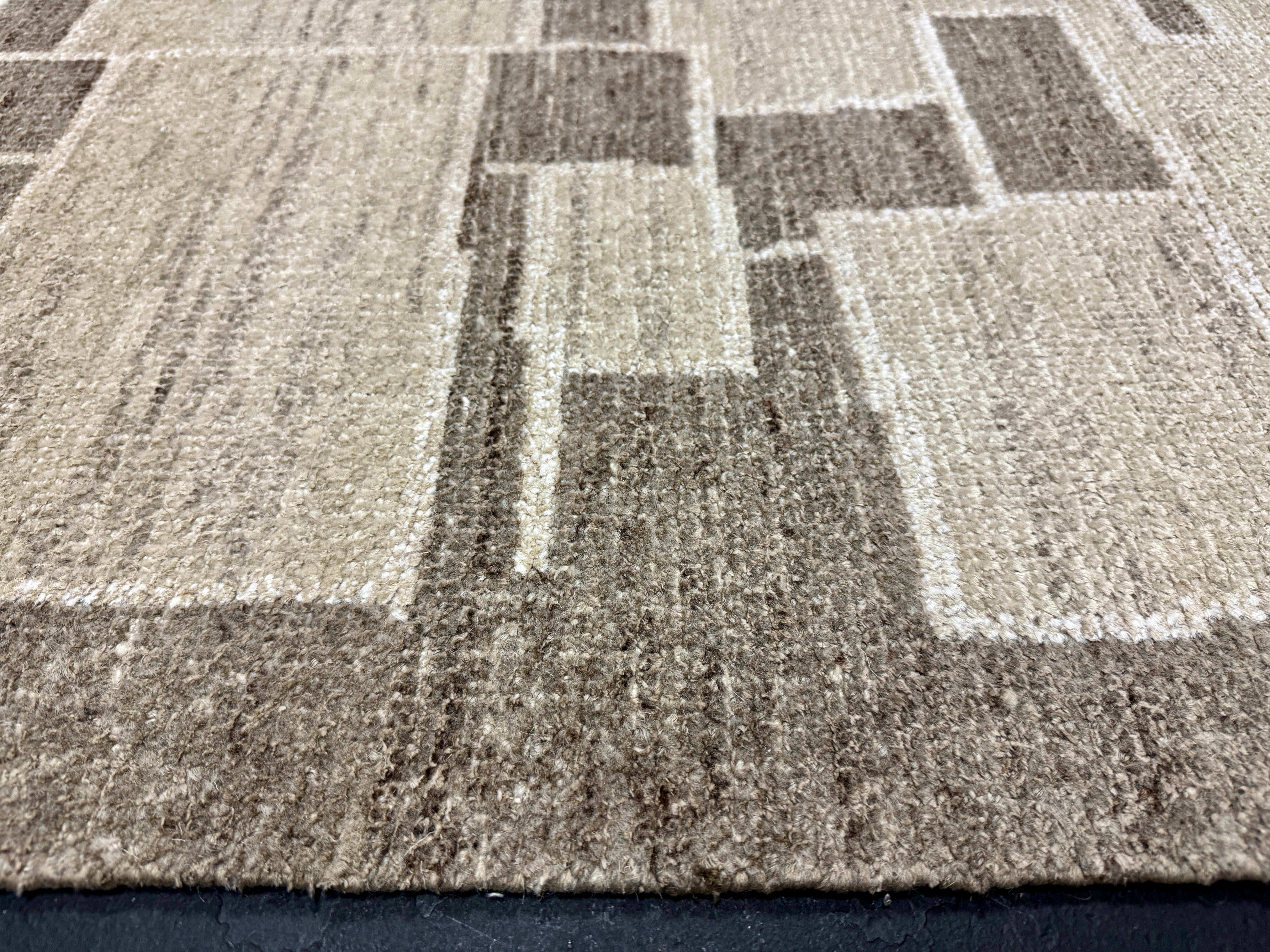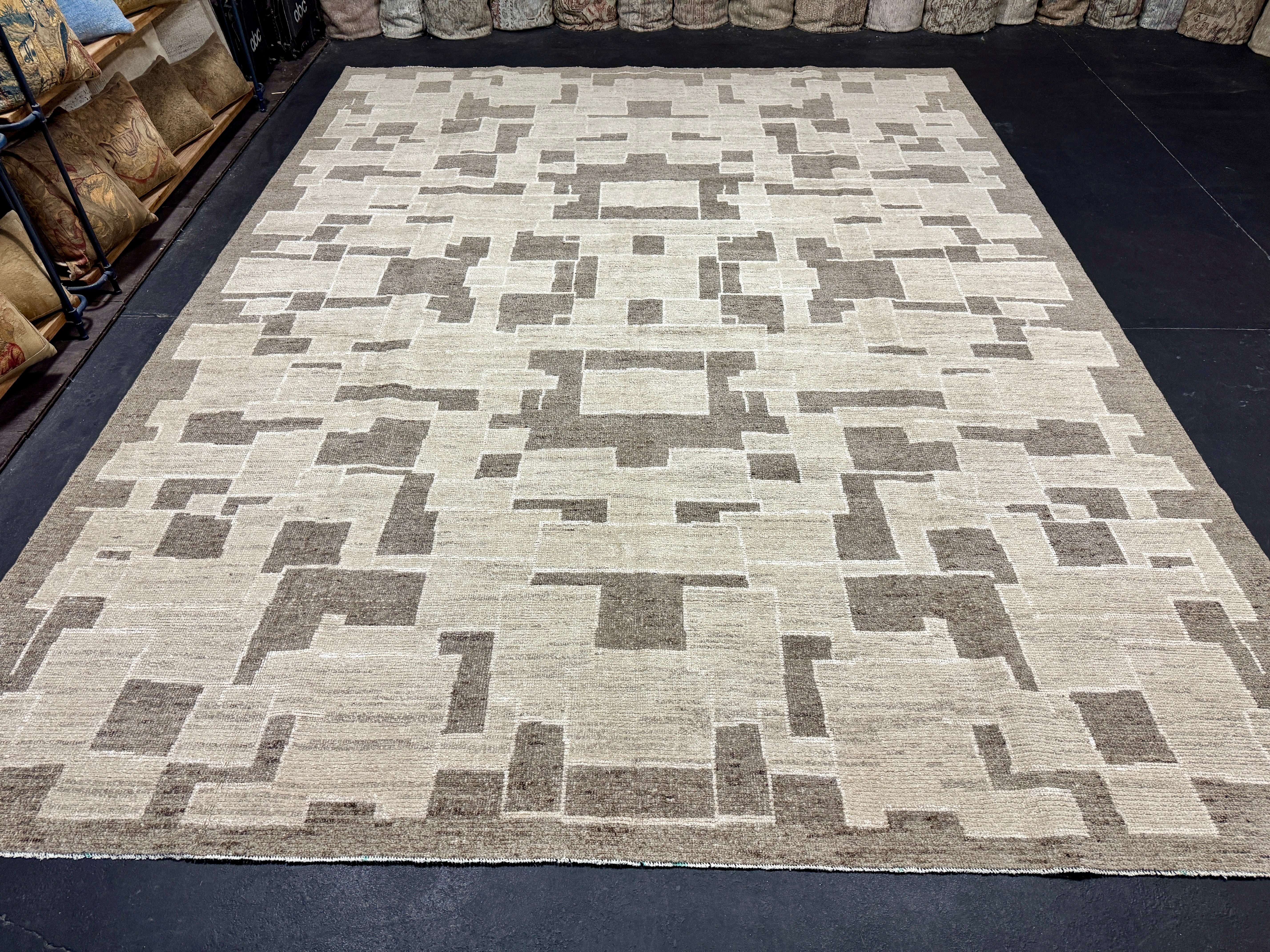 9’3 x 12’1 Moroccan Style Rug Pure Silk and Organic Wool Muted Beige Stone, Brown & Cream MK420