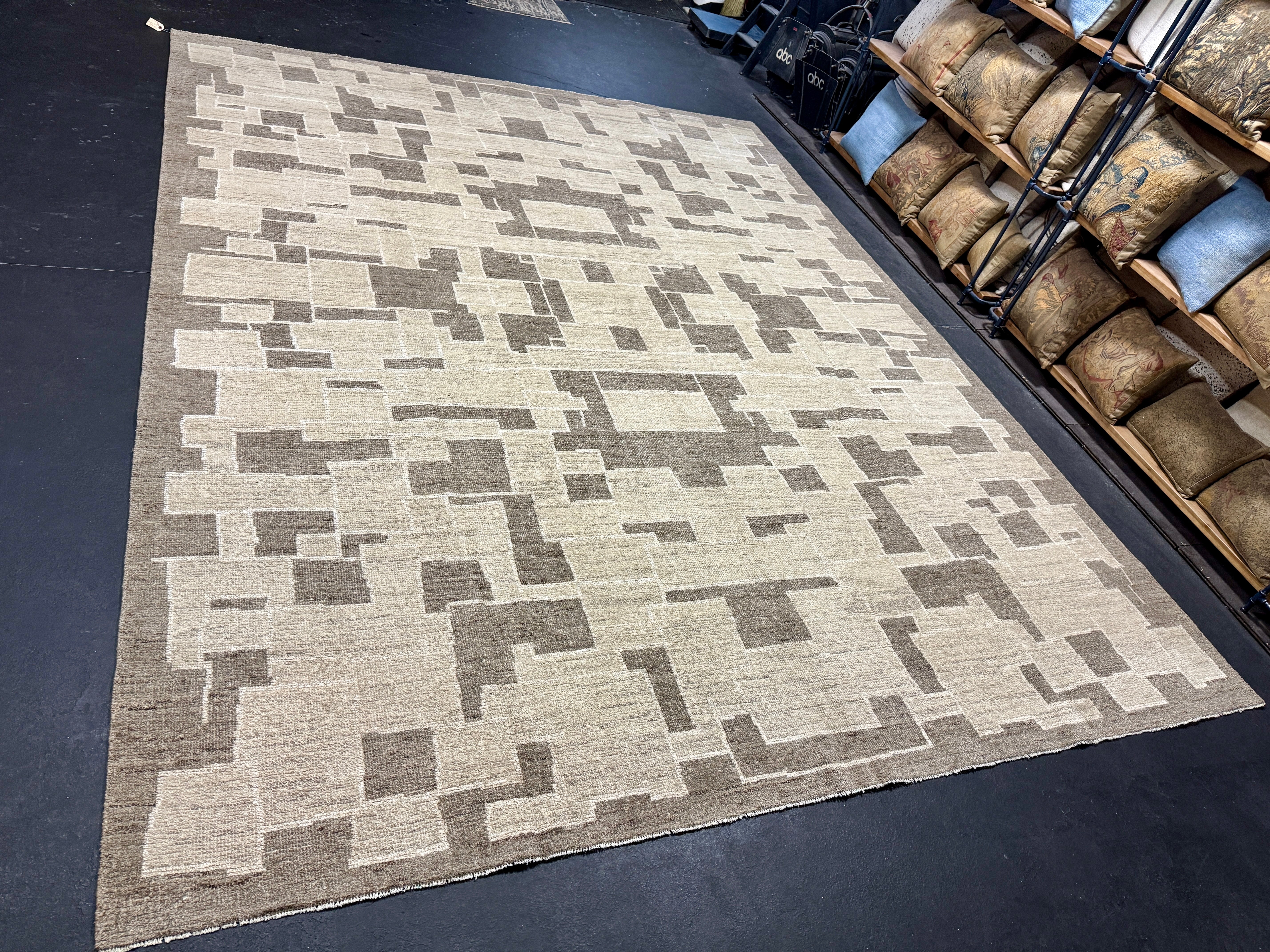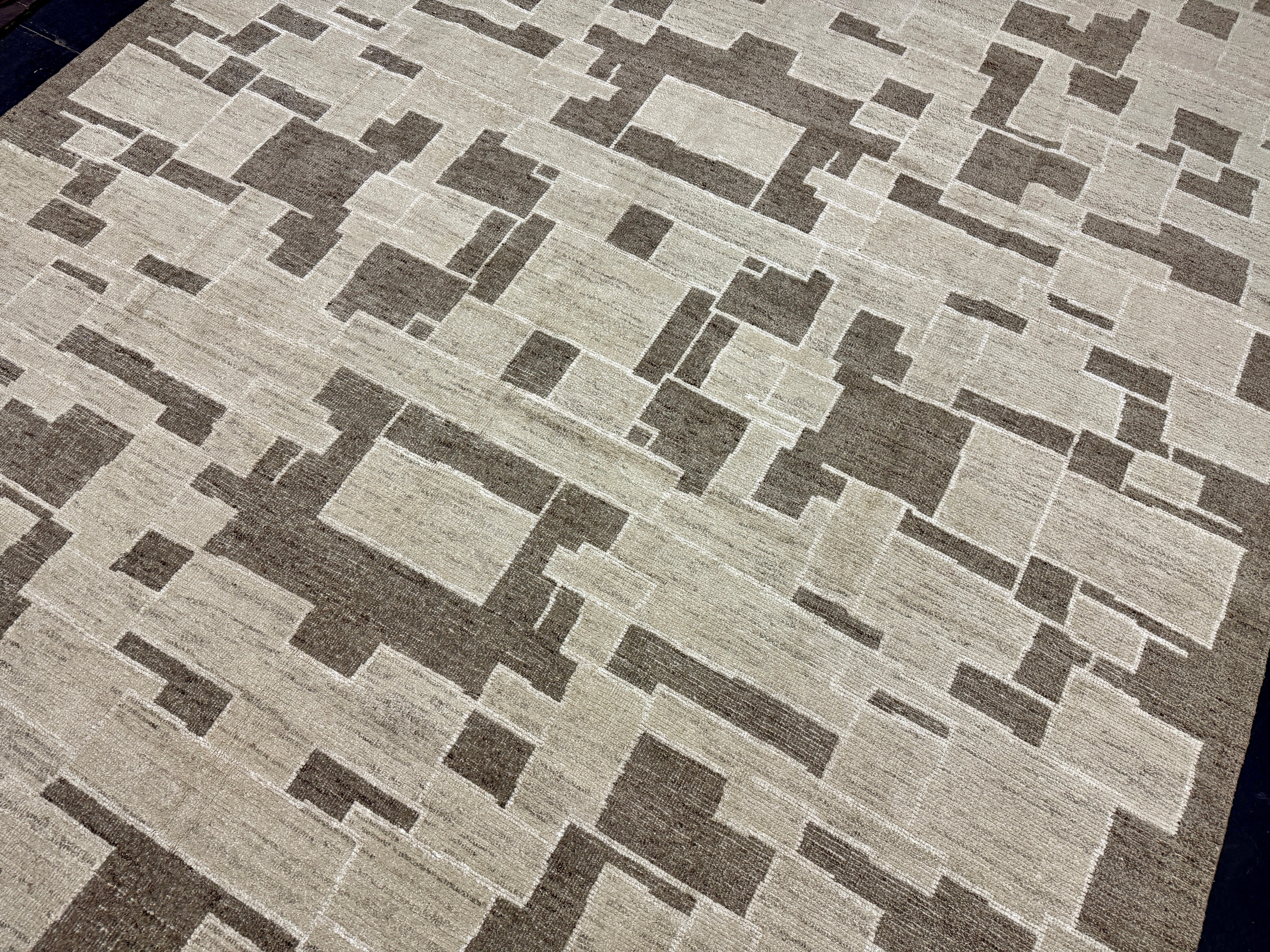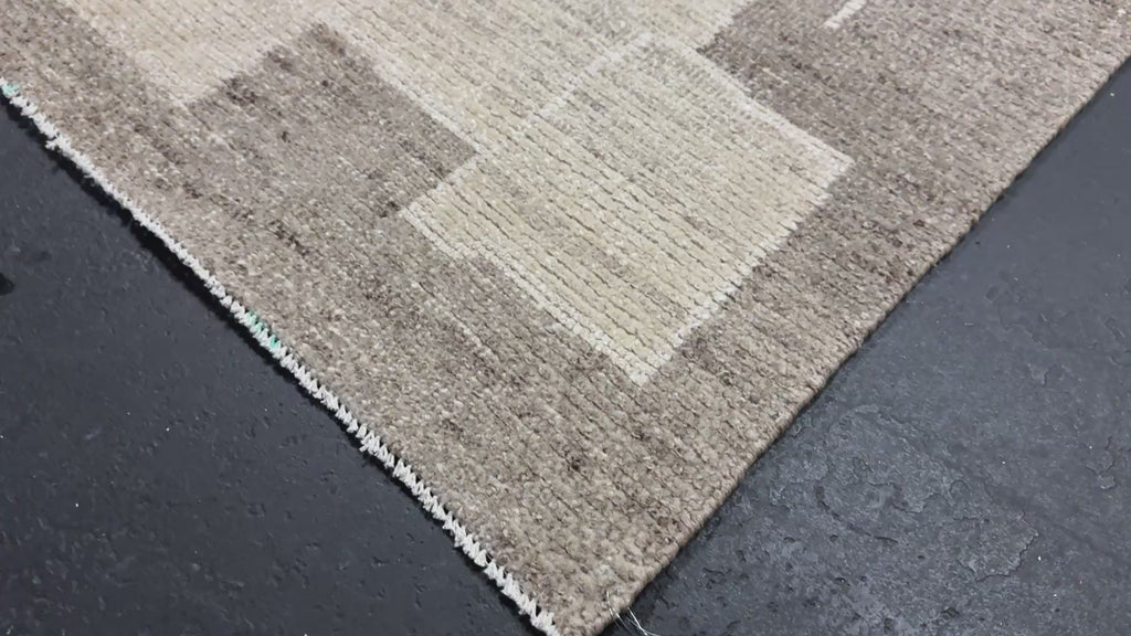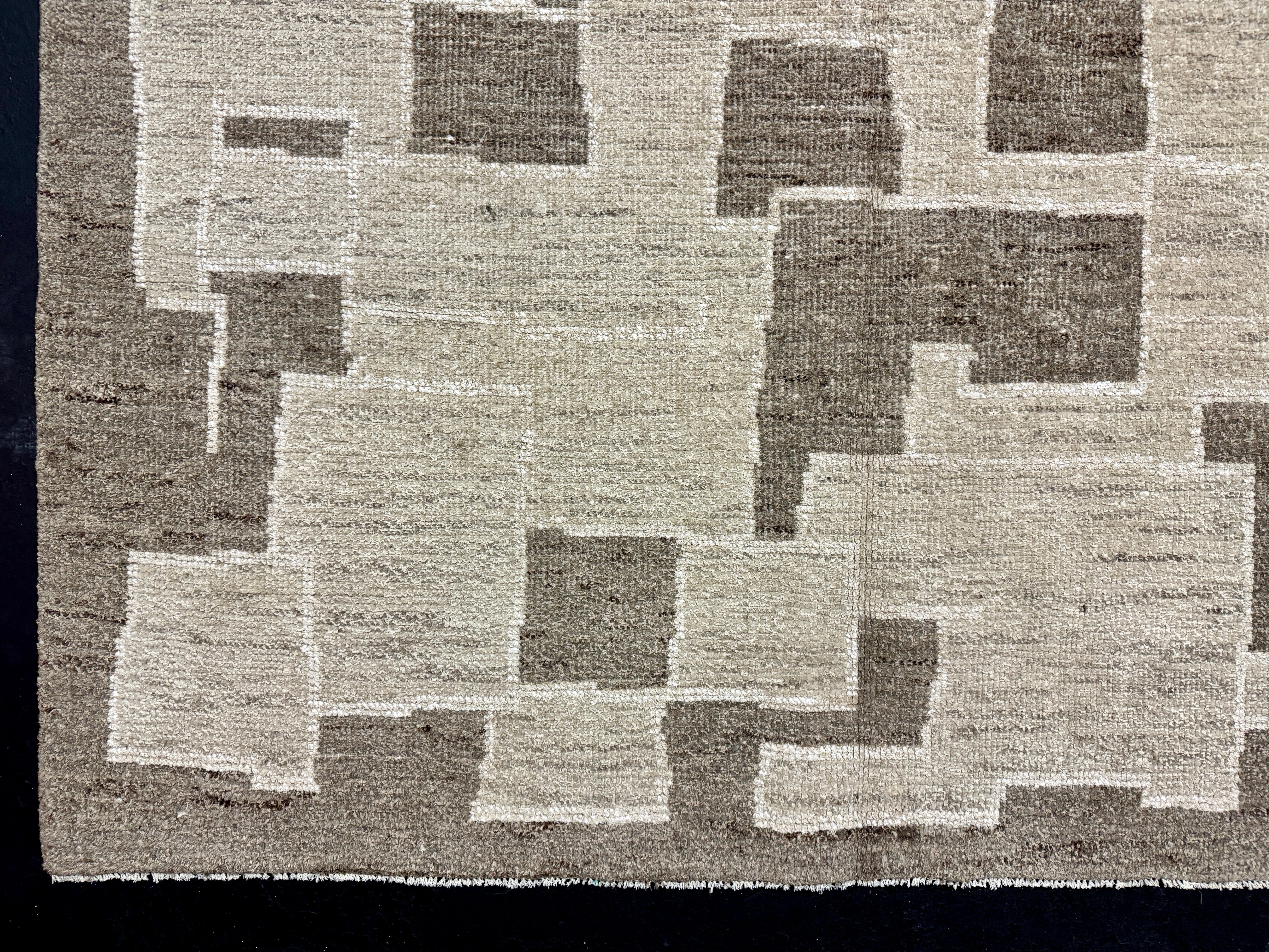 9’3 x 12’1 Moroccan Style Rug Pure Silk and Organic Wool Muted Beige Stone, Brown & Cream MK420