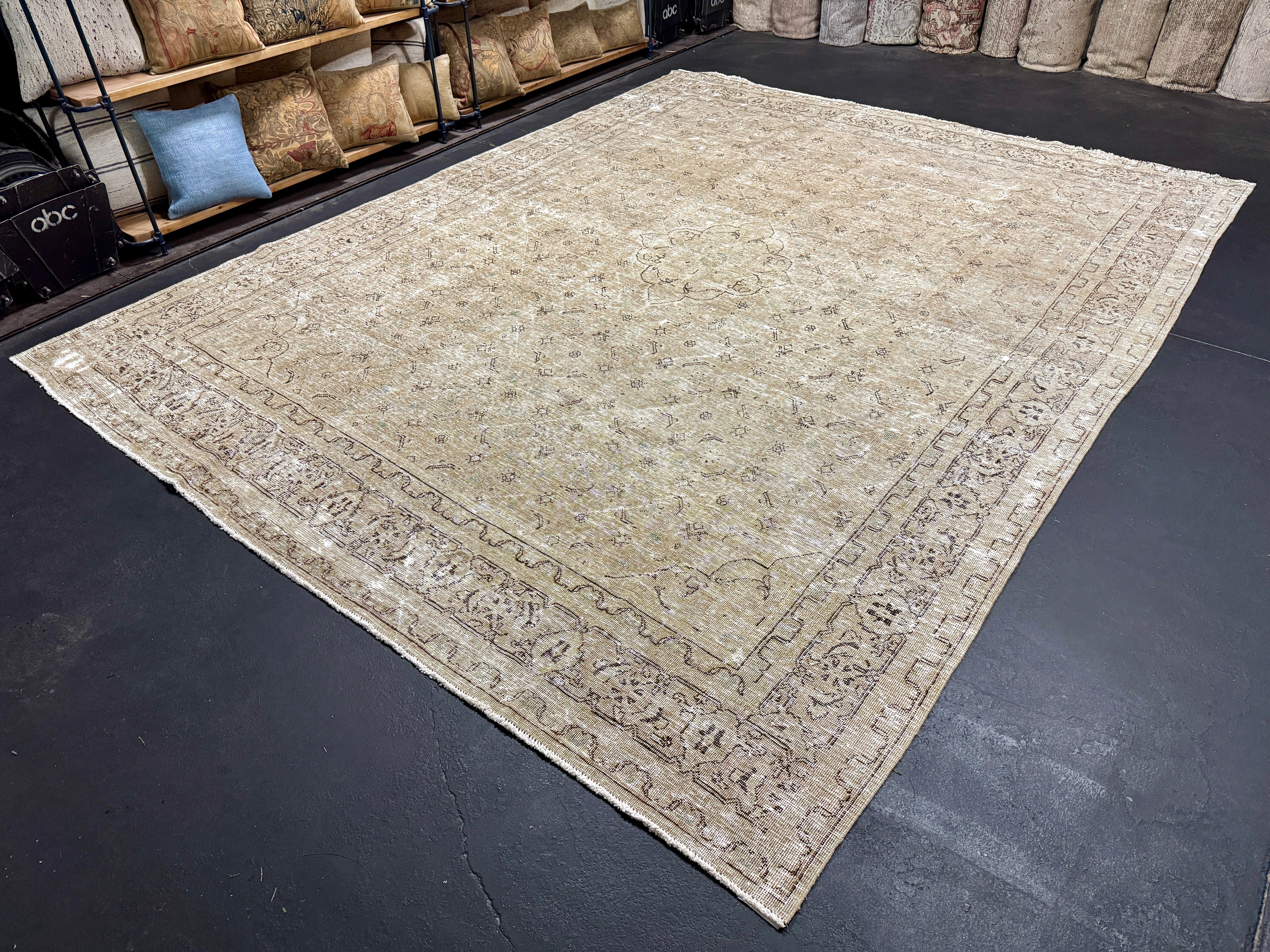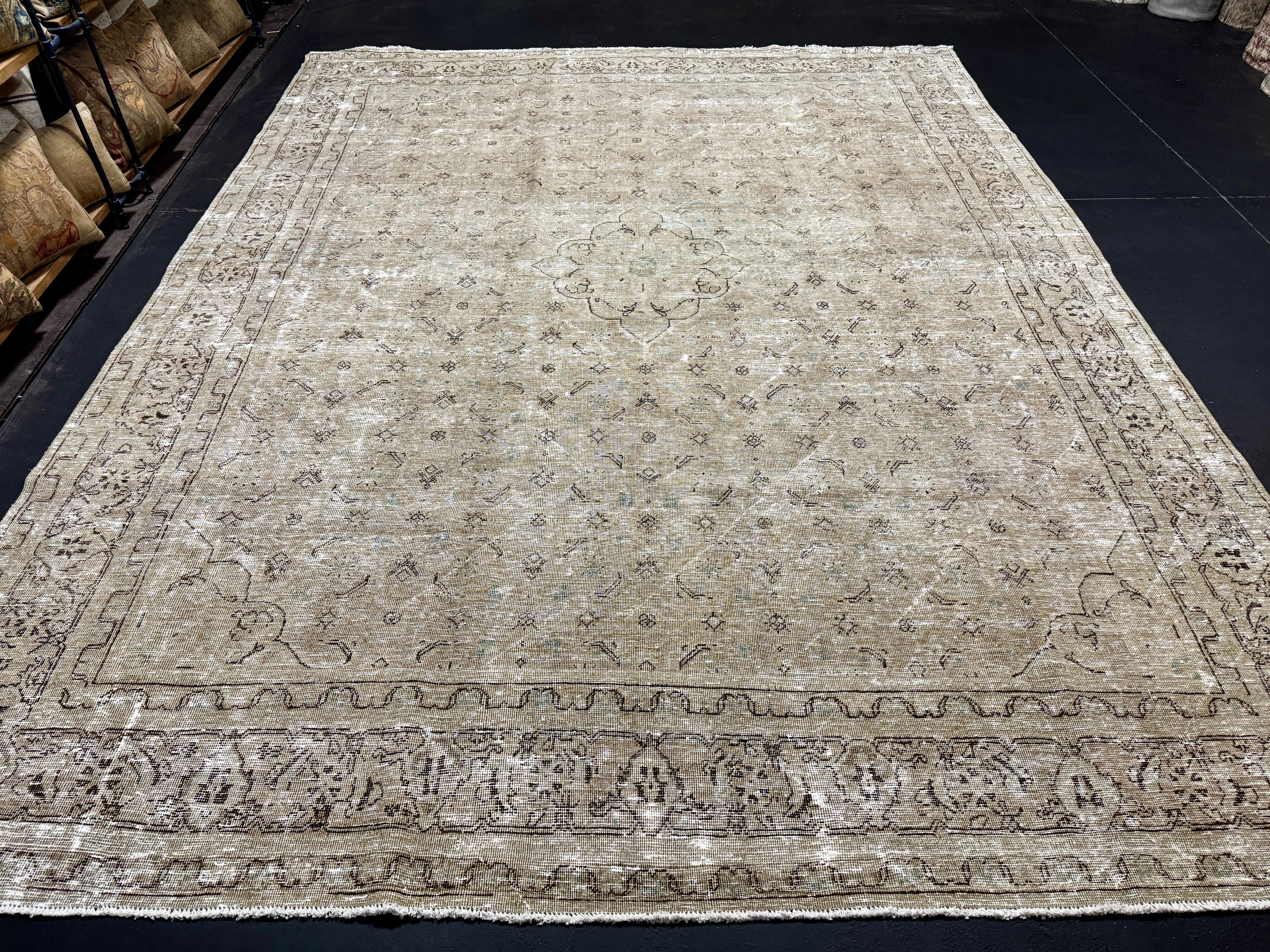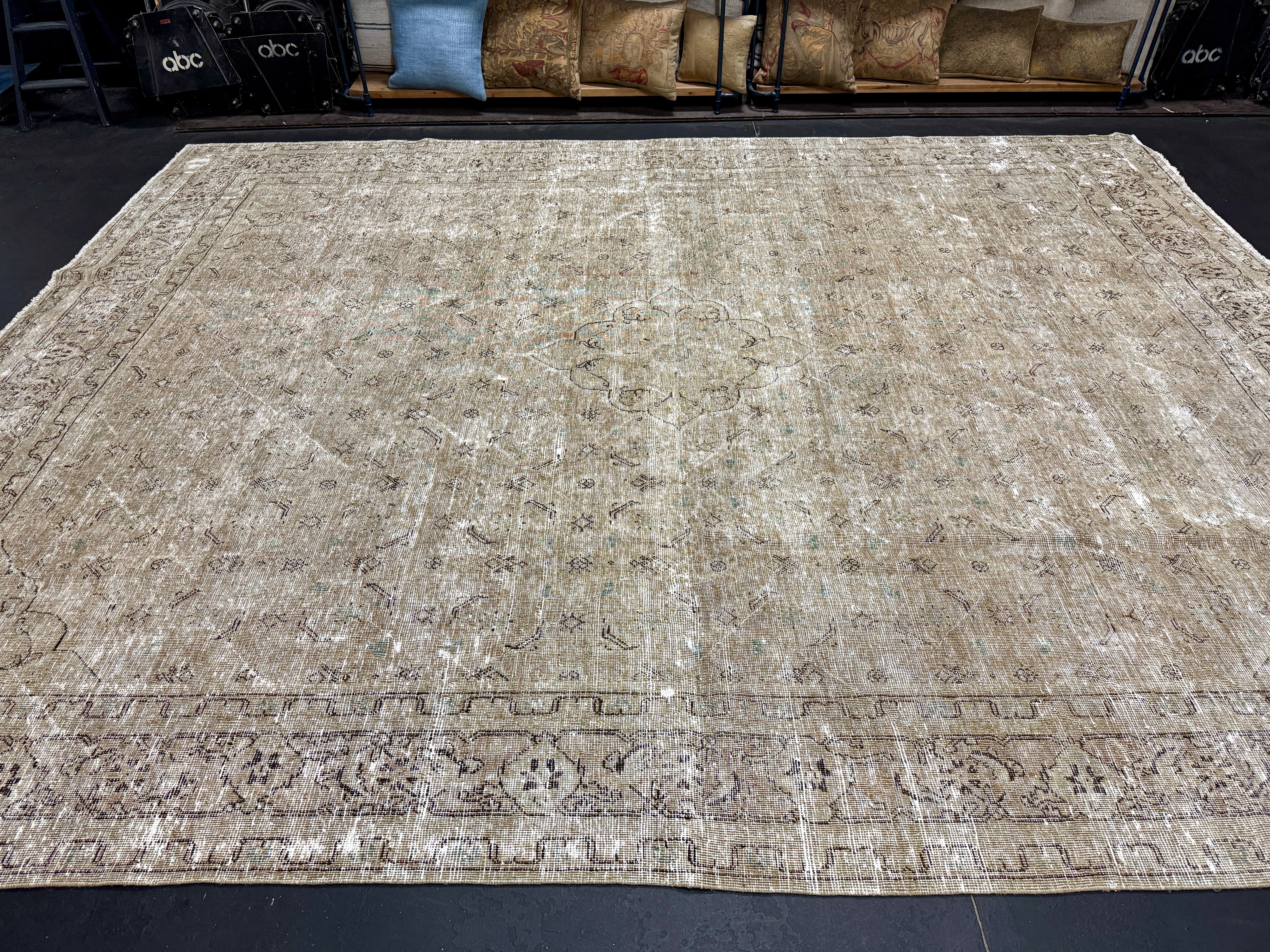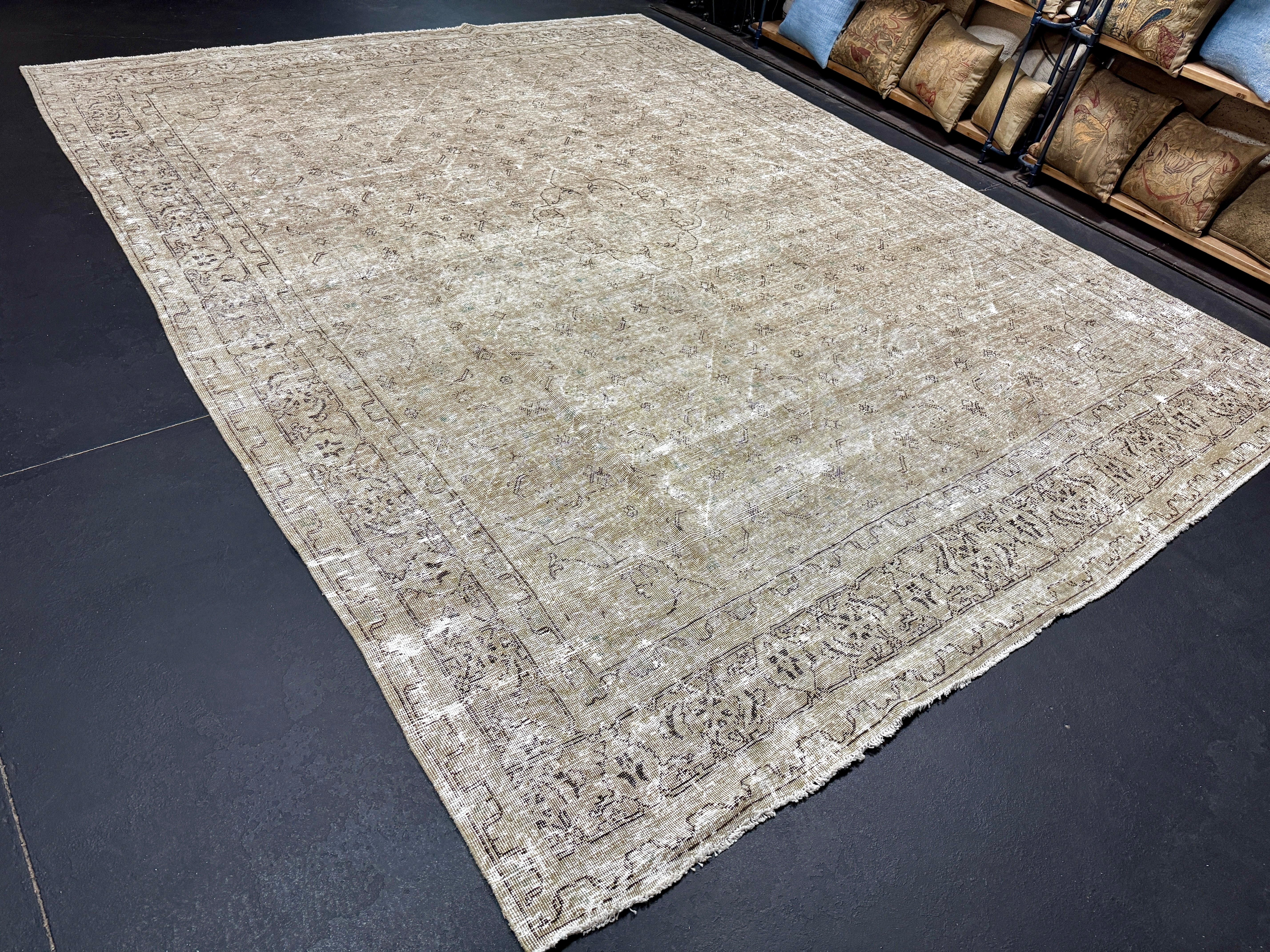 9’6 x 12’4 Classic Vintage Rug Muted Gray-Beige + Sea Blue 5634