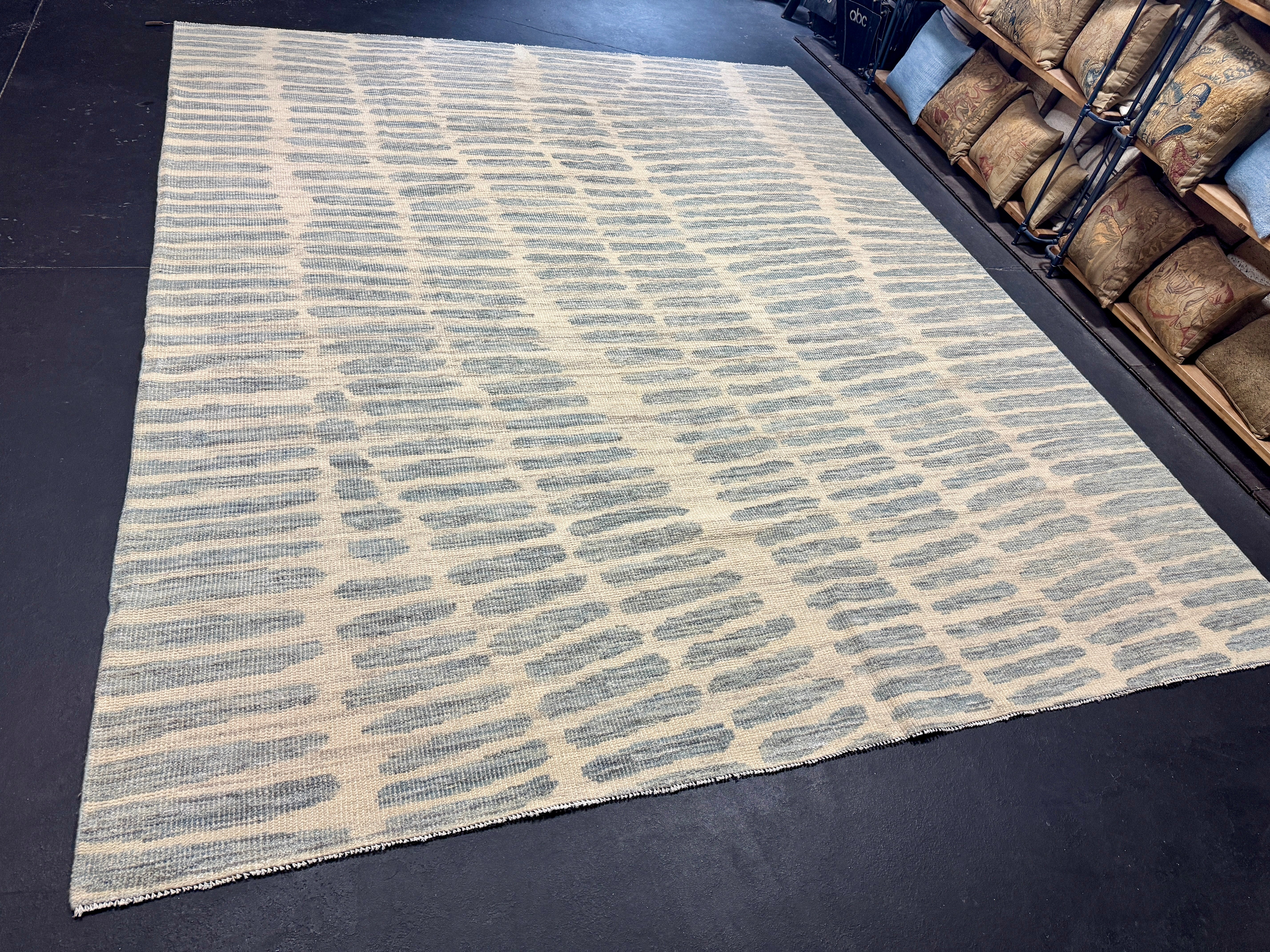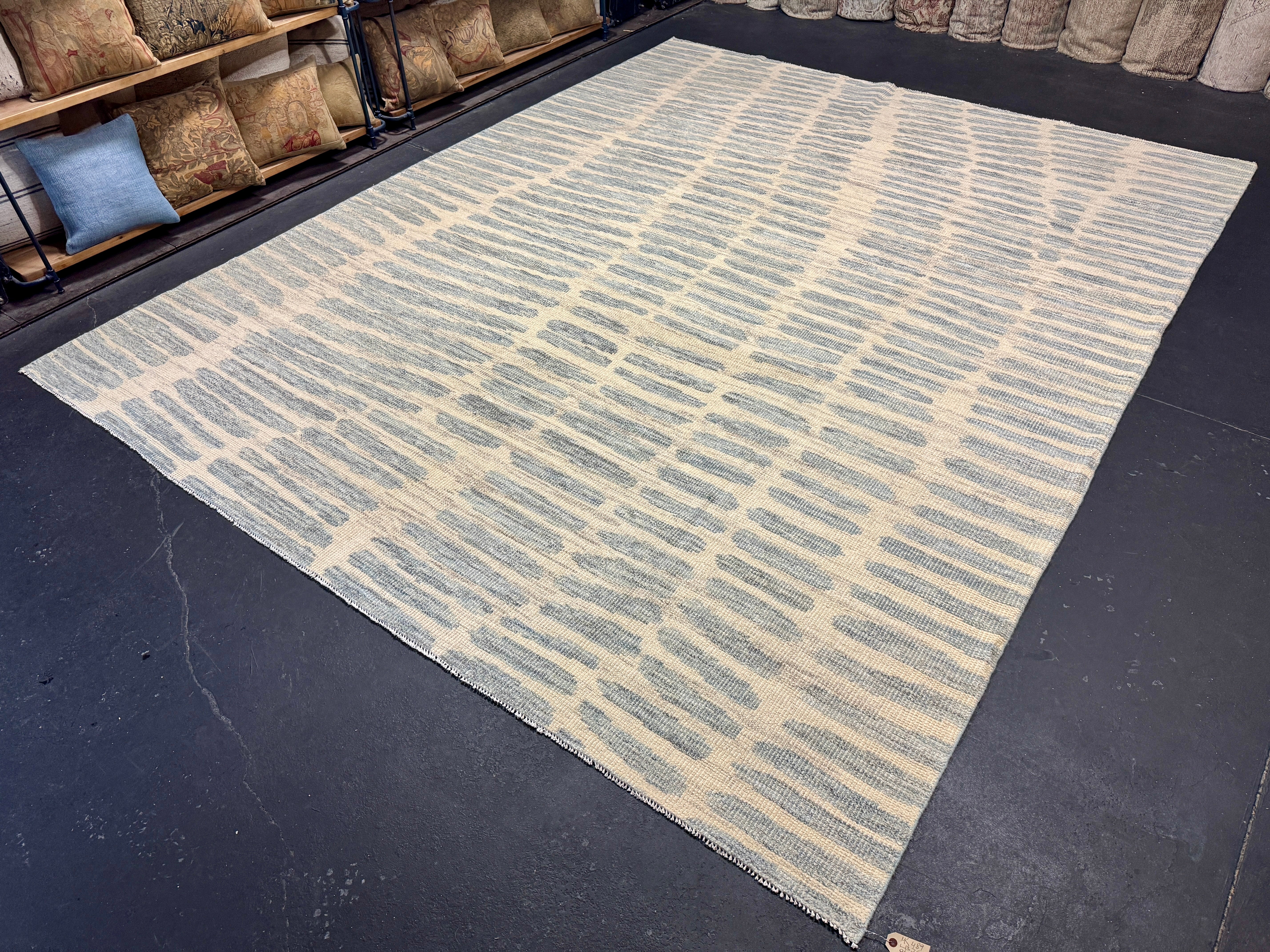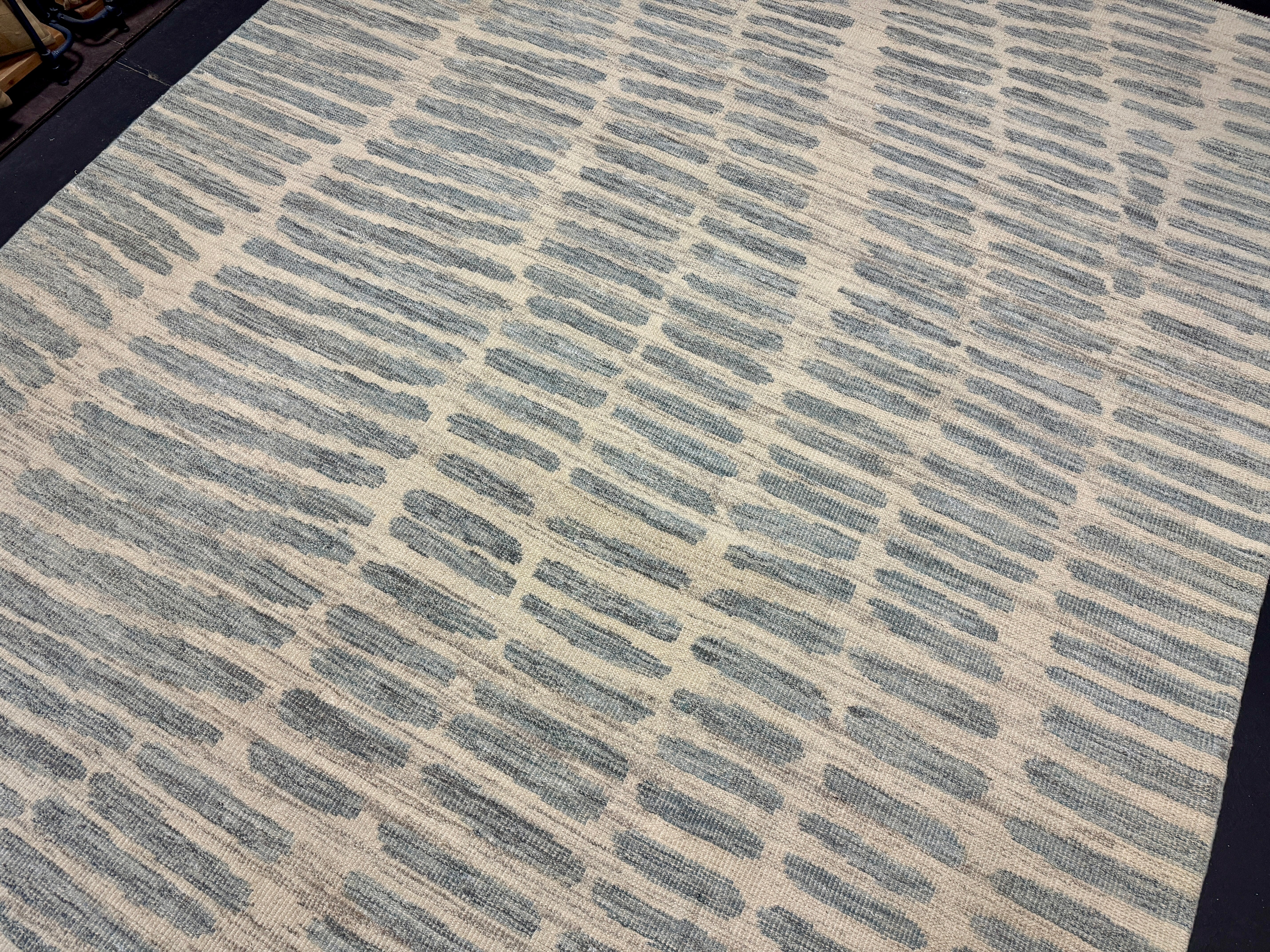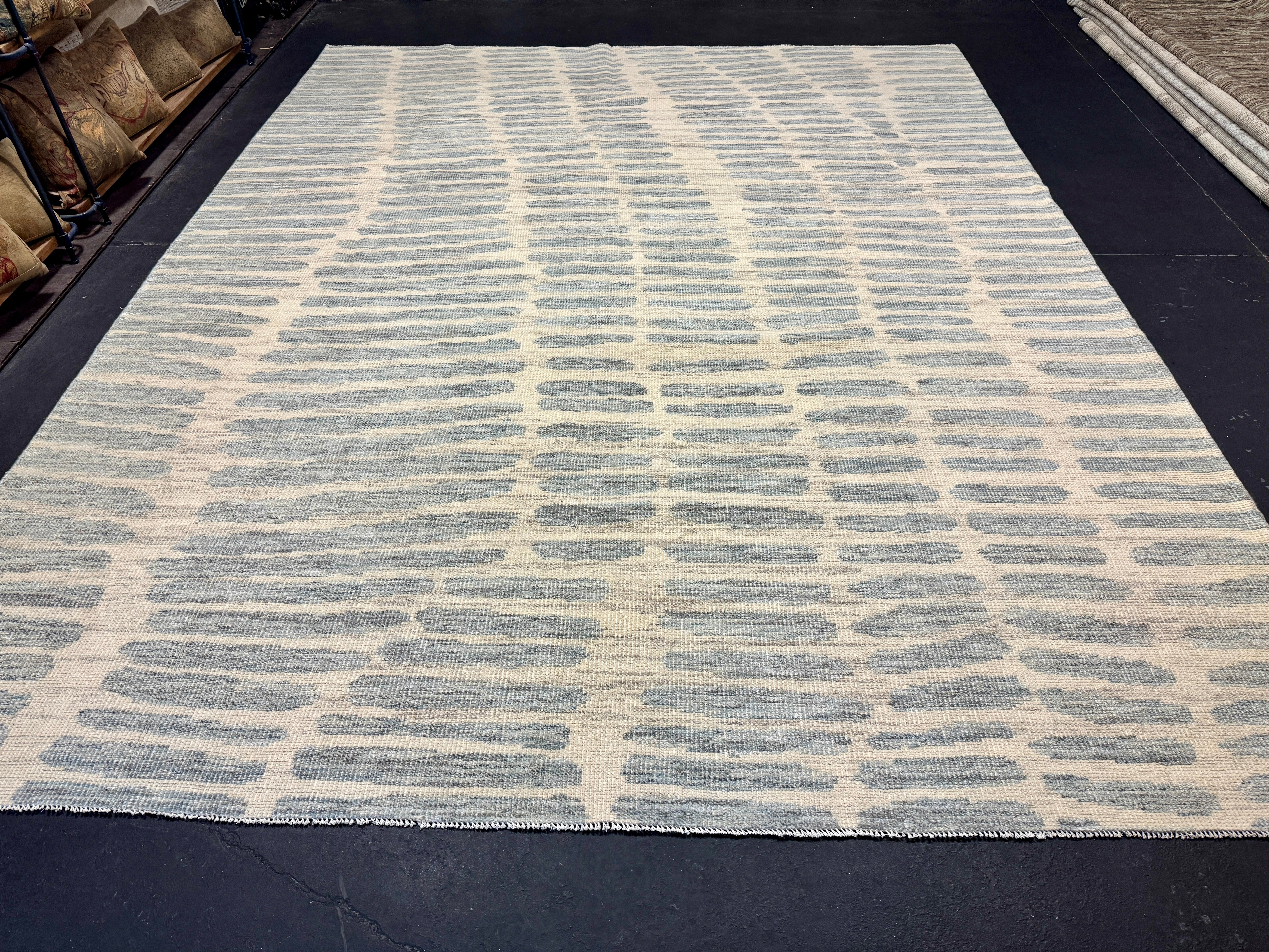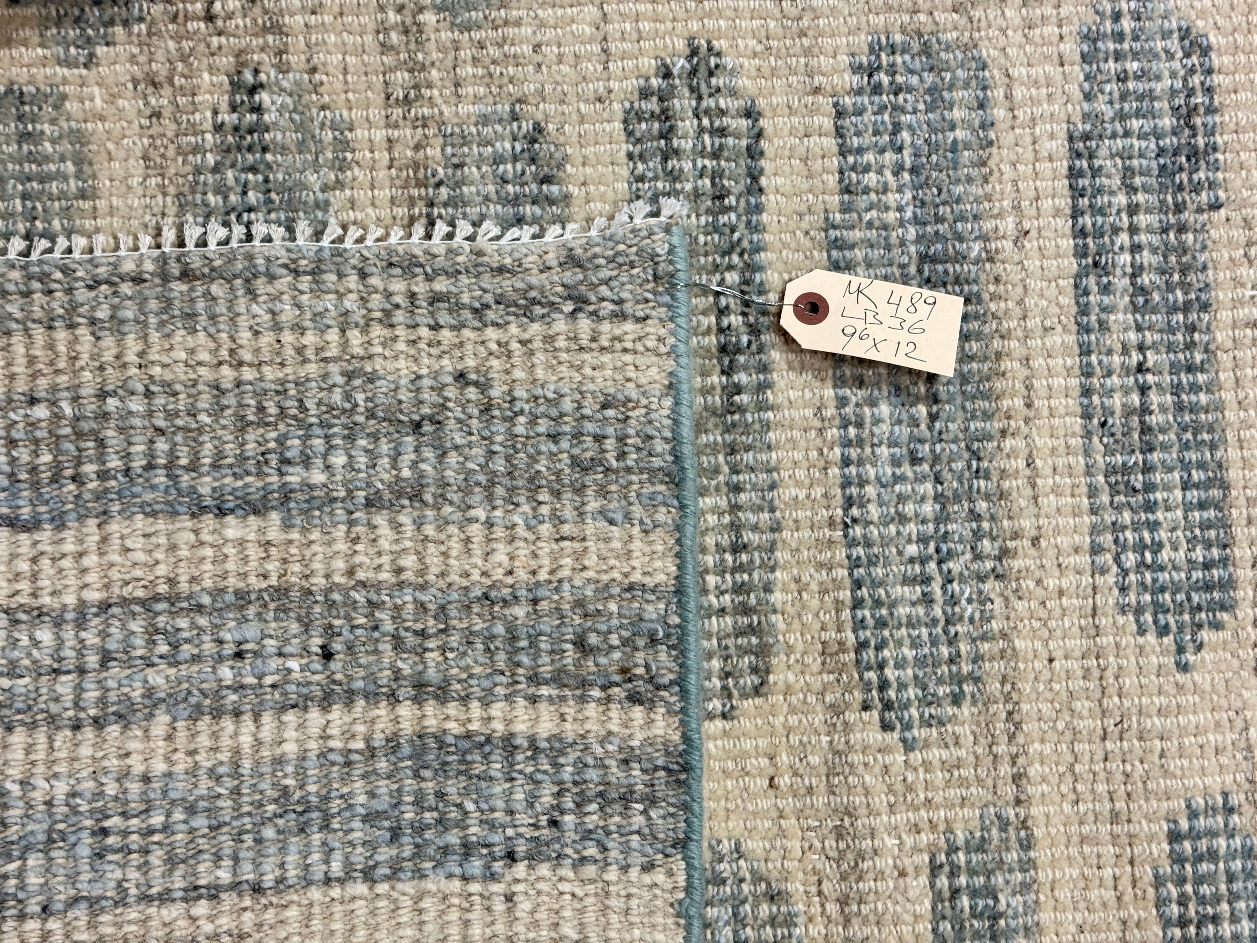 9’6 x 12’ Moroccan Style Rug Pure Soft Organic Wool Blue, Beige & Gray MK489