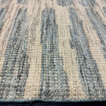 The colors in this piece are natural undyed beige wool and blue in various shades of denim with various shades of gray woven throughout.