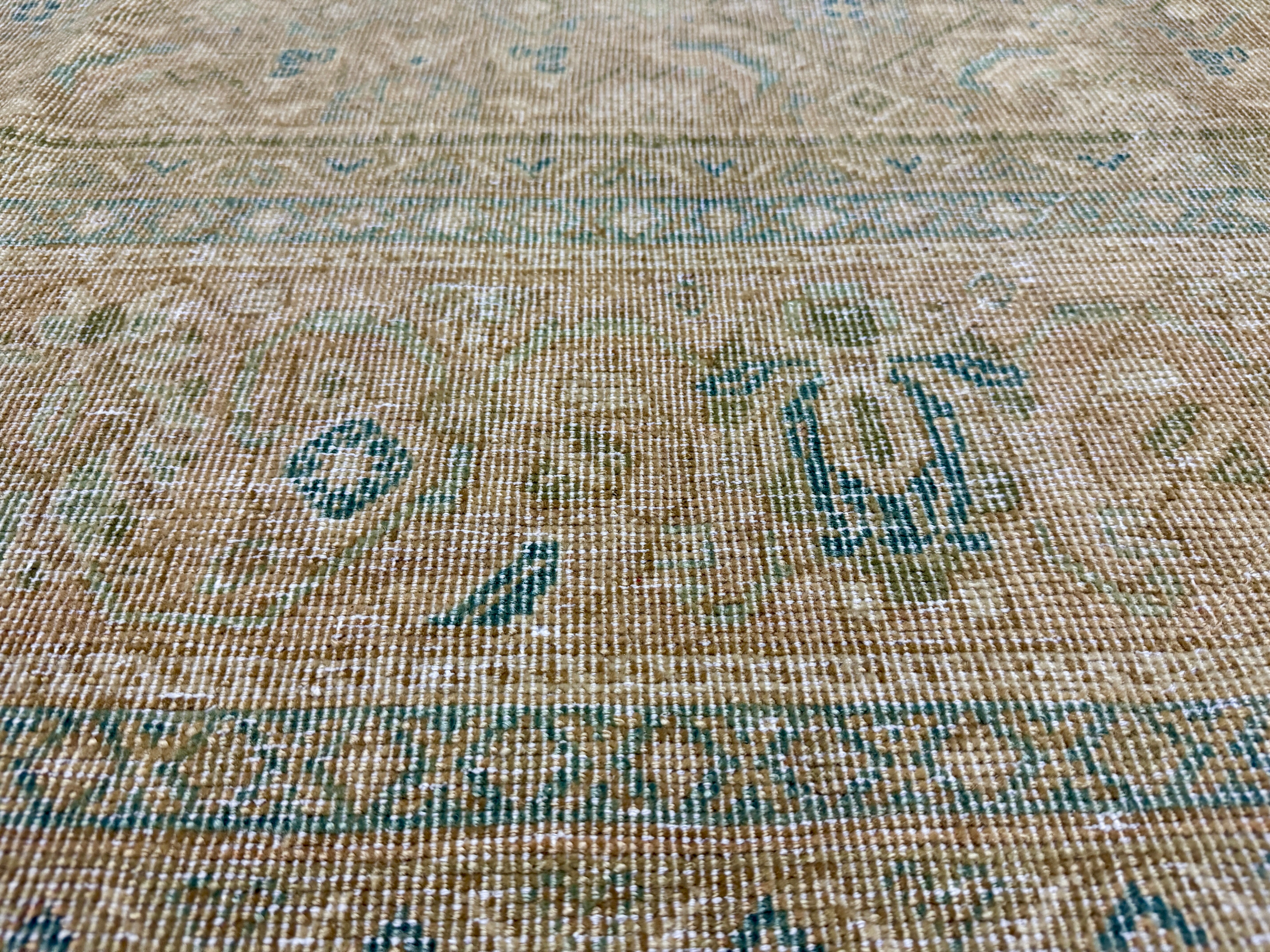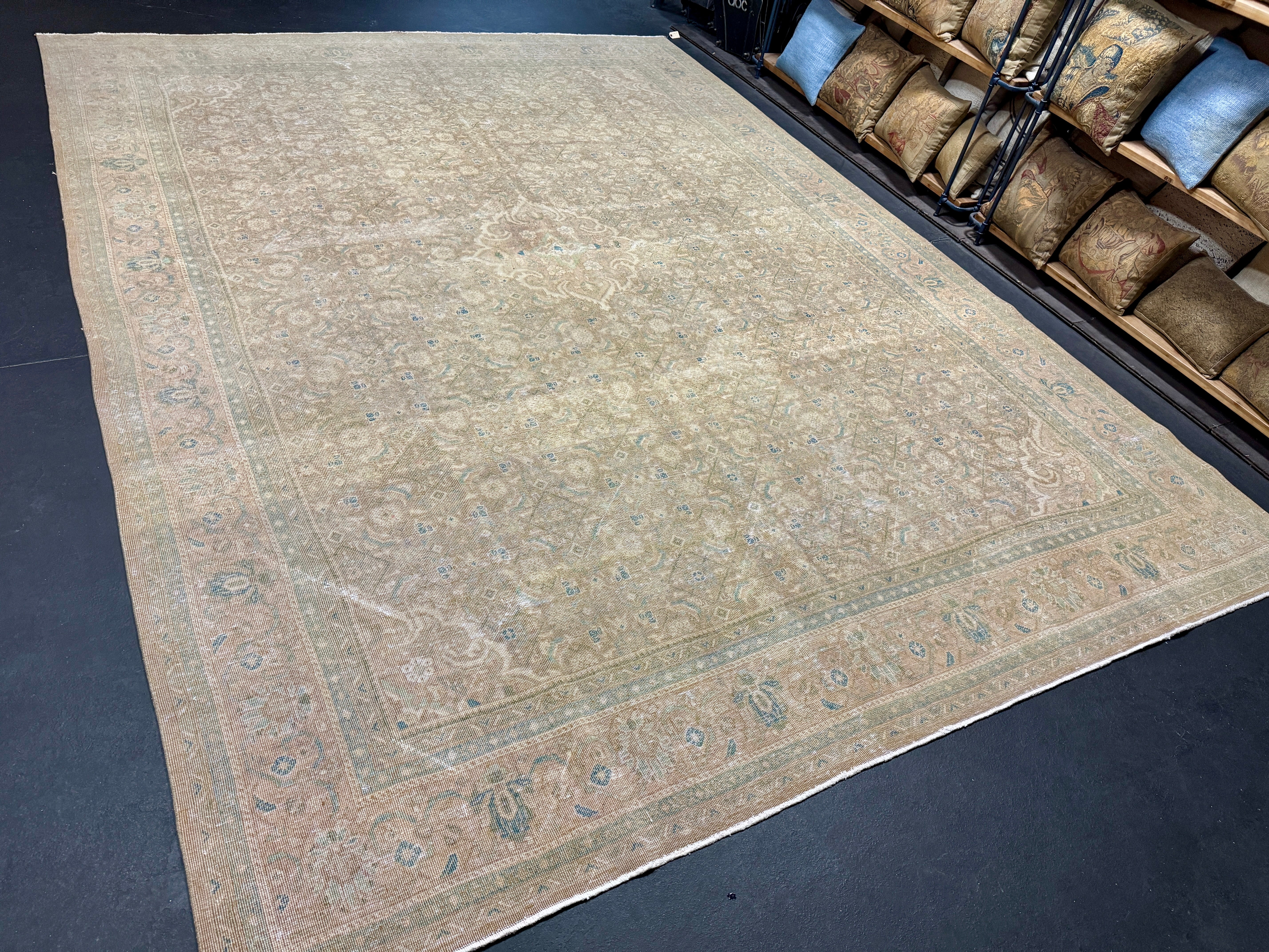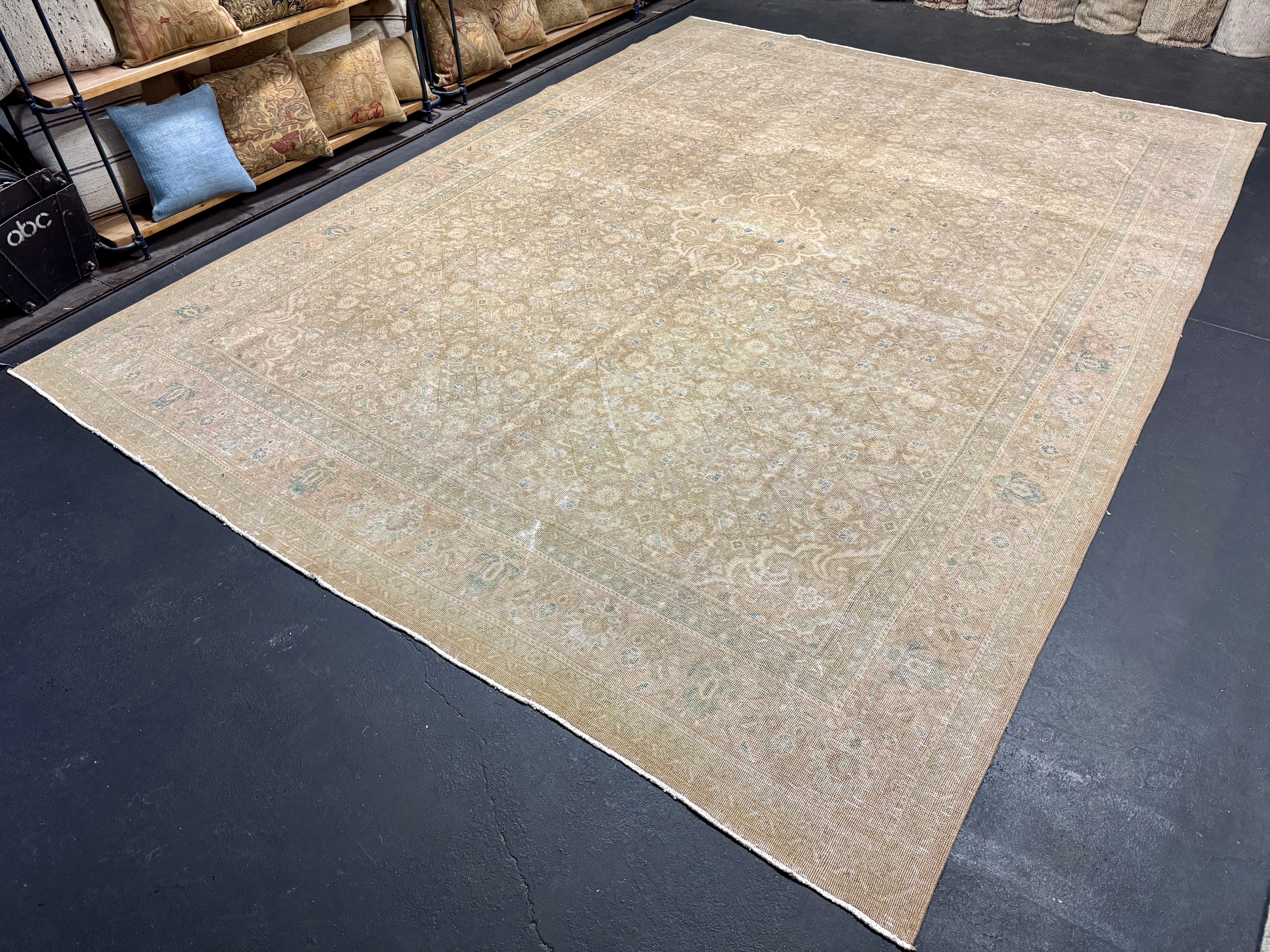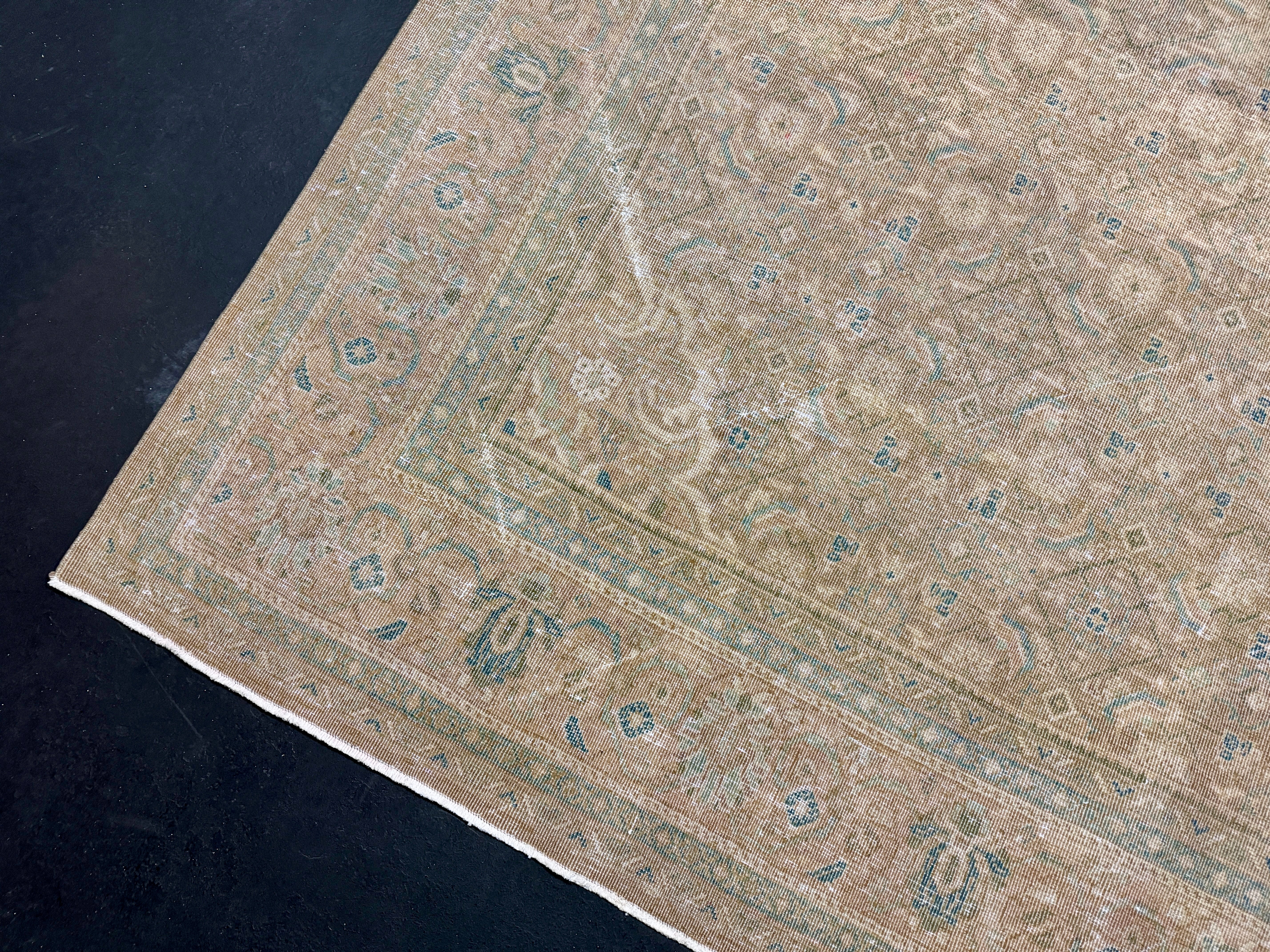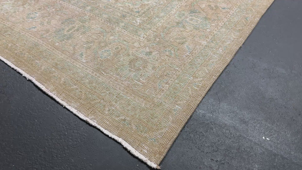 9’7 x 12’11 Classic Vintage Rug Muted Camel Beige, Sand Beige, Sea Foam Blue & Green 5757
