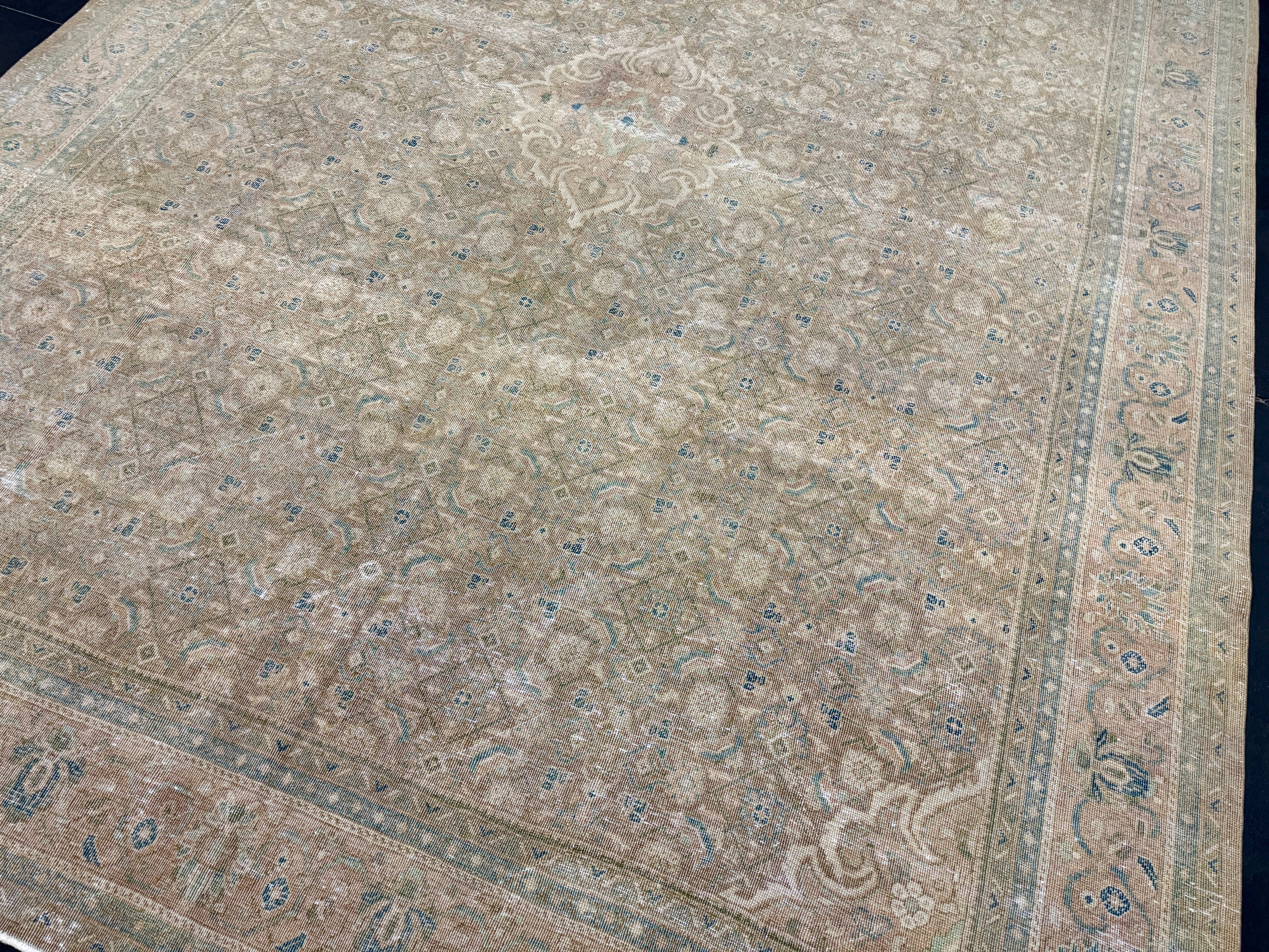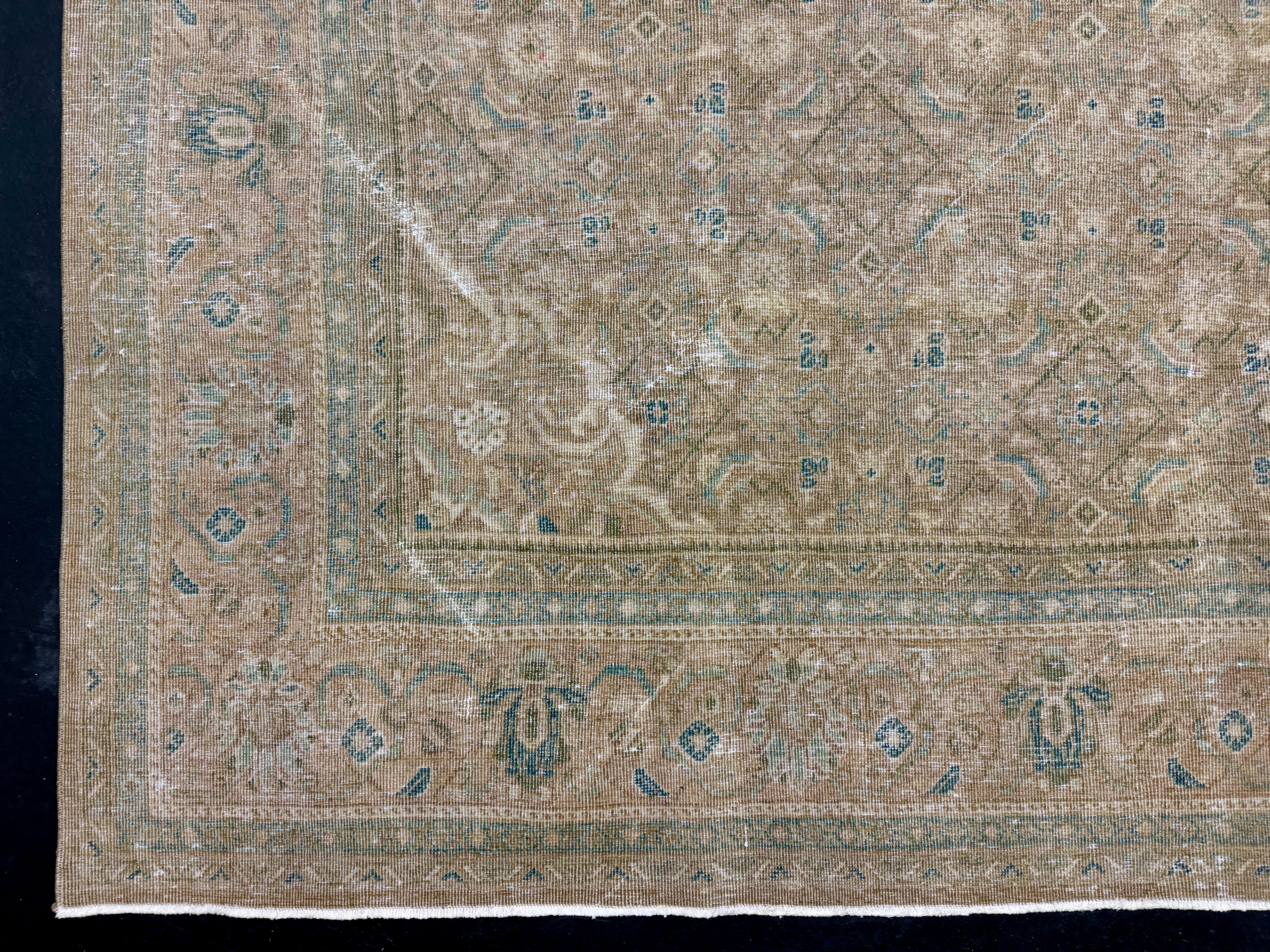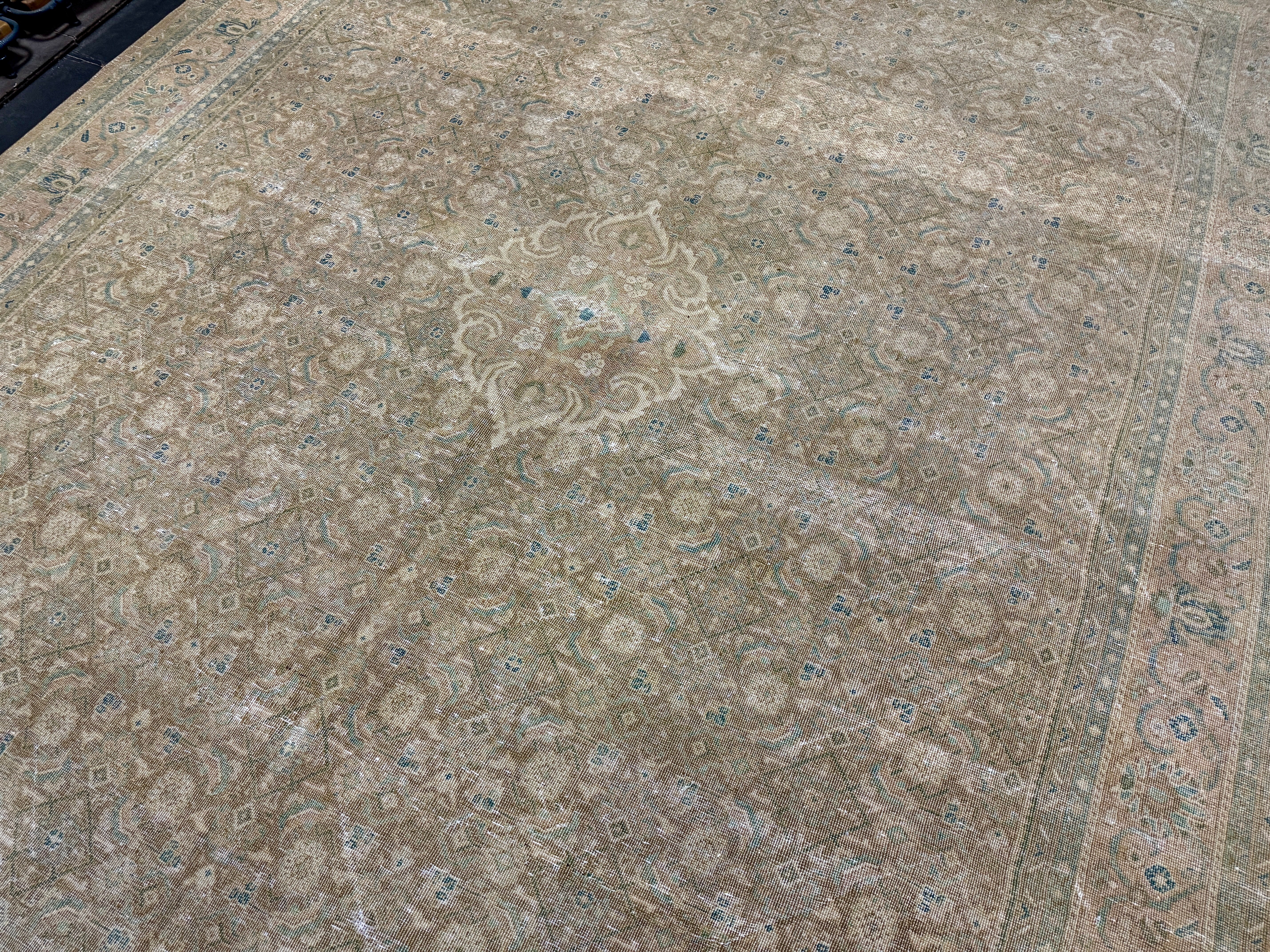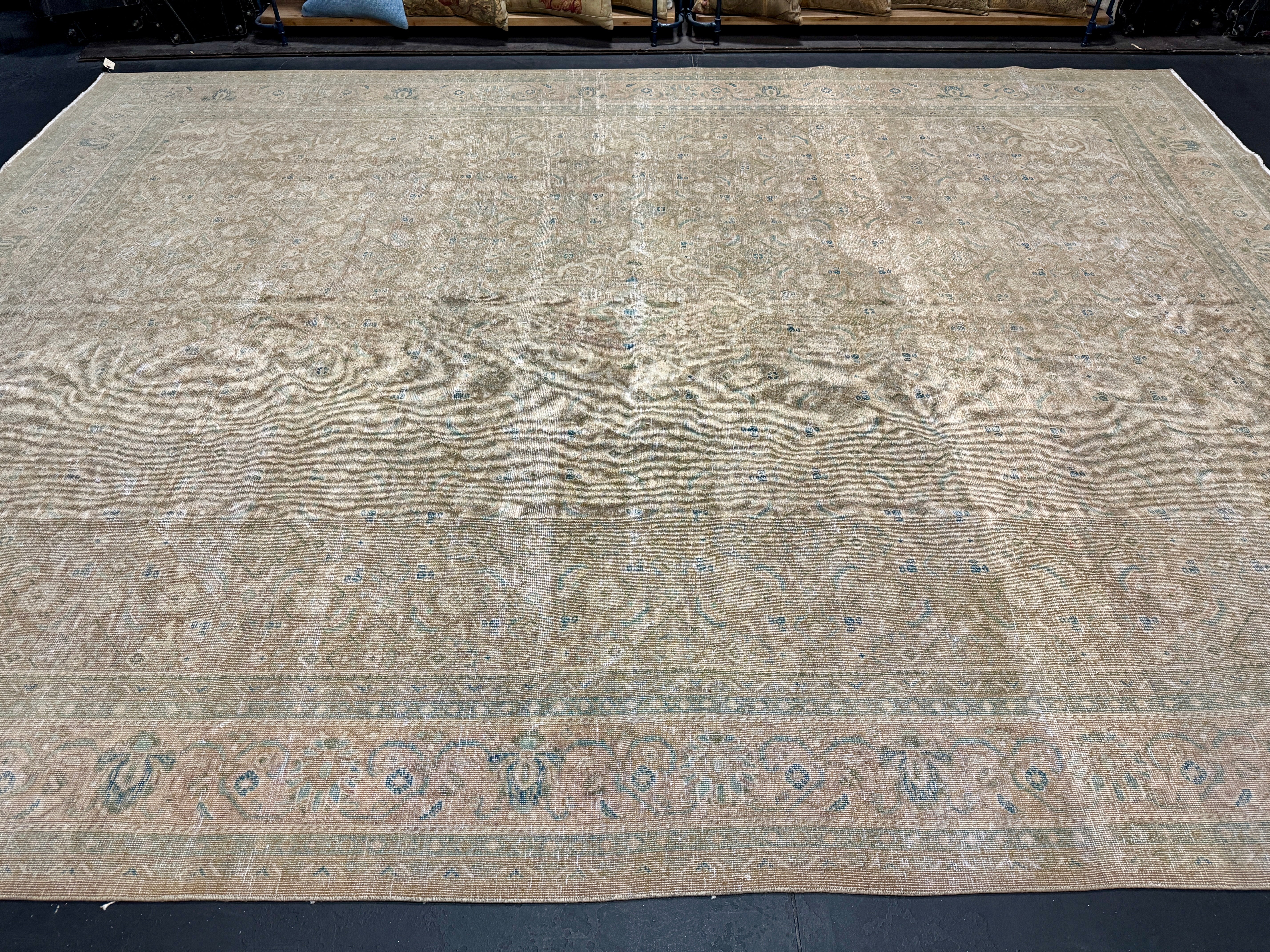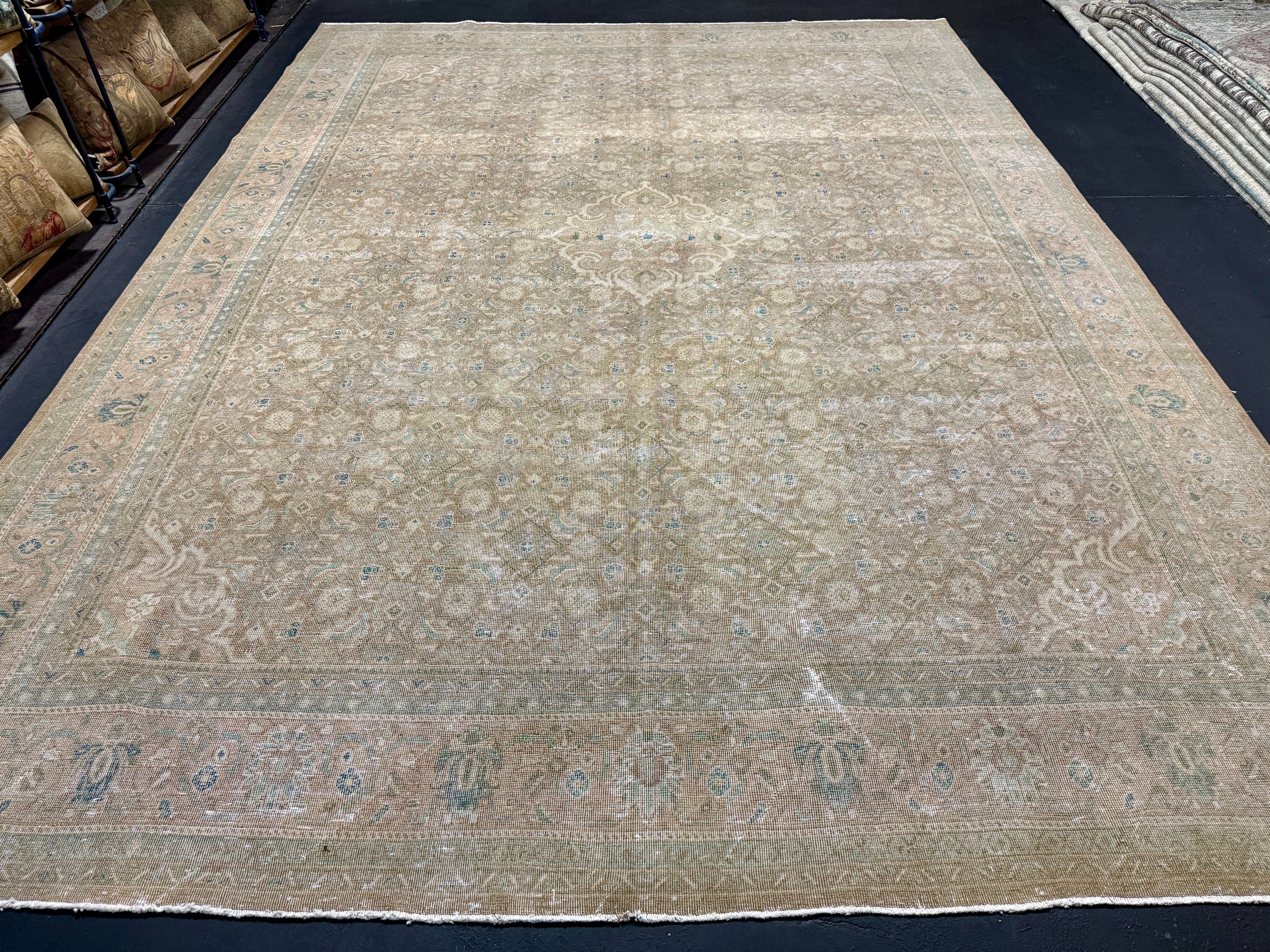 9’7 x 12’11 Classic Vintage Rug Muted Camel Beige, Sand Beige, Sea Foam Blue & Green 5757