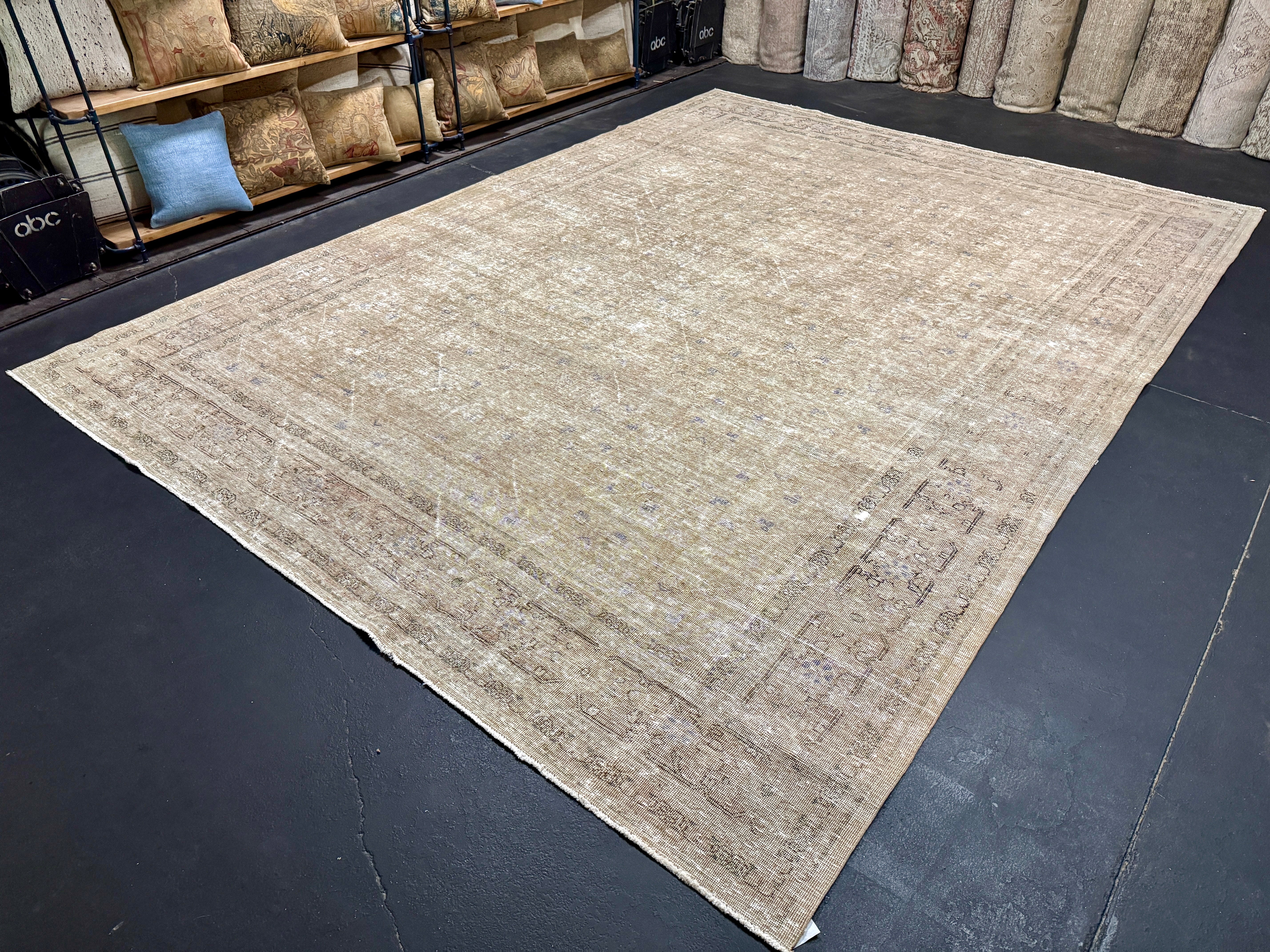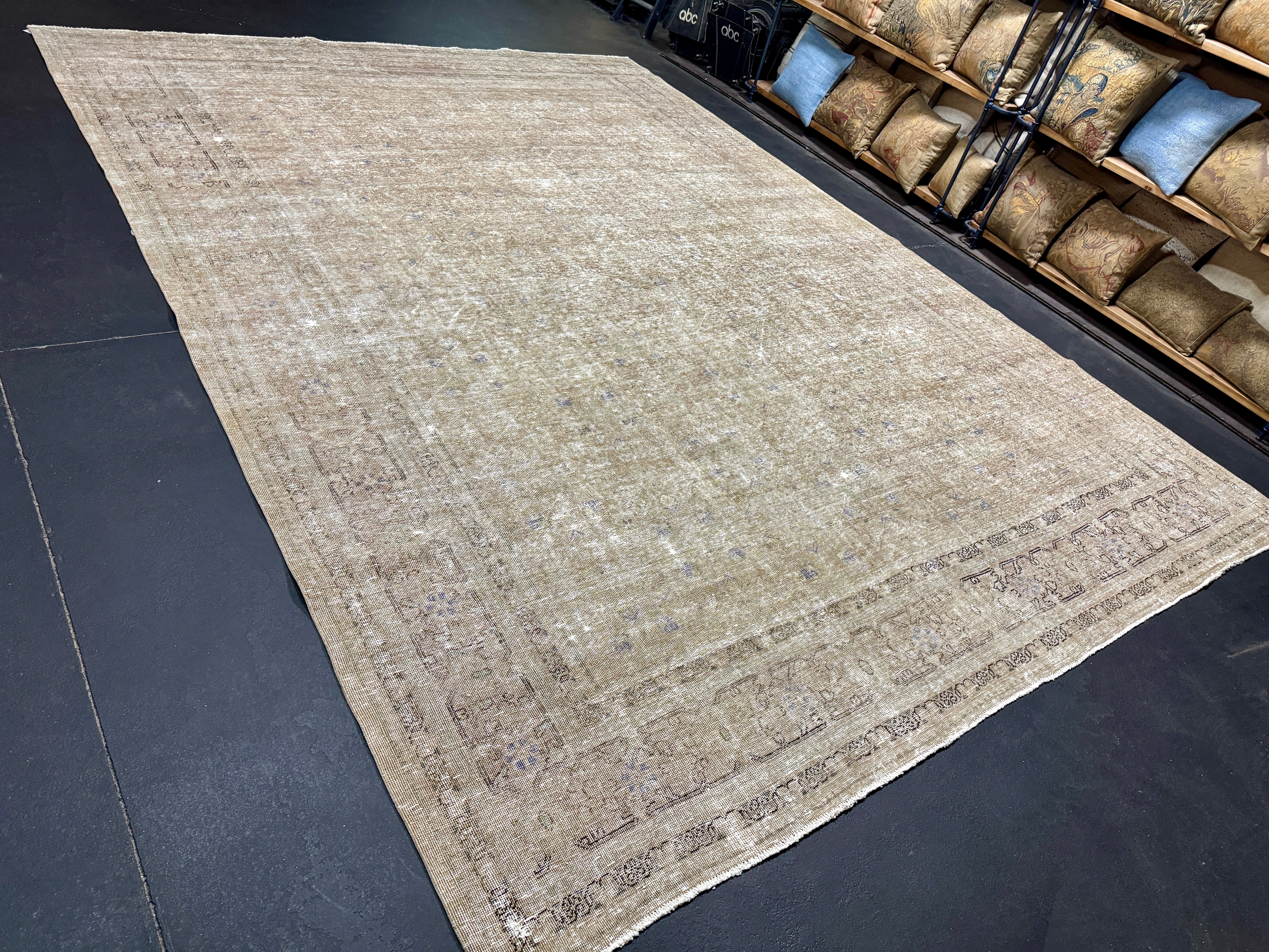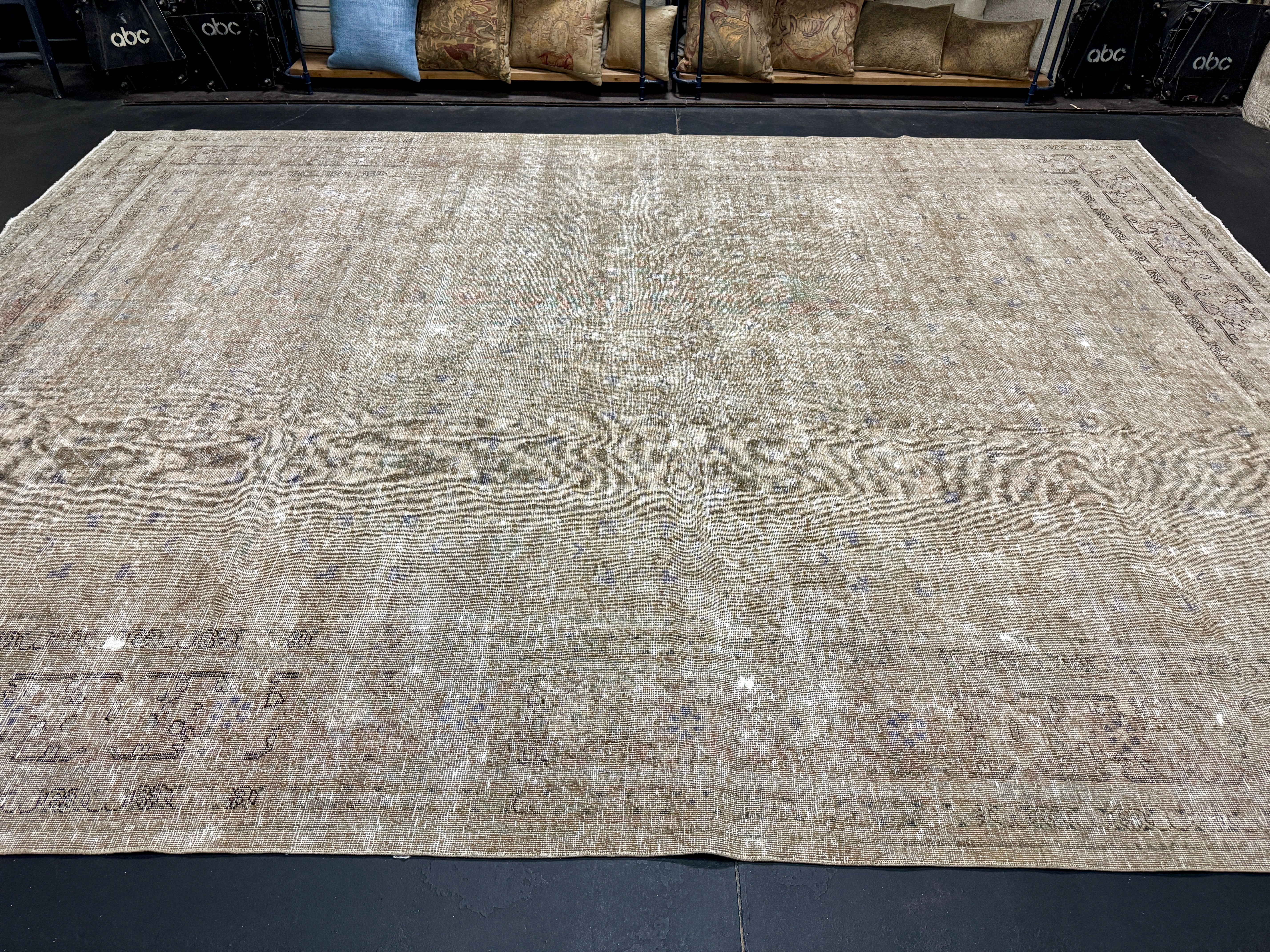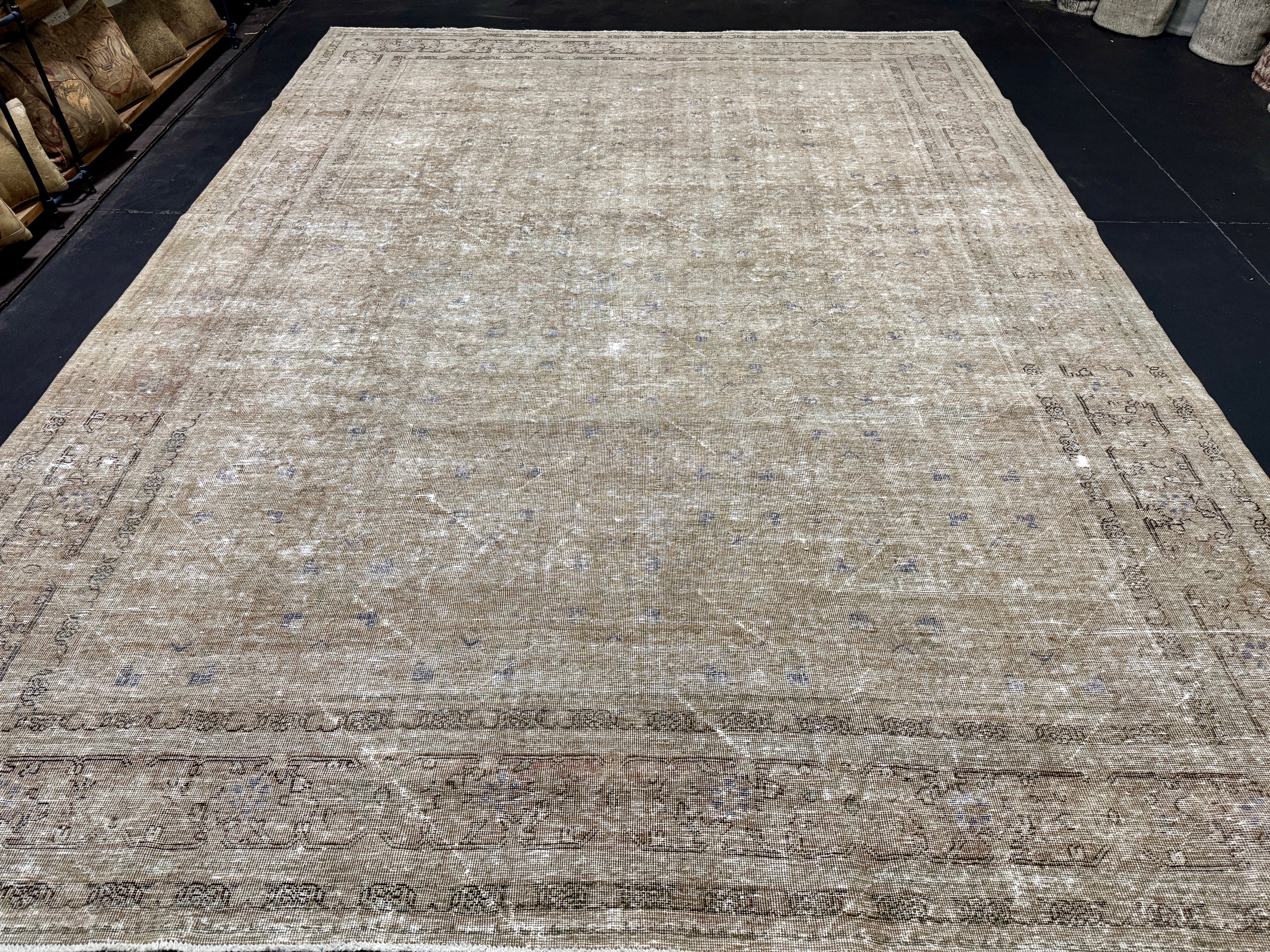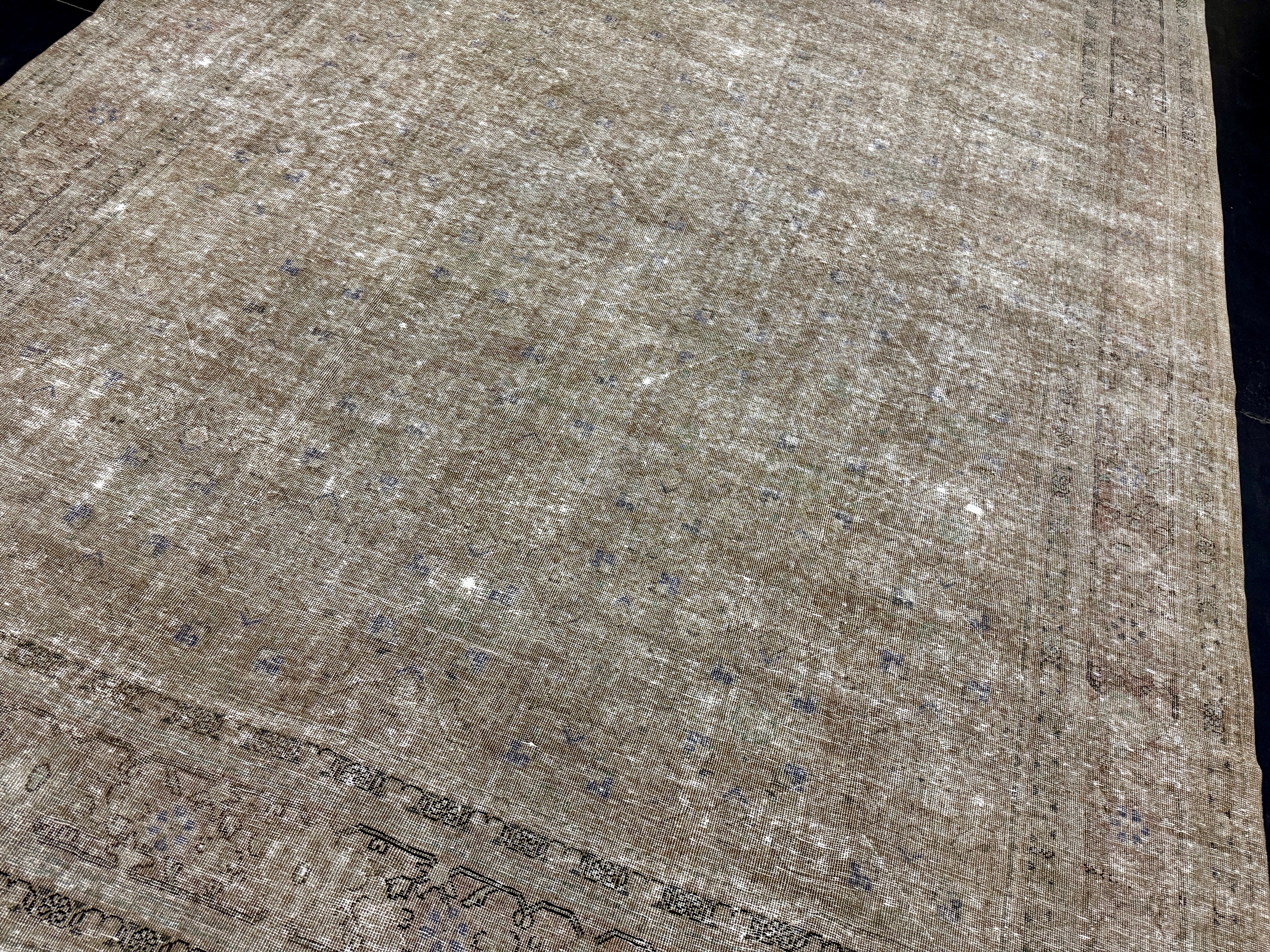 9’7 x 13’5 Classic Vintage Rug Muted Gray-Beige, Aubergine, Green & Terra Cotta 5580