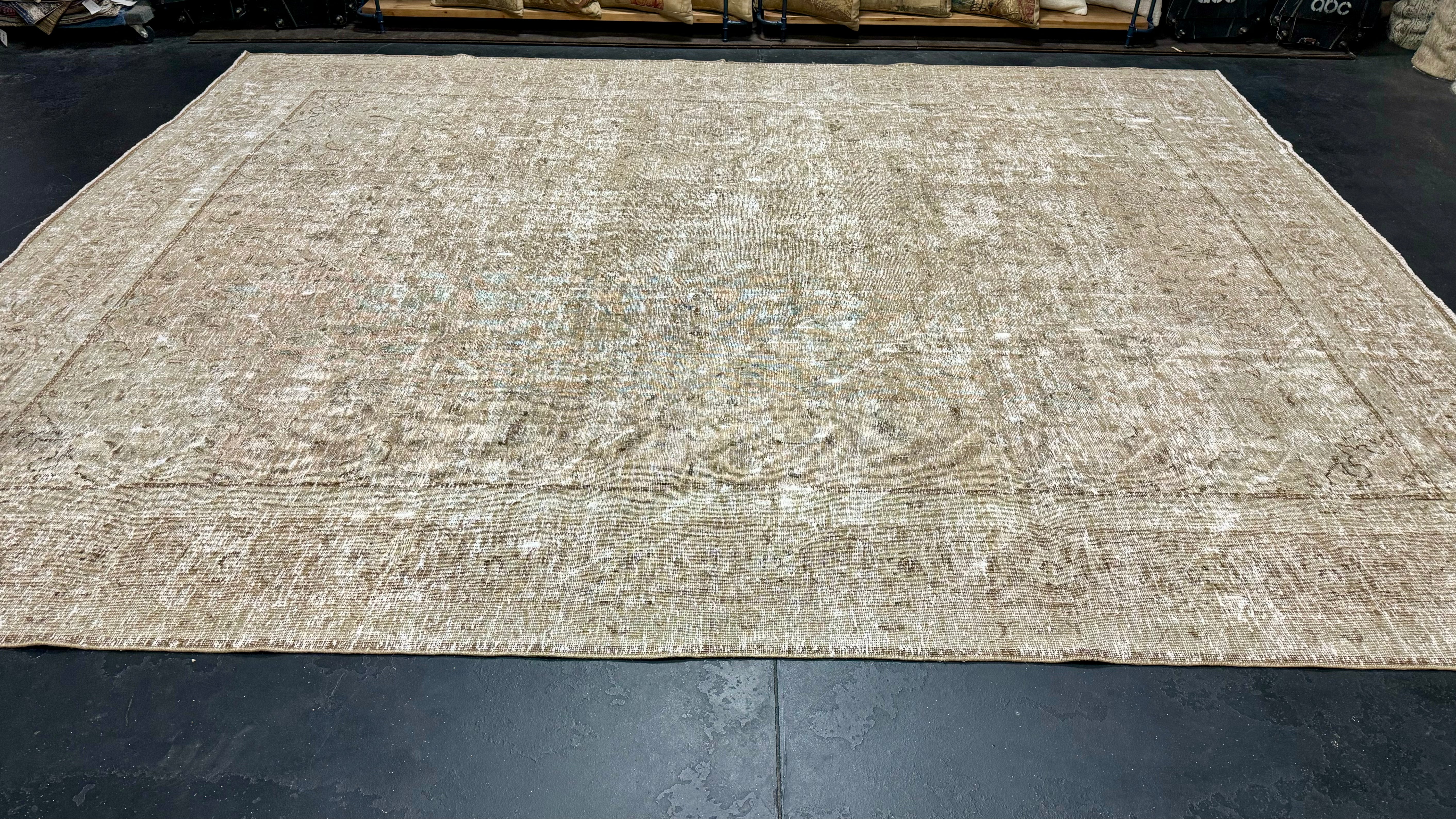 9’8 x 12’7 Classic Vintage Rug Muted Greige , Light Brown & Sage Green '5453
