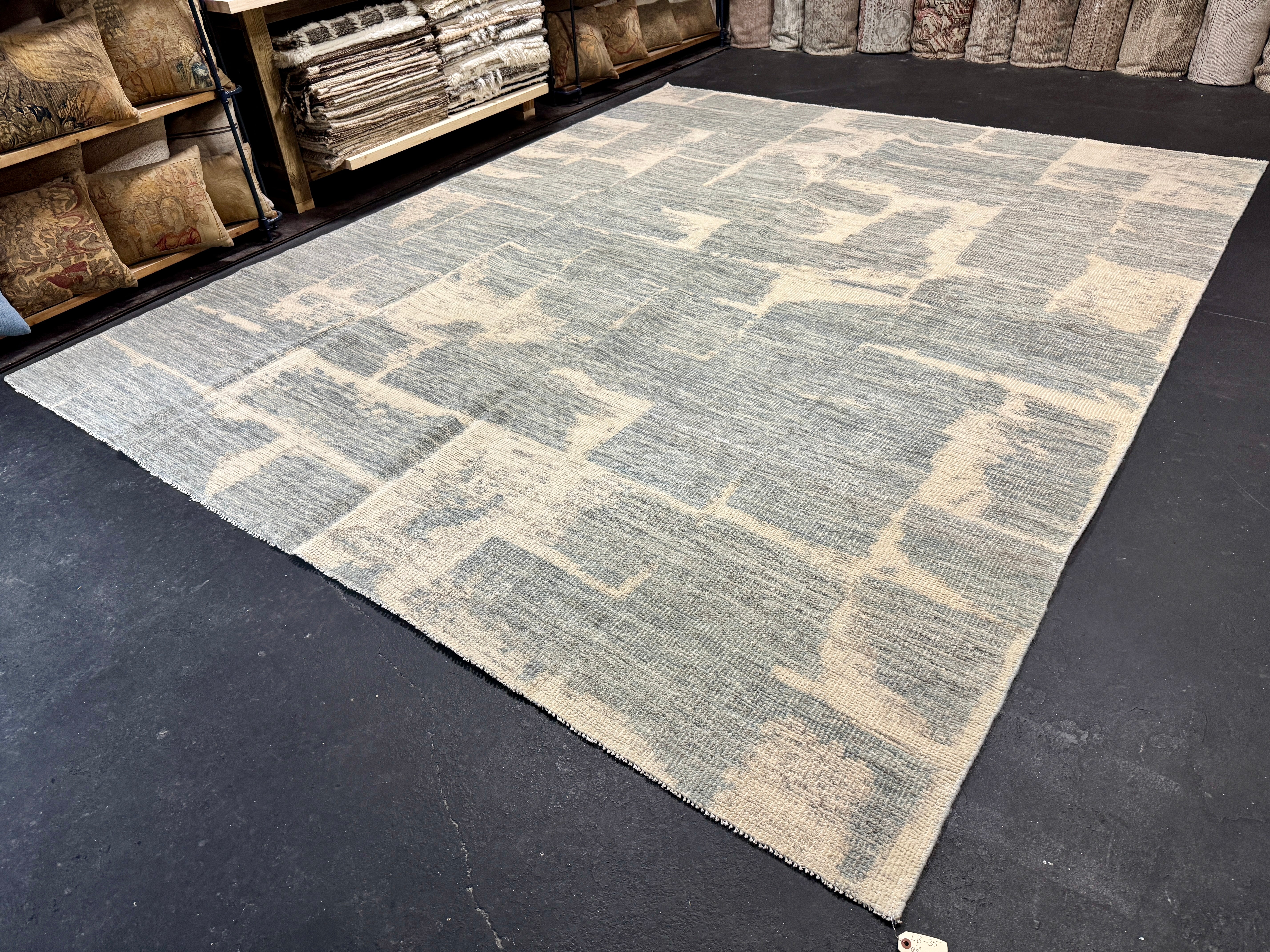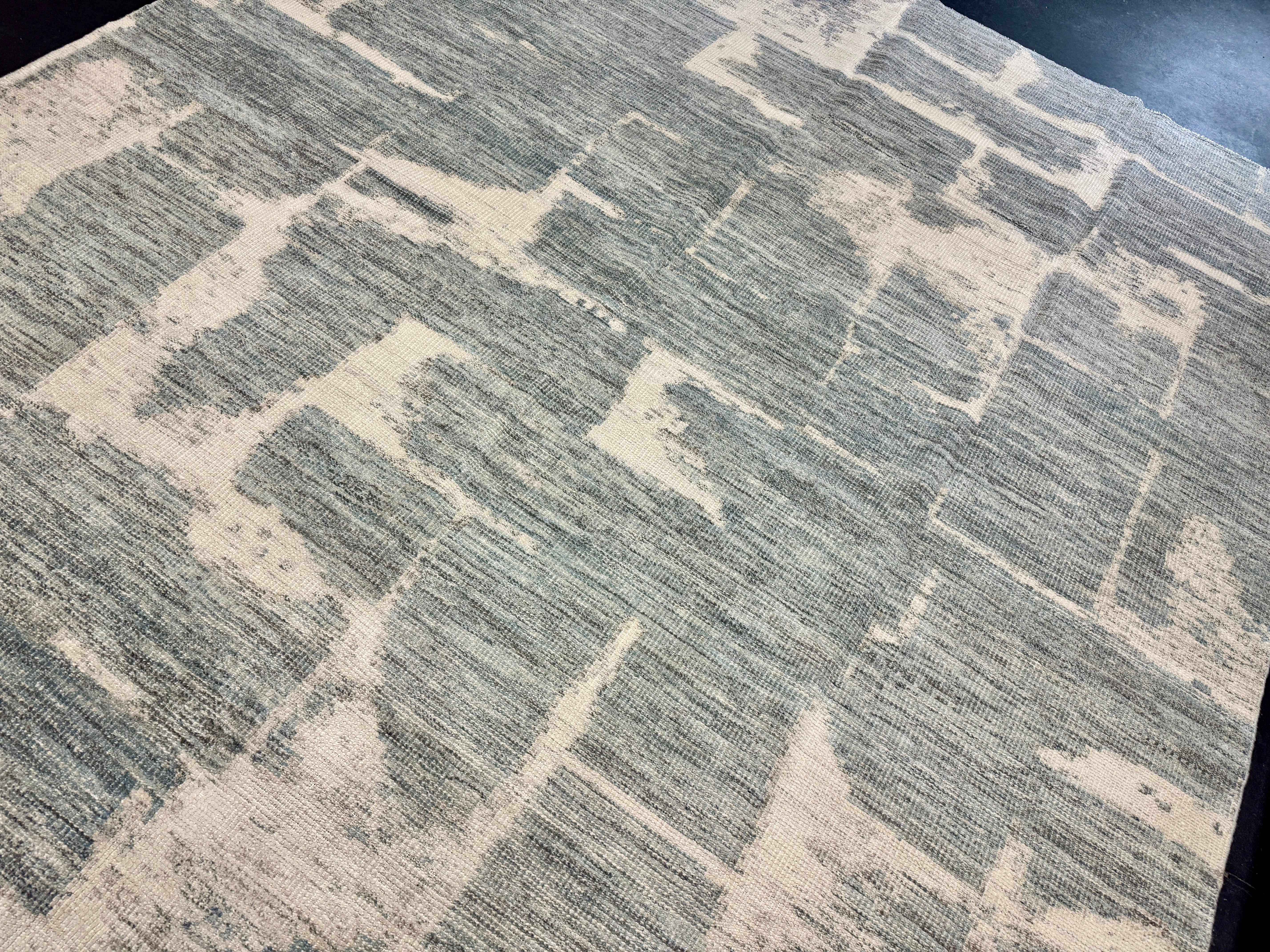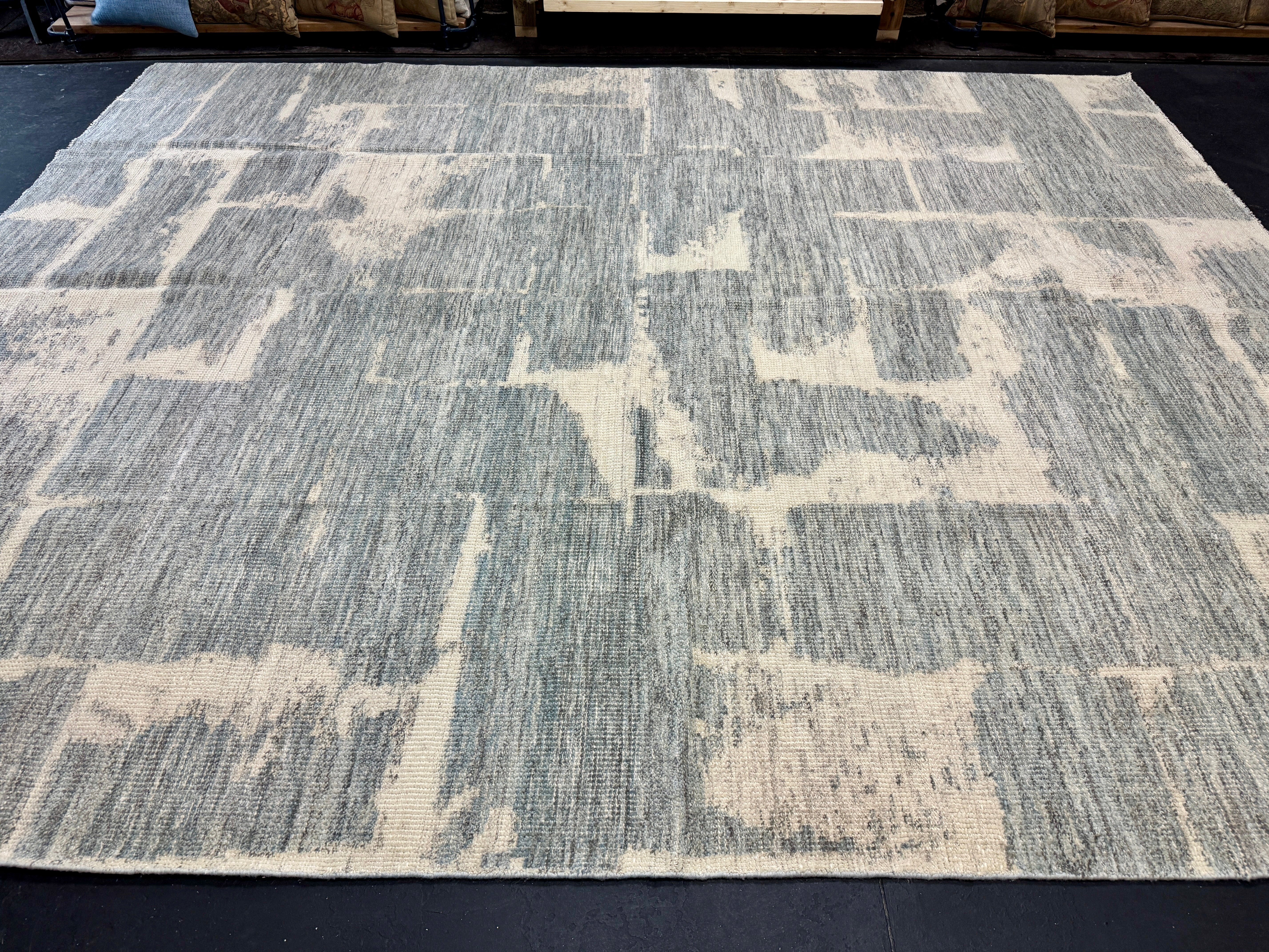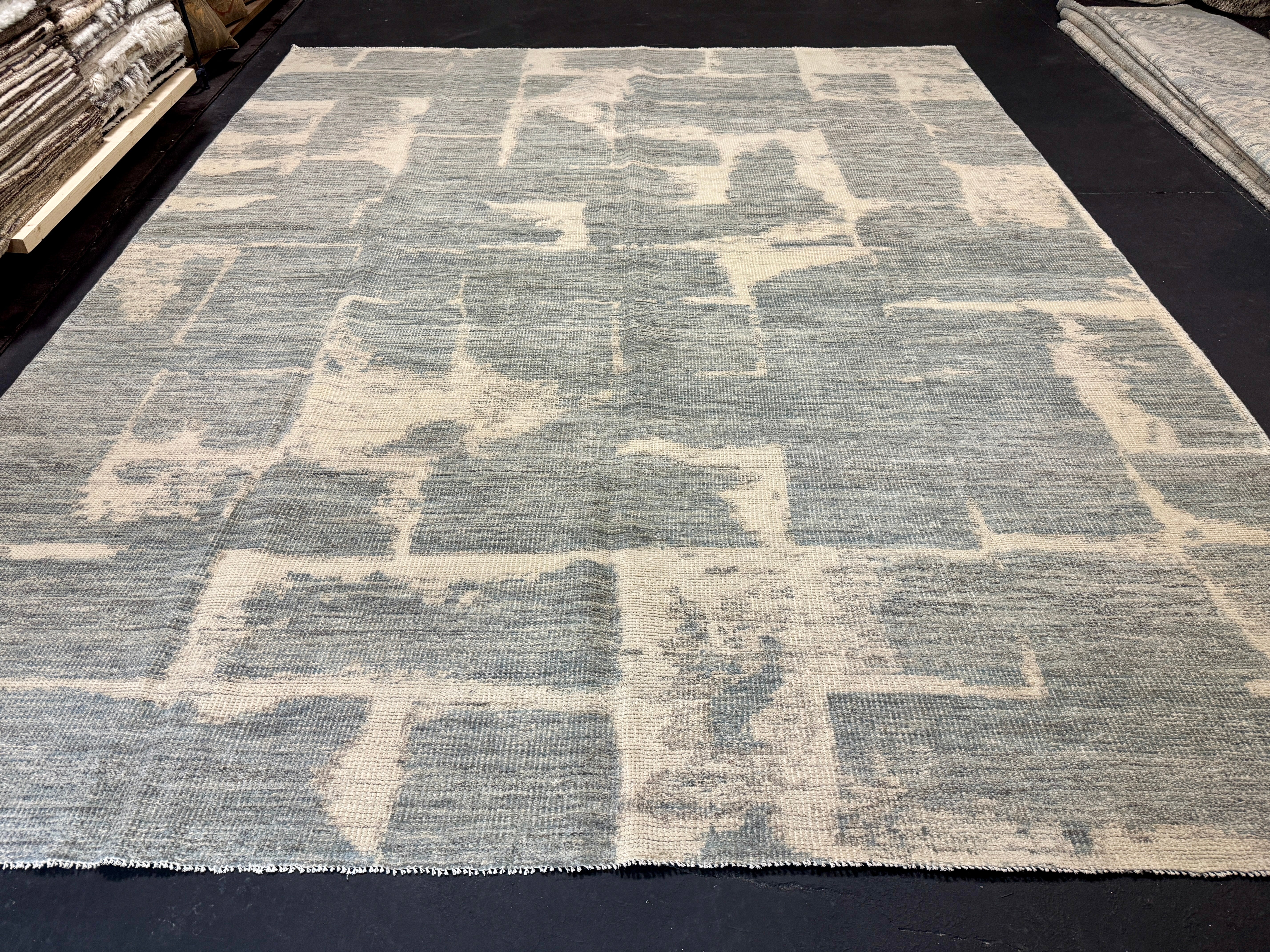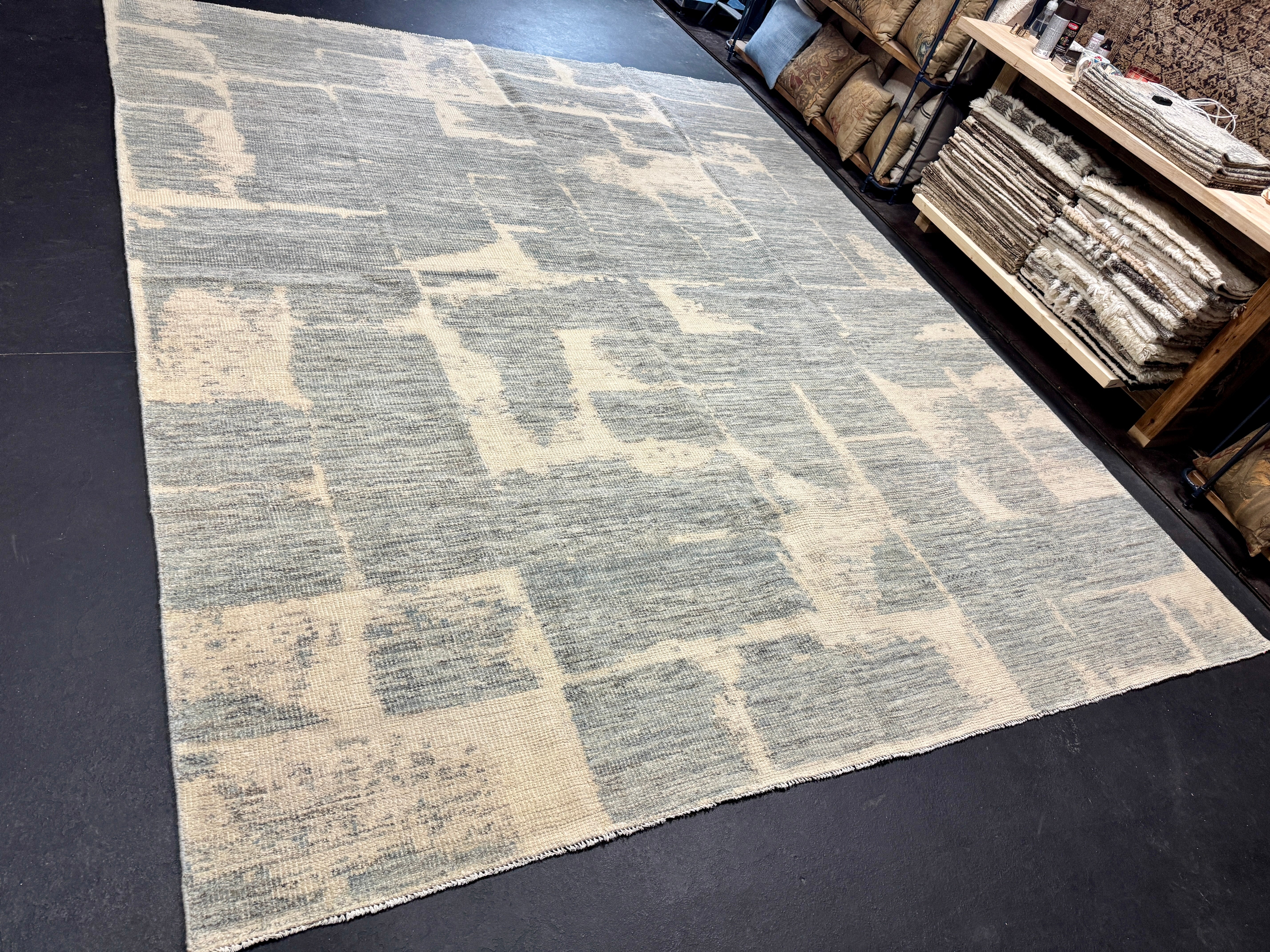 9’9 x 12’ Moroccan Style Rug Pure Soft Organic Wool Denim Blue & Creamy Ivory LB35