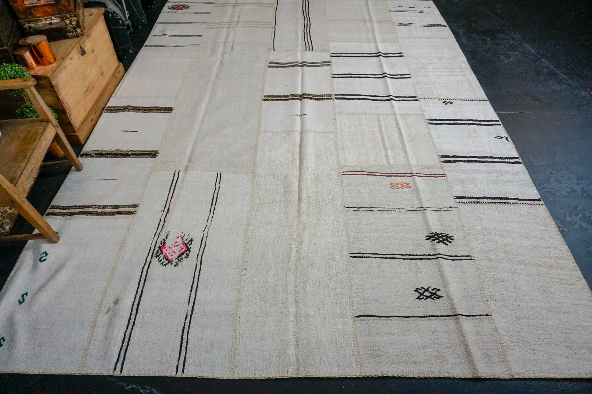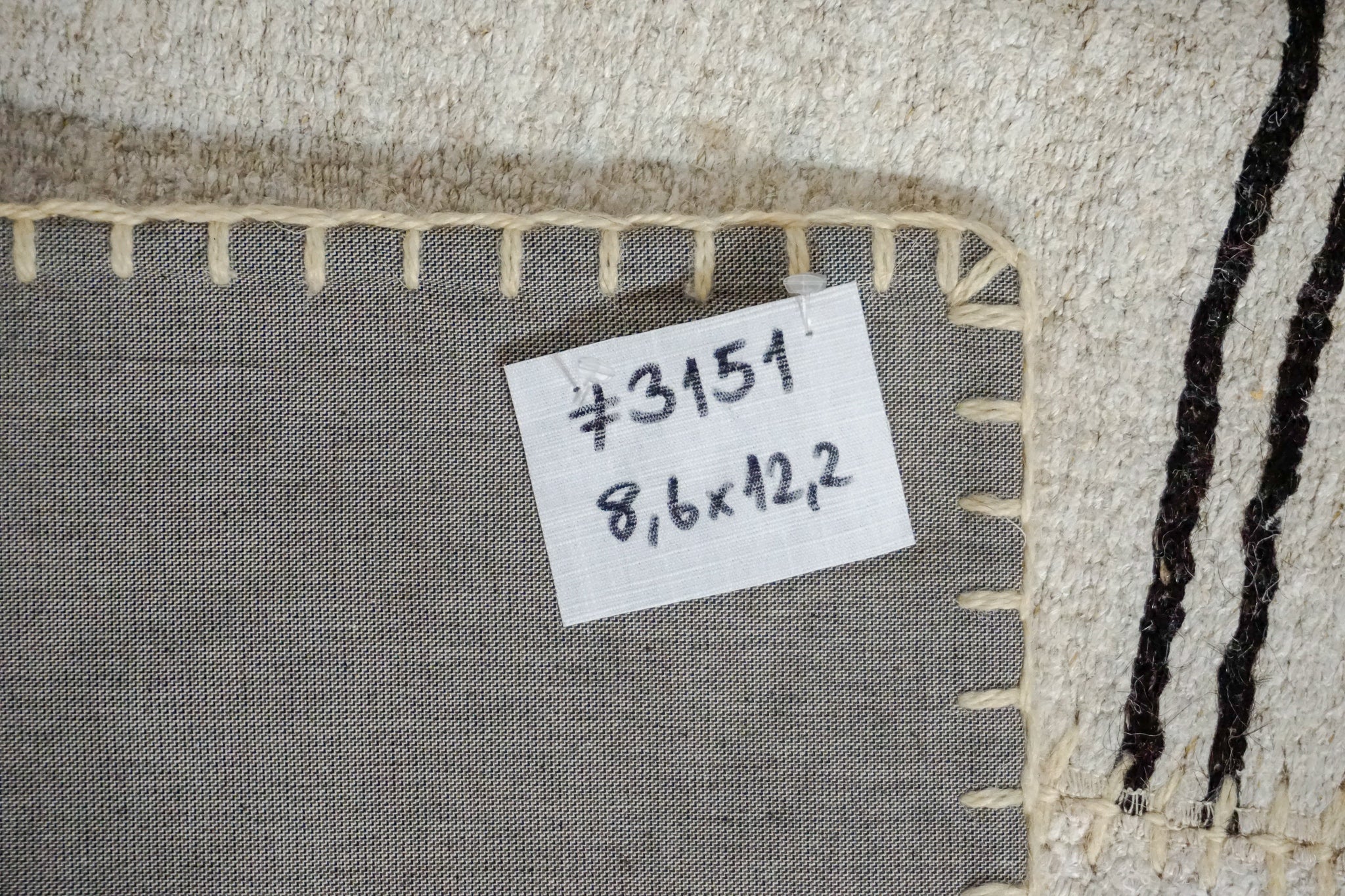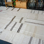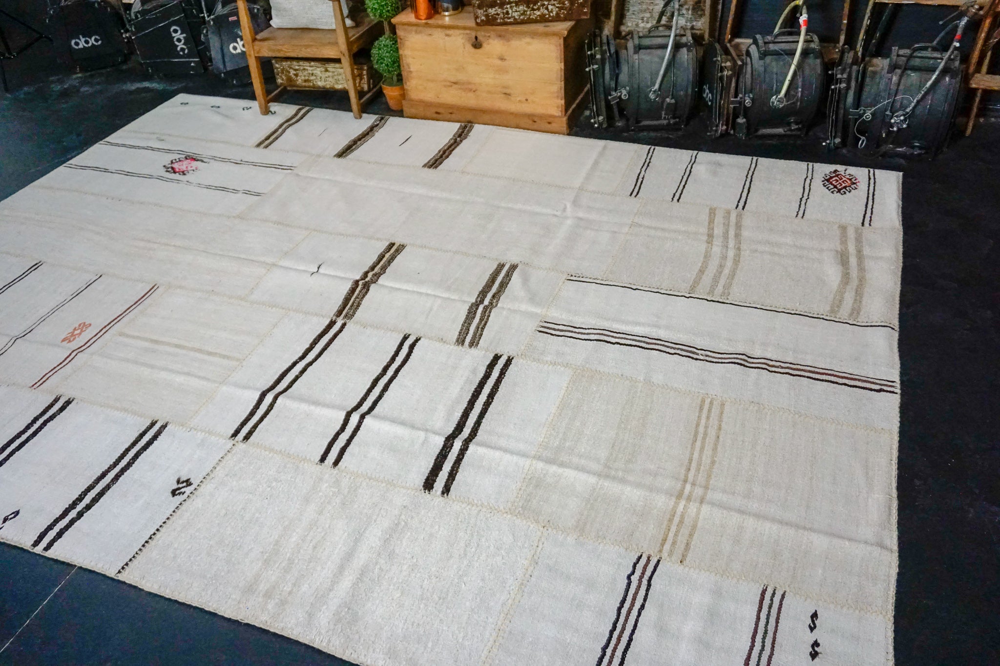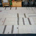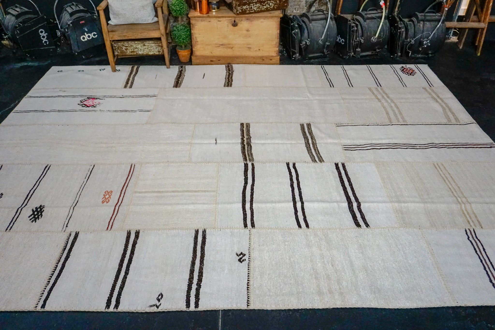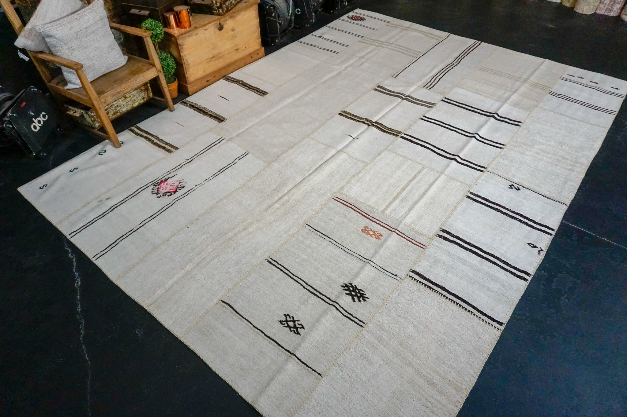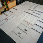 9’ x 12’ MCM Vintage Organic Hemp Rug Off White and Brown Collage Kilim '3151