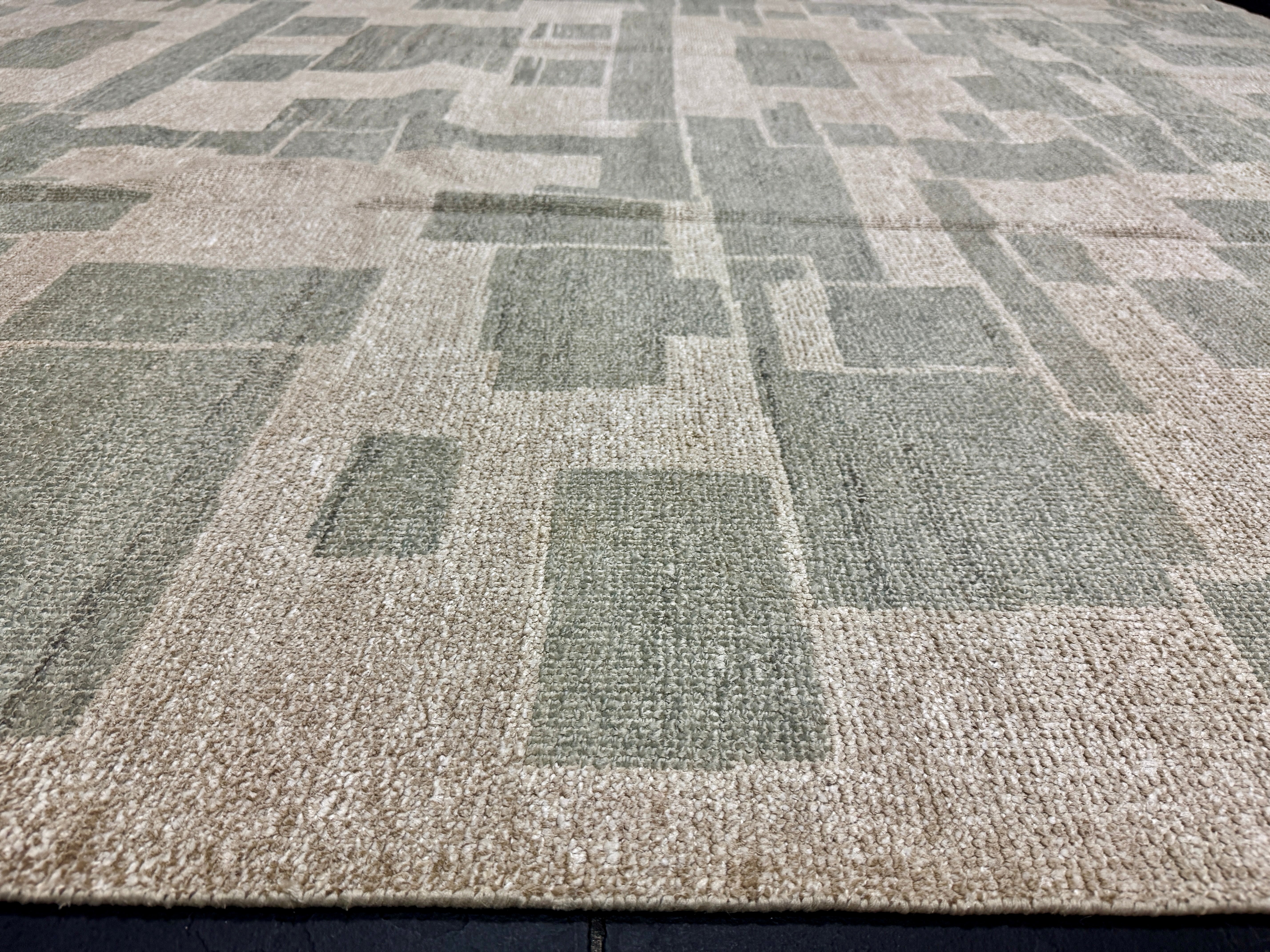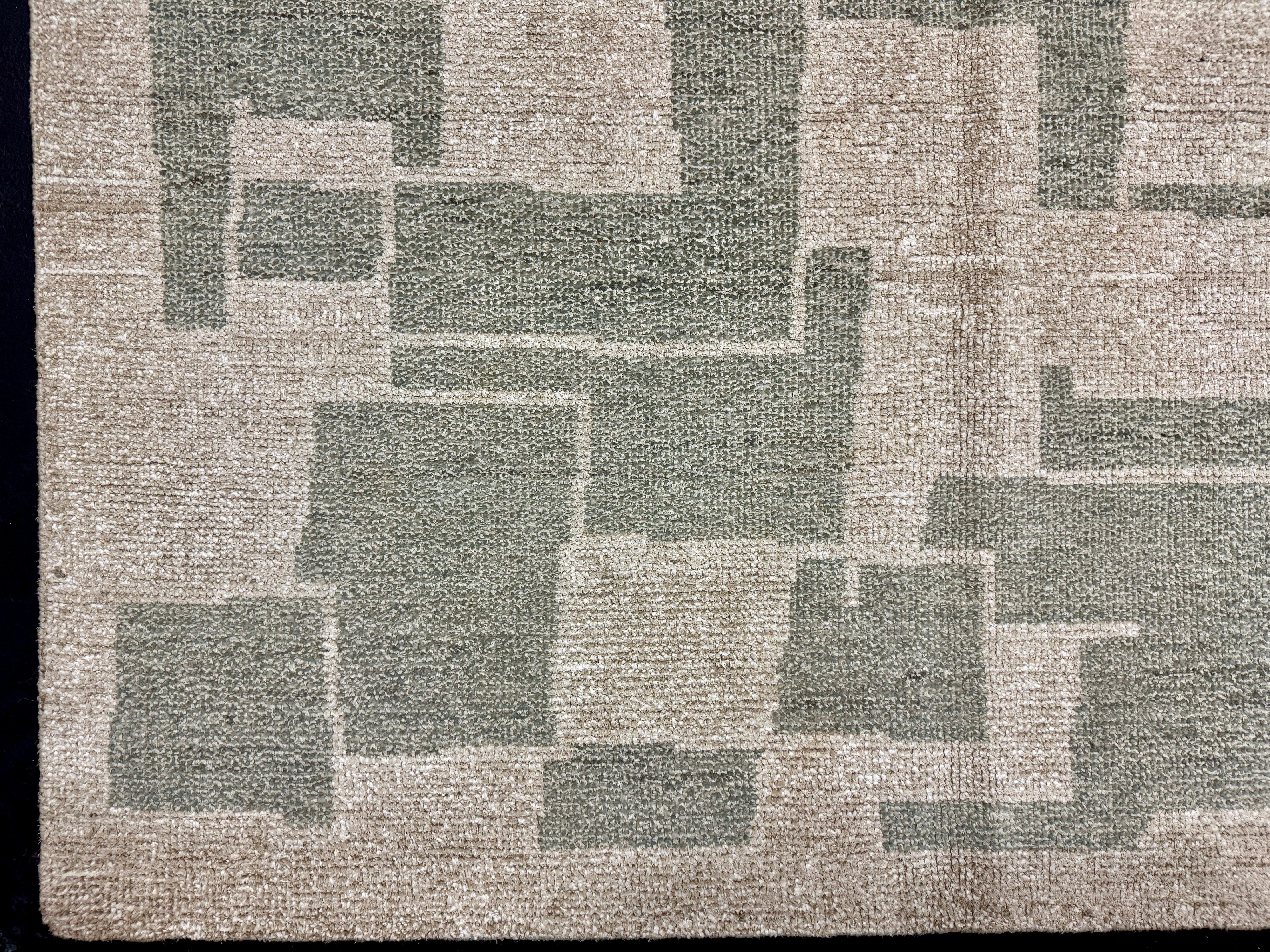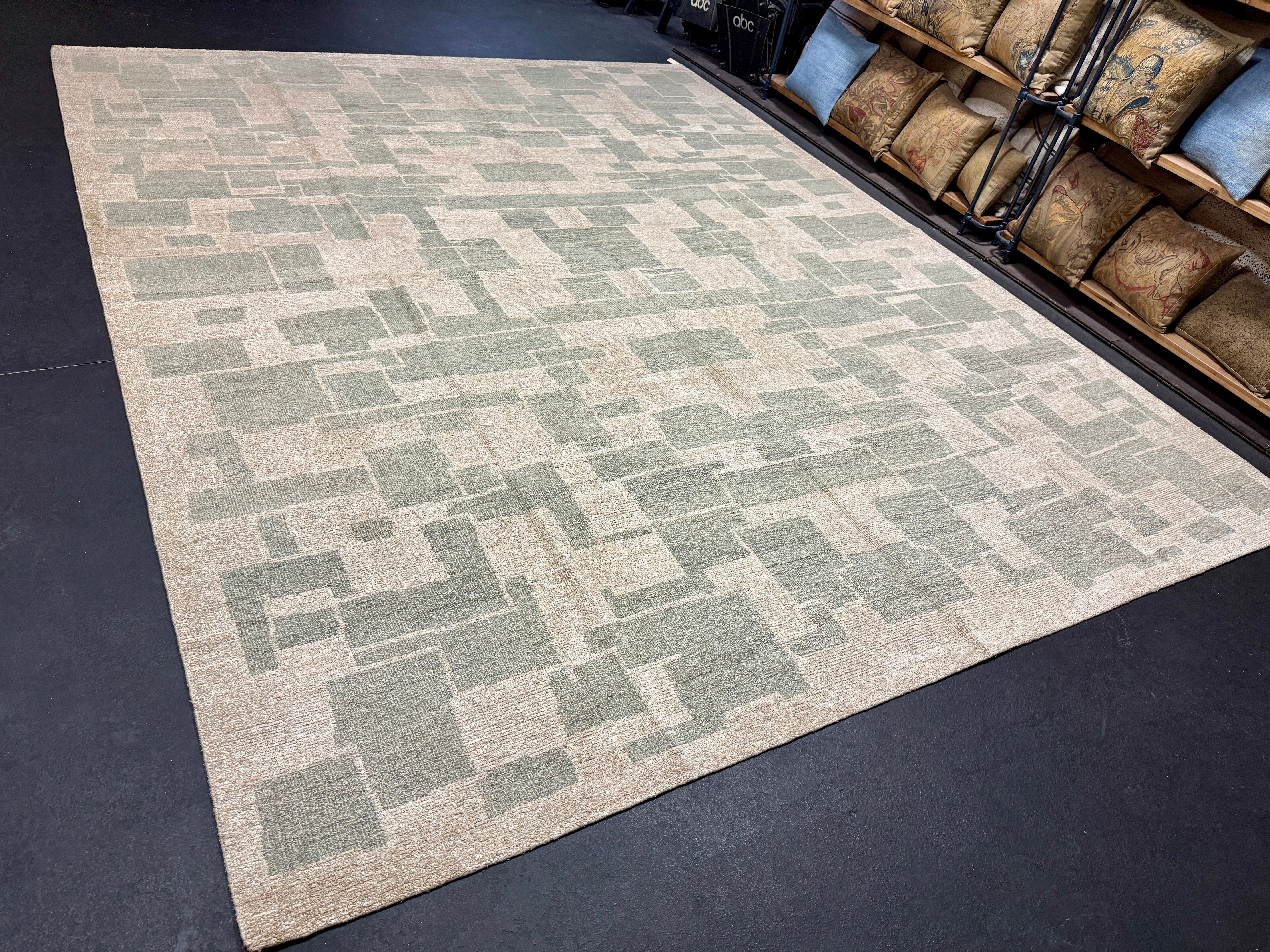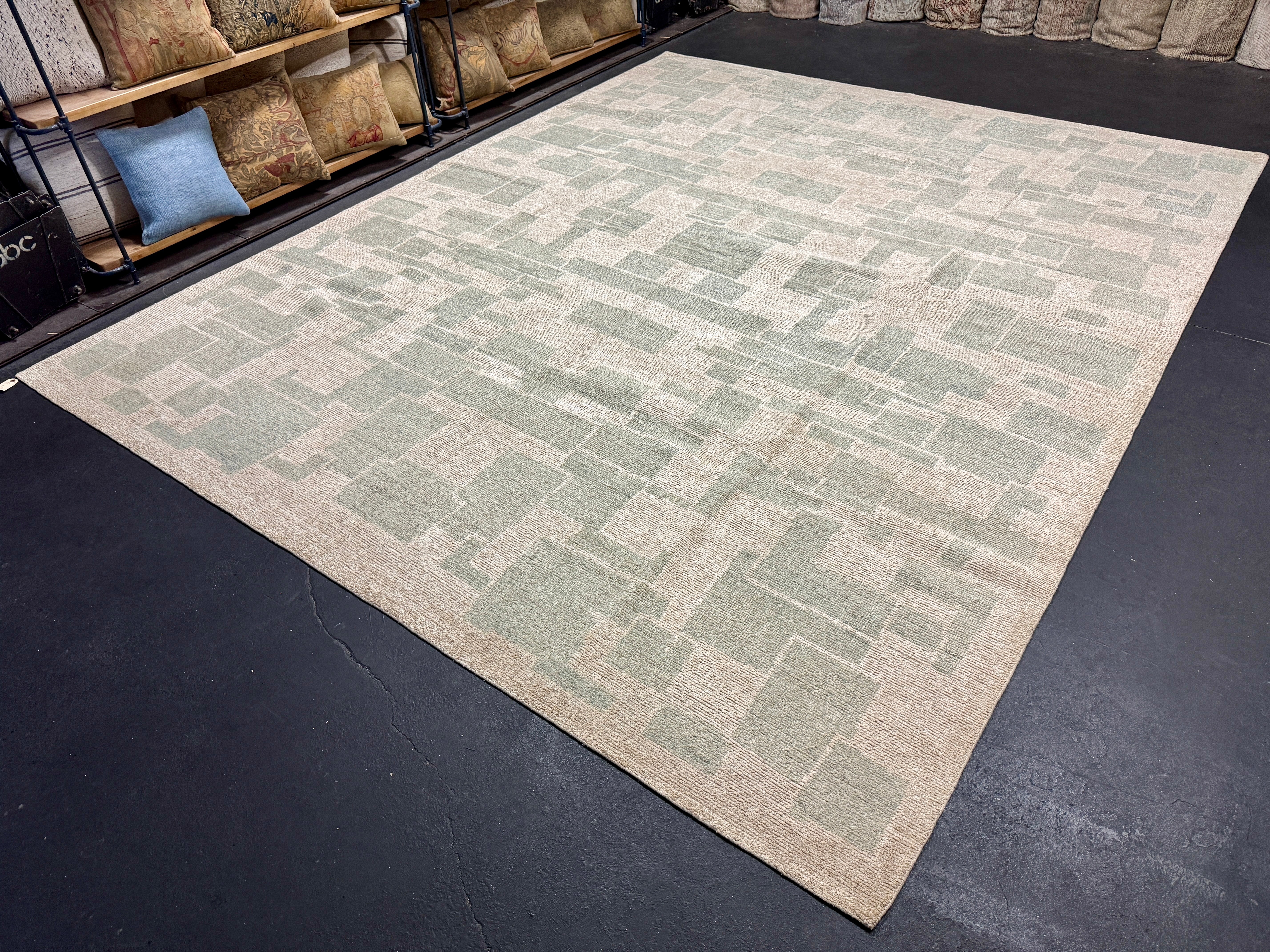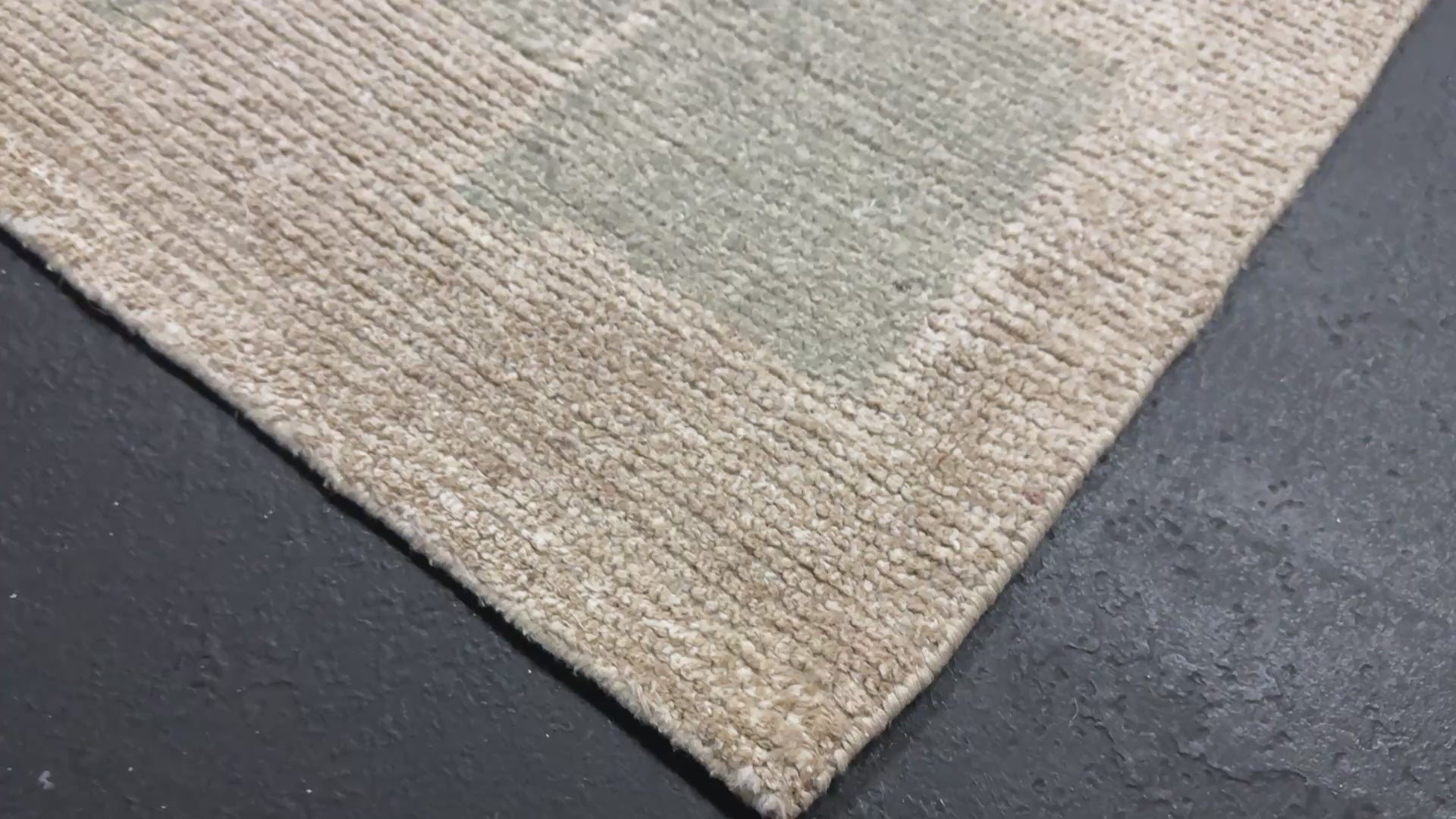 9’ x 12’ Distressed Silk Swedish Rug Green & Stone Beige LB042