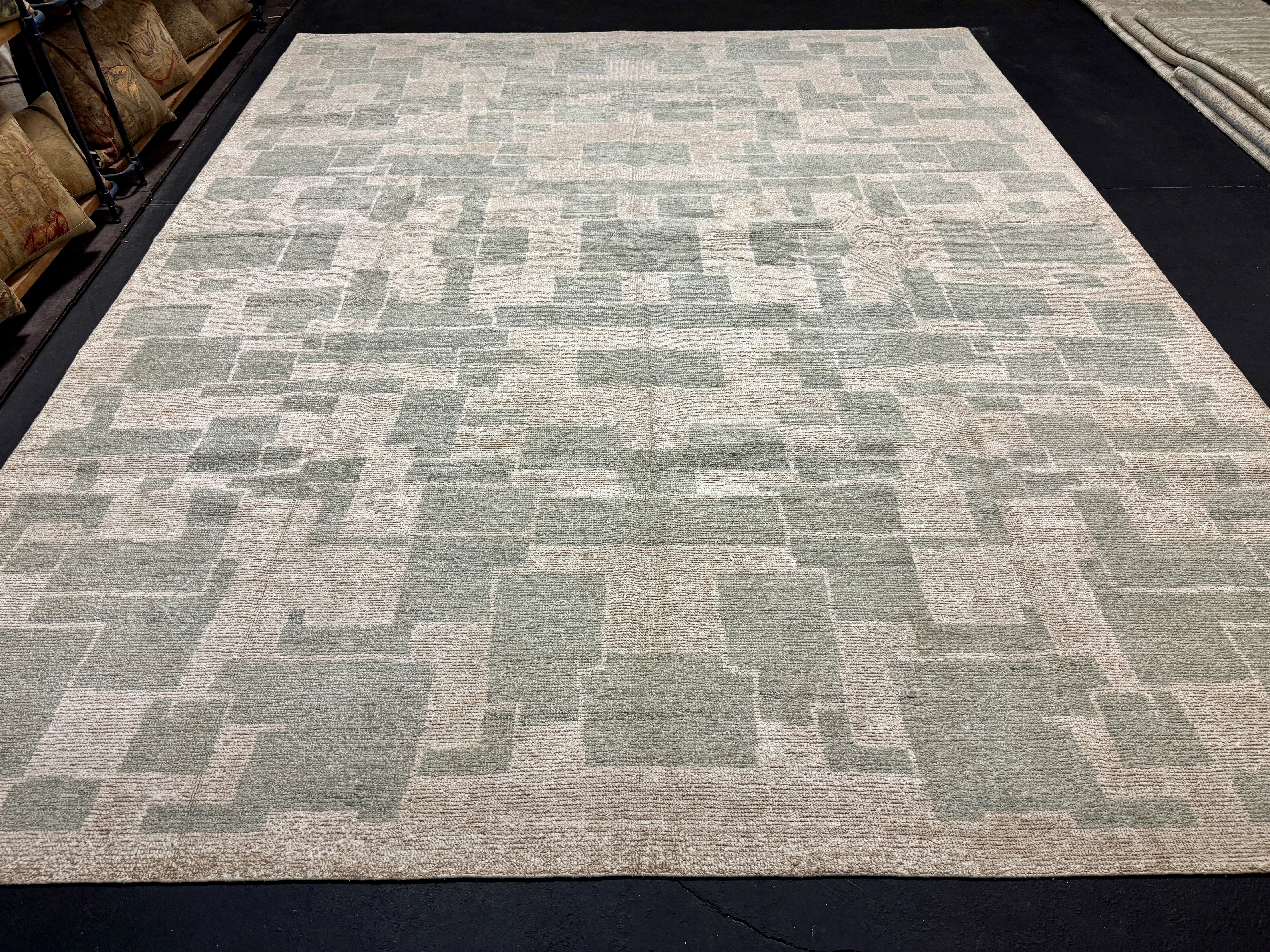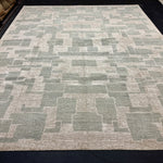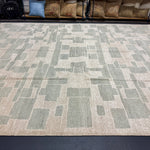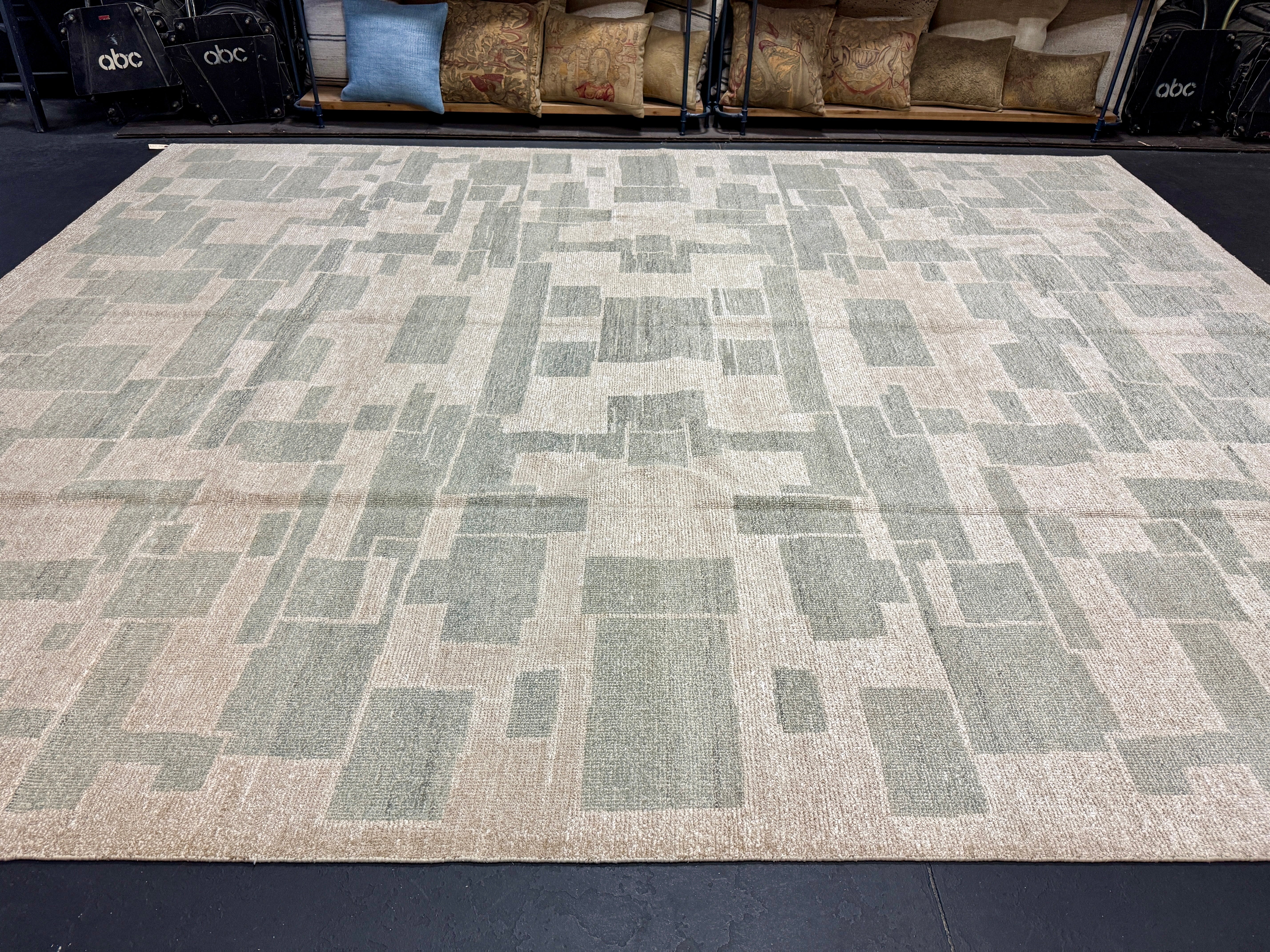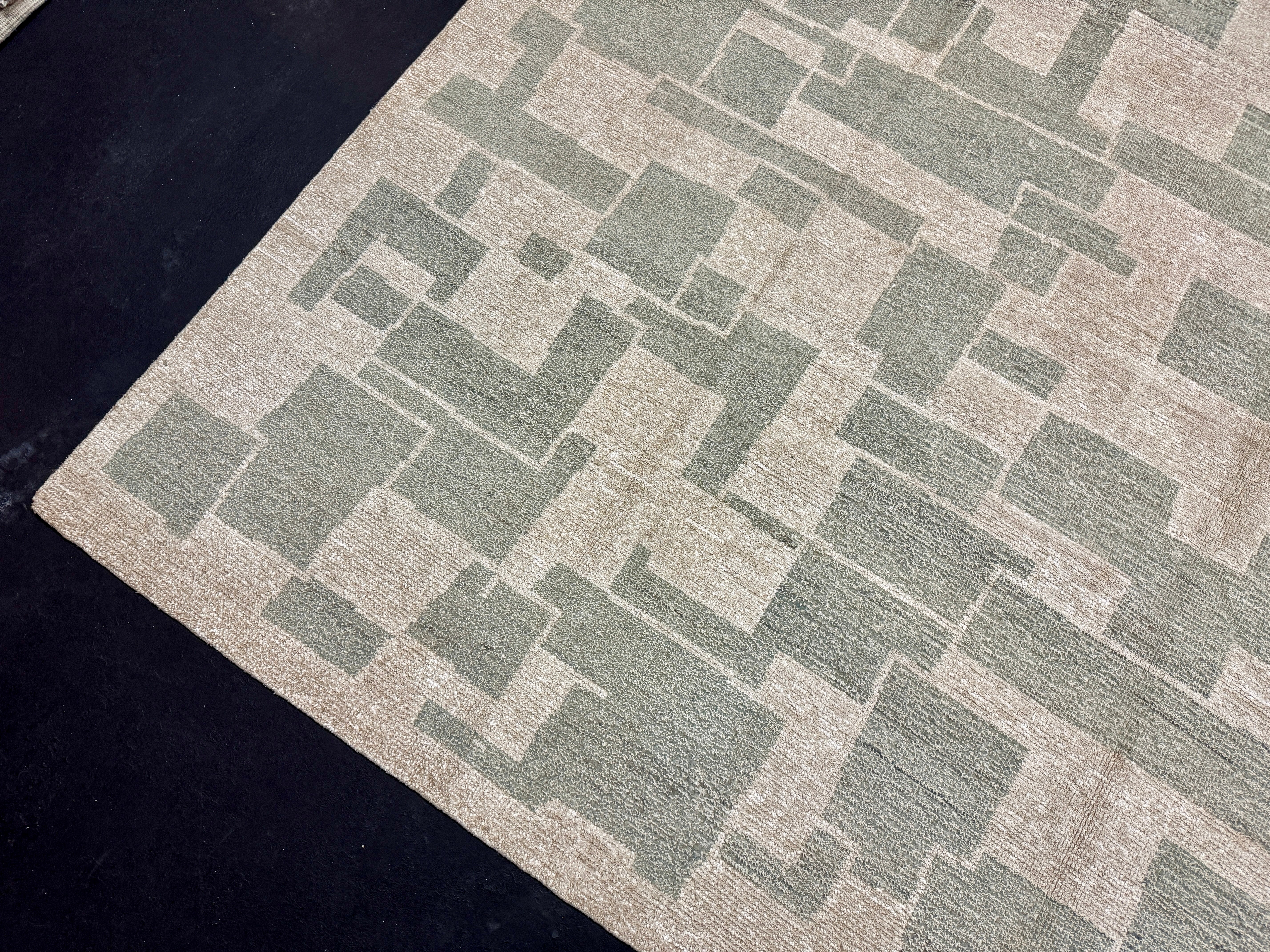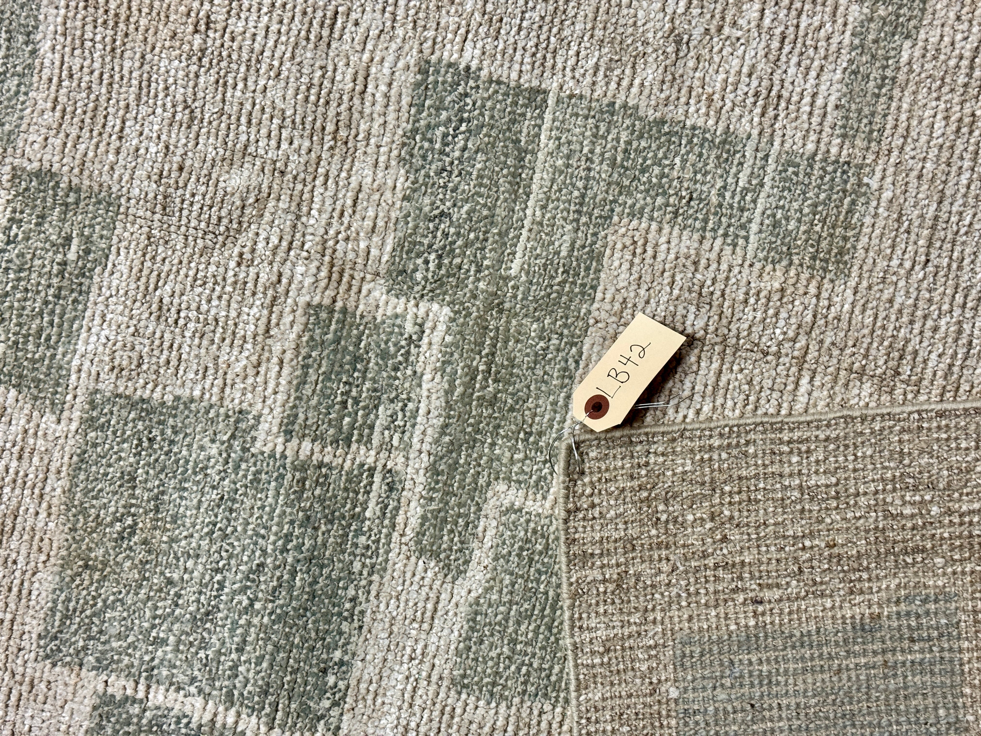 9’ x 12’ Distressed Silk Swedish Rug Green & Stone Beige LB042