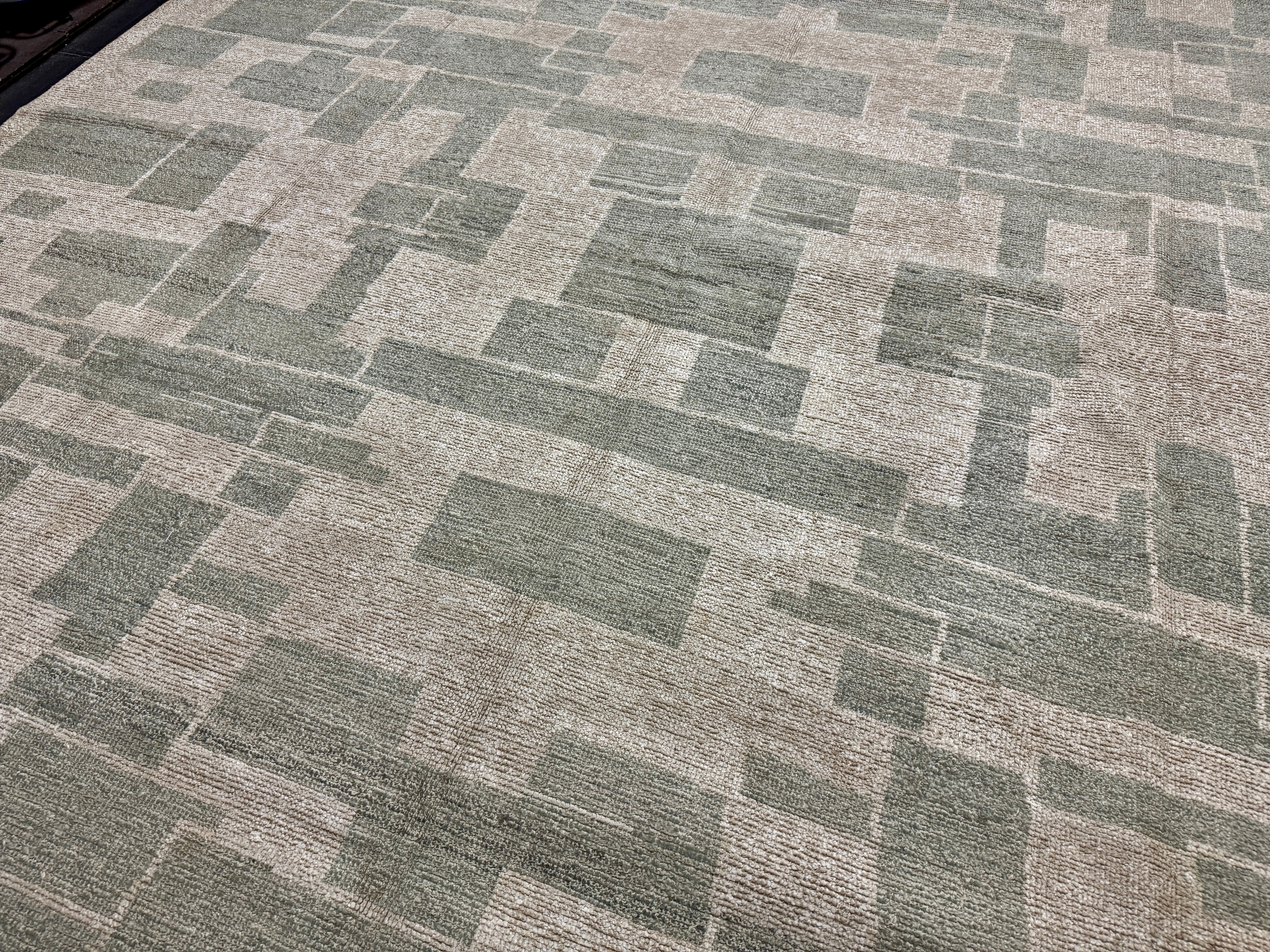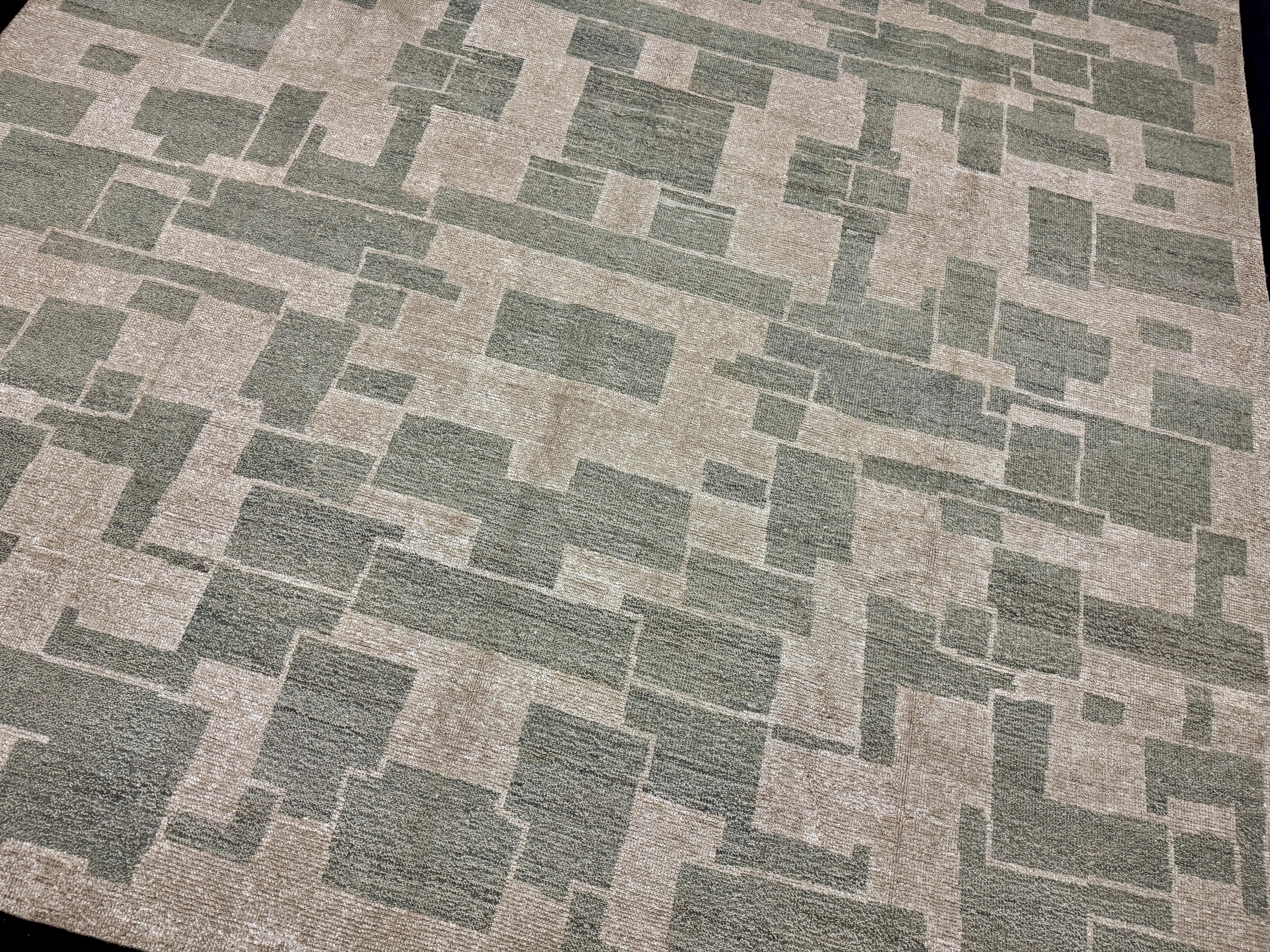 The stonewashing has been a decades long process developed by us at our restoration plant in Oushak Turkey. This stonewashed process gives a subtle sheen to the silk yet gives the appearance and texture and feel of an antique rug. It has been finished by hand washing and blocking