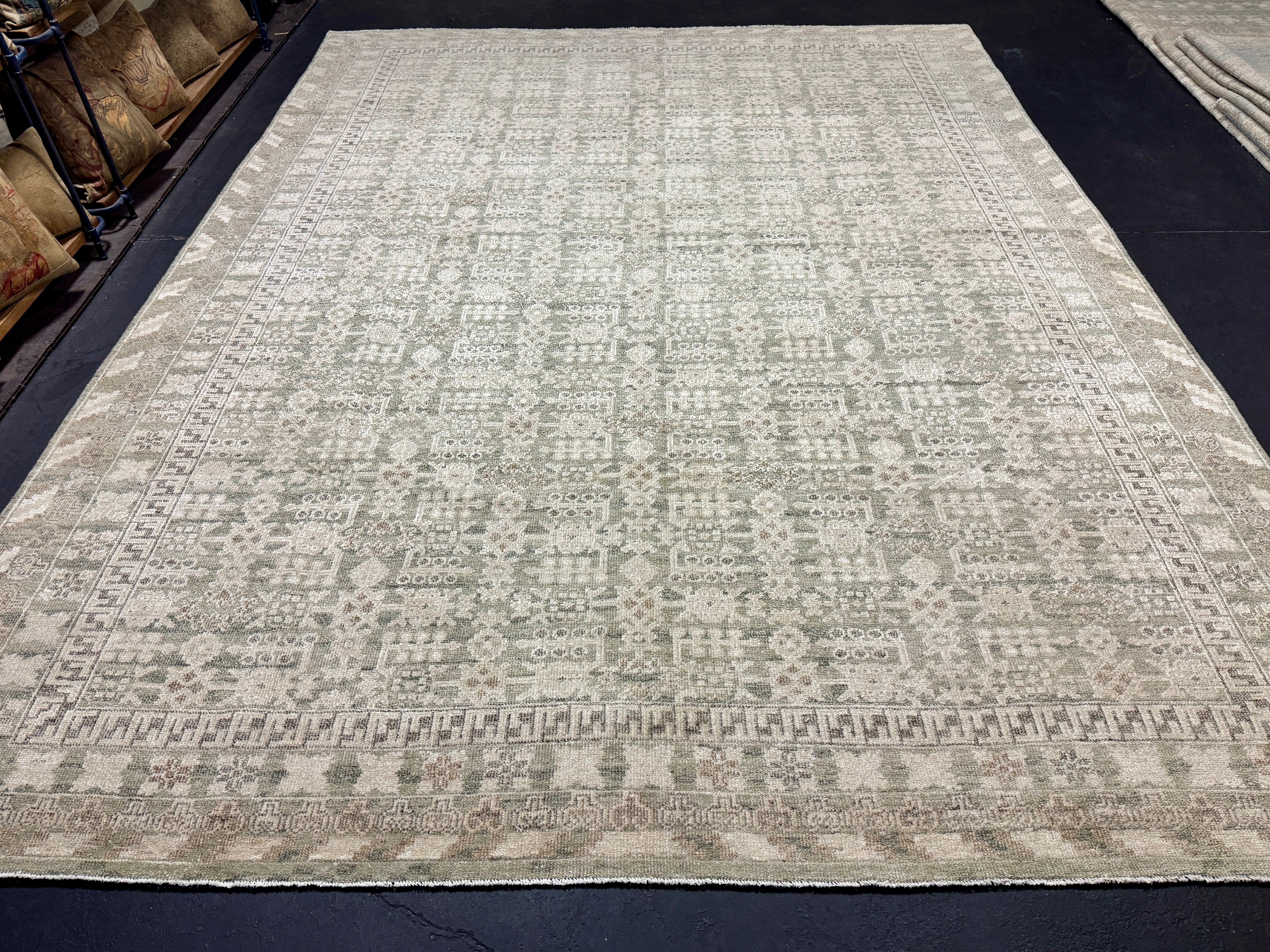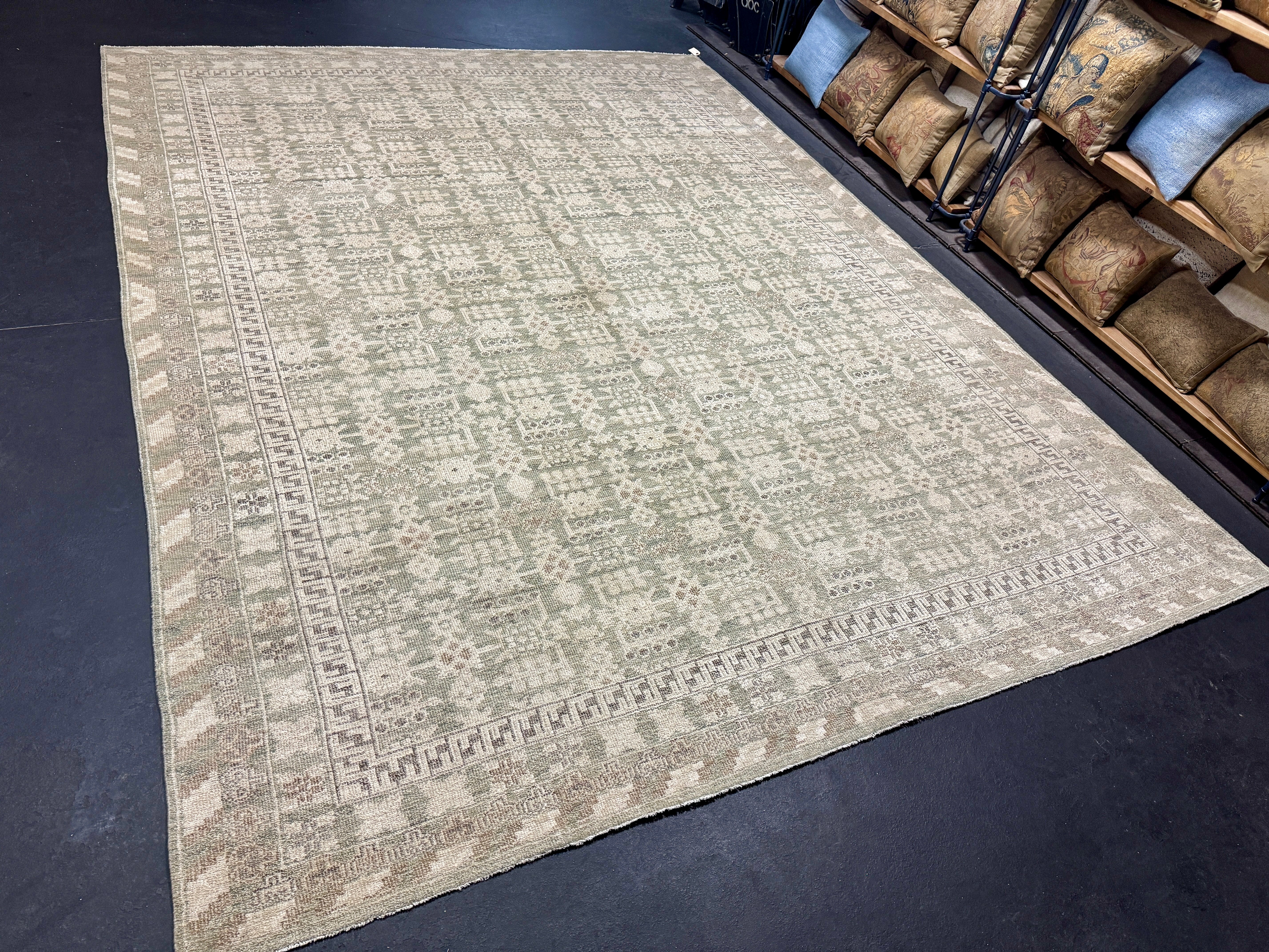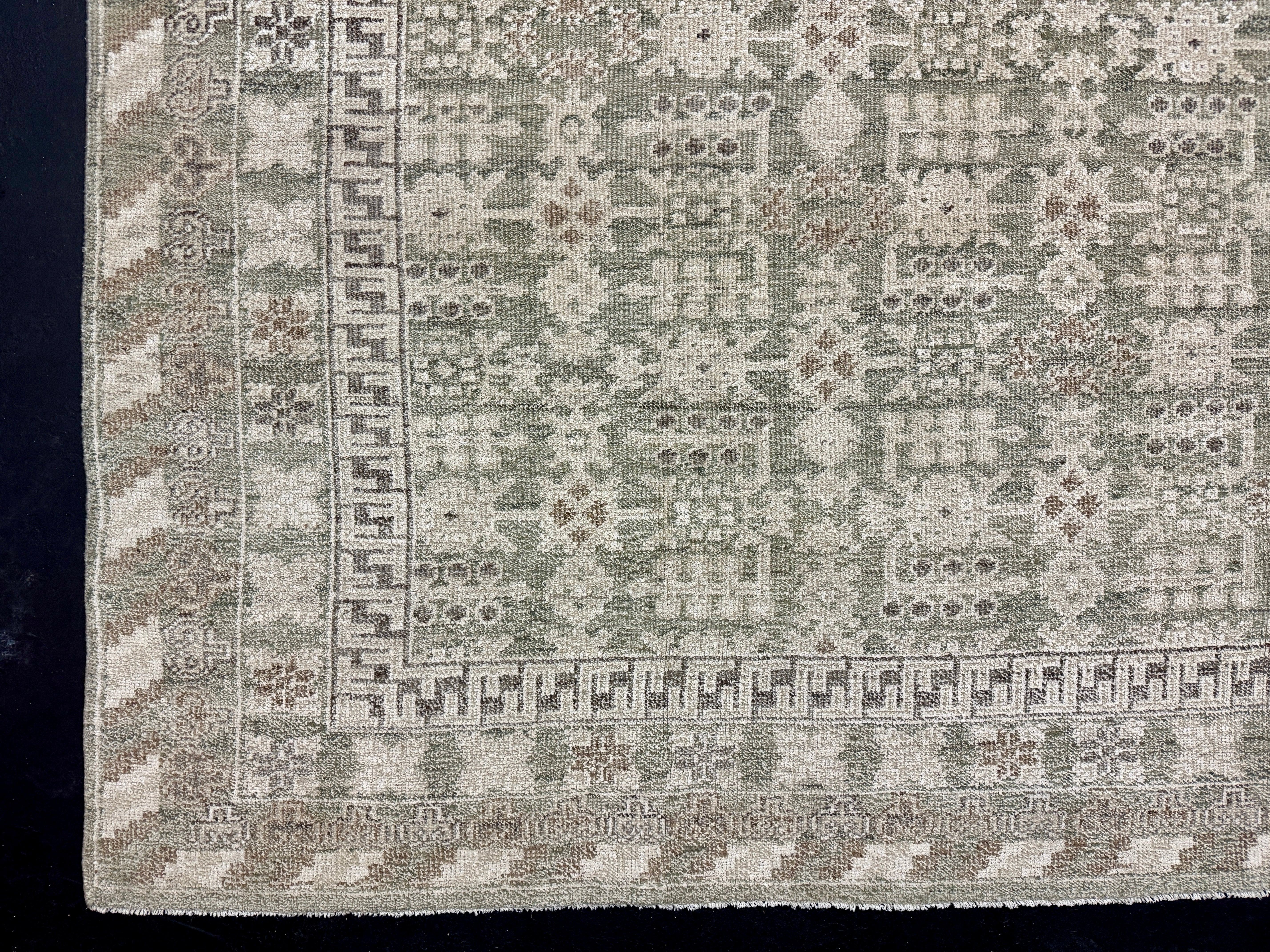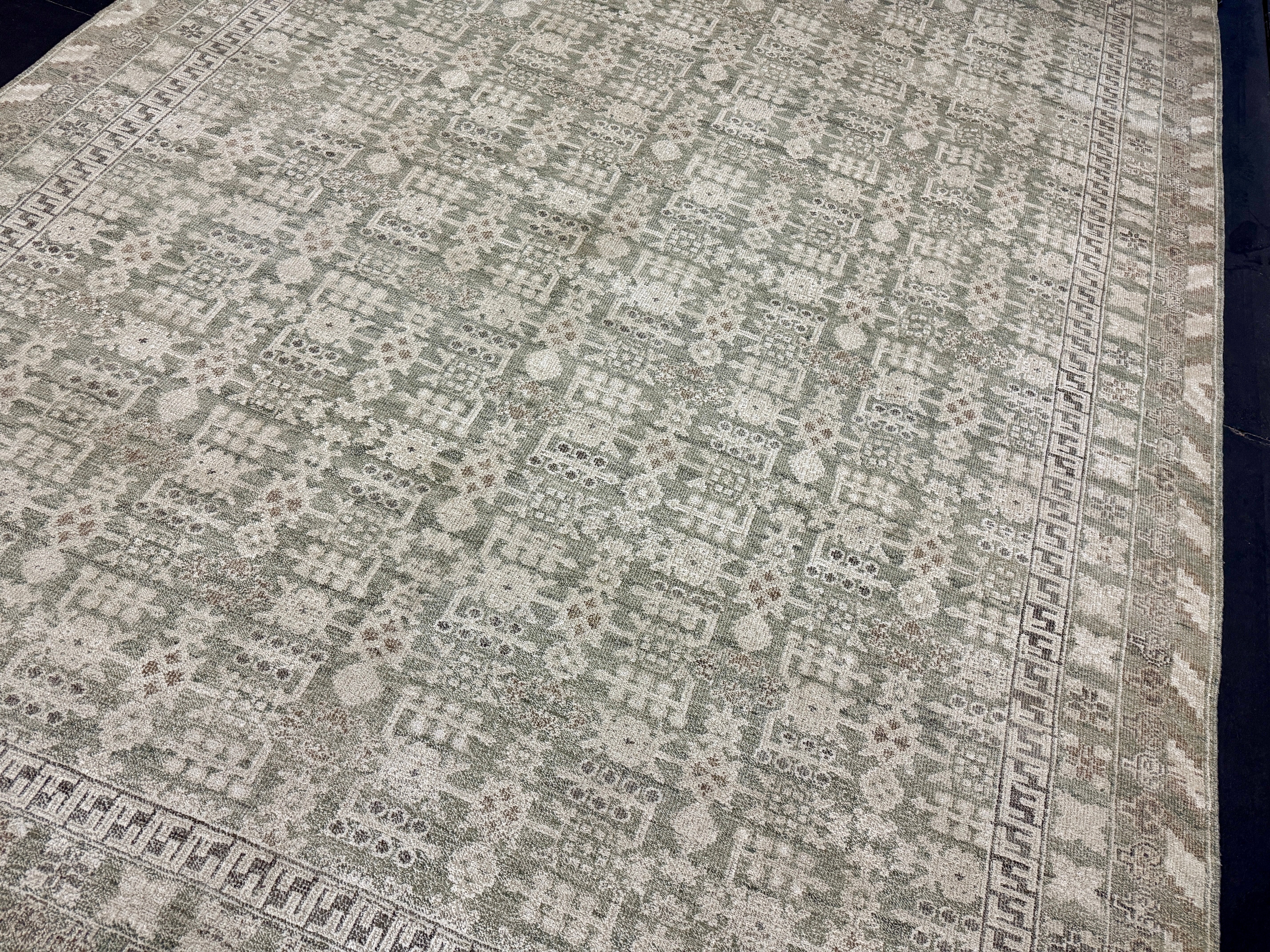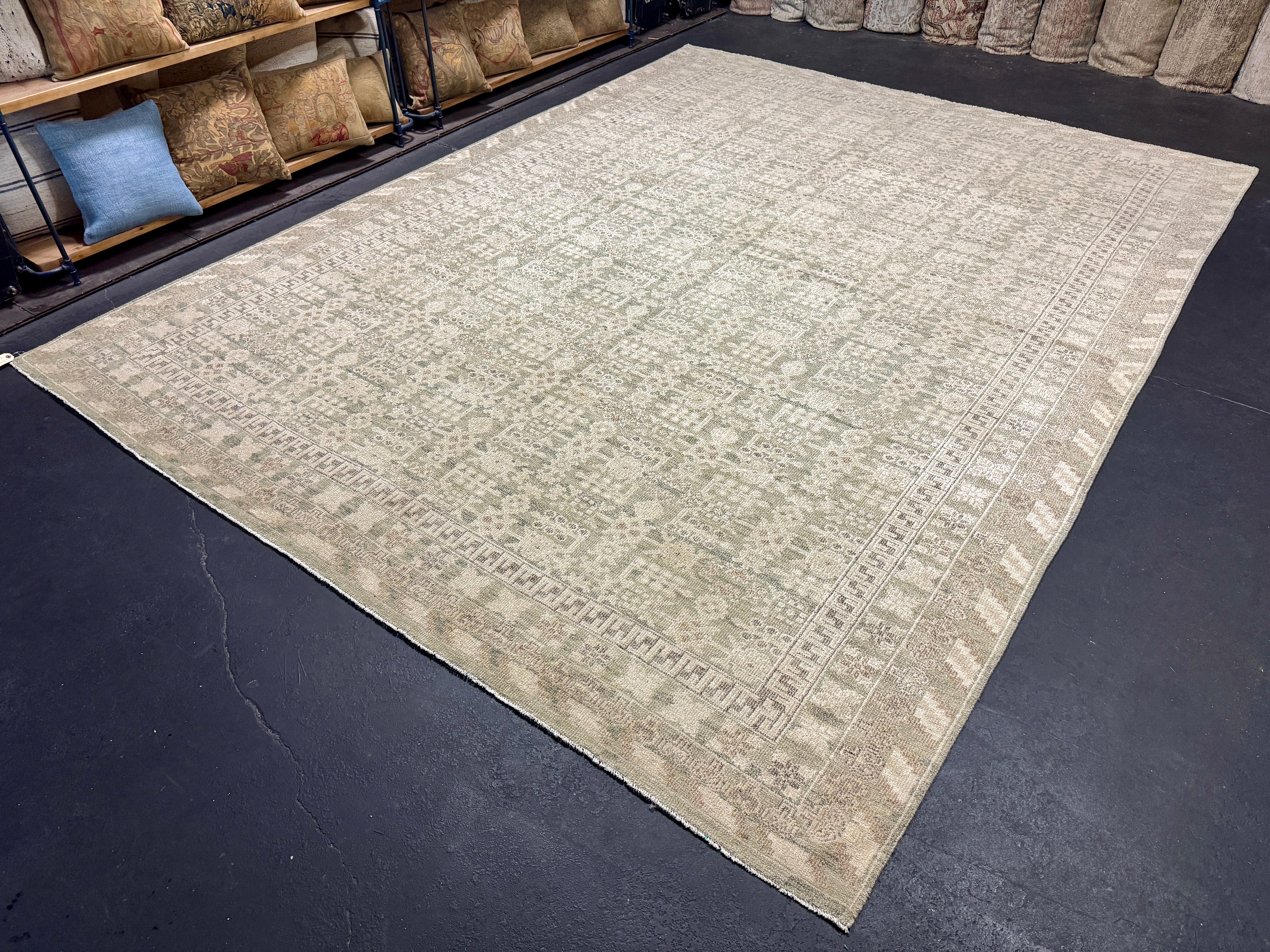 ON HOLD 9’x 12’ Distressed Silk Classic Khotan Rug Beige & Sage LB01