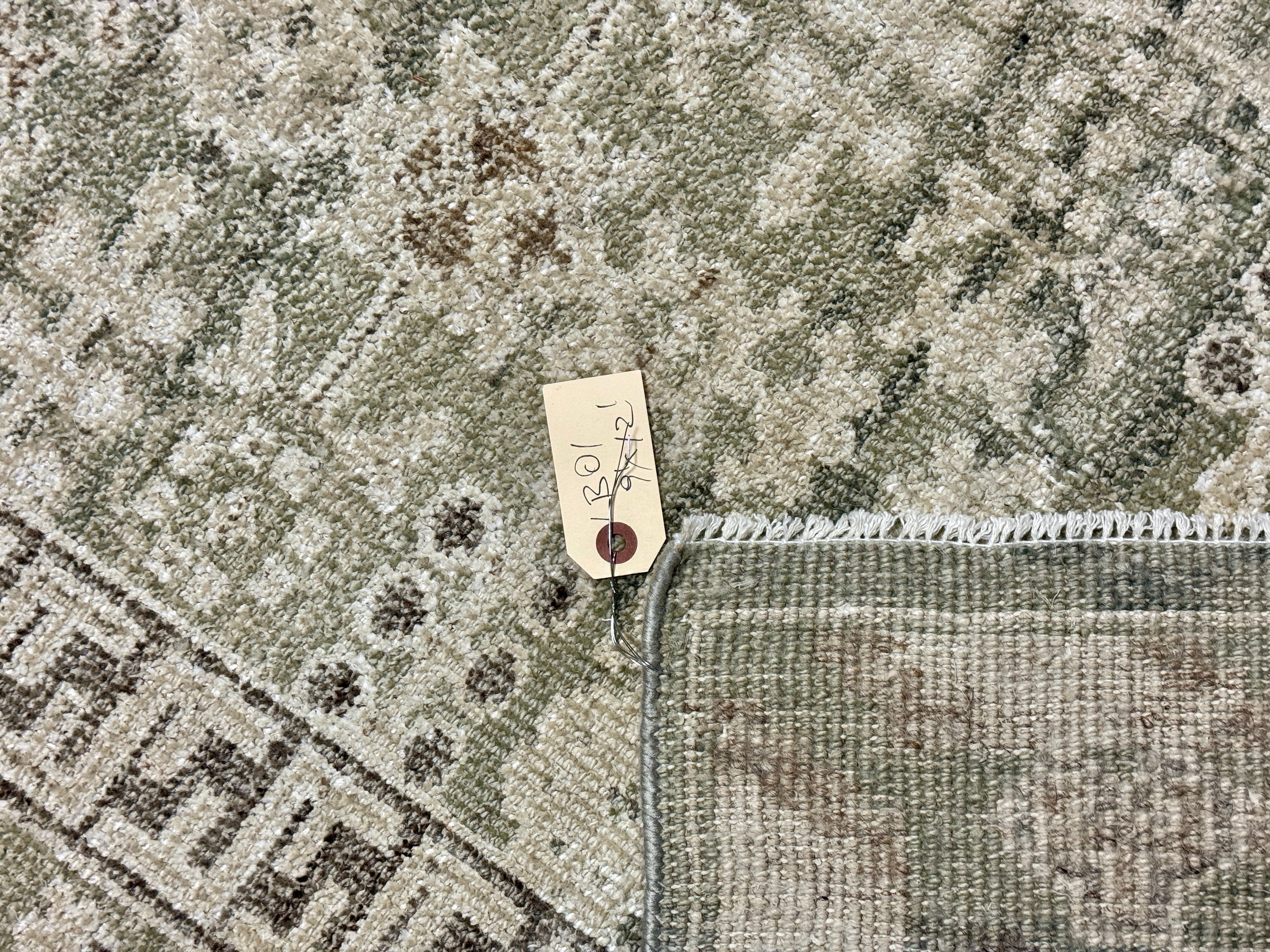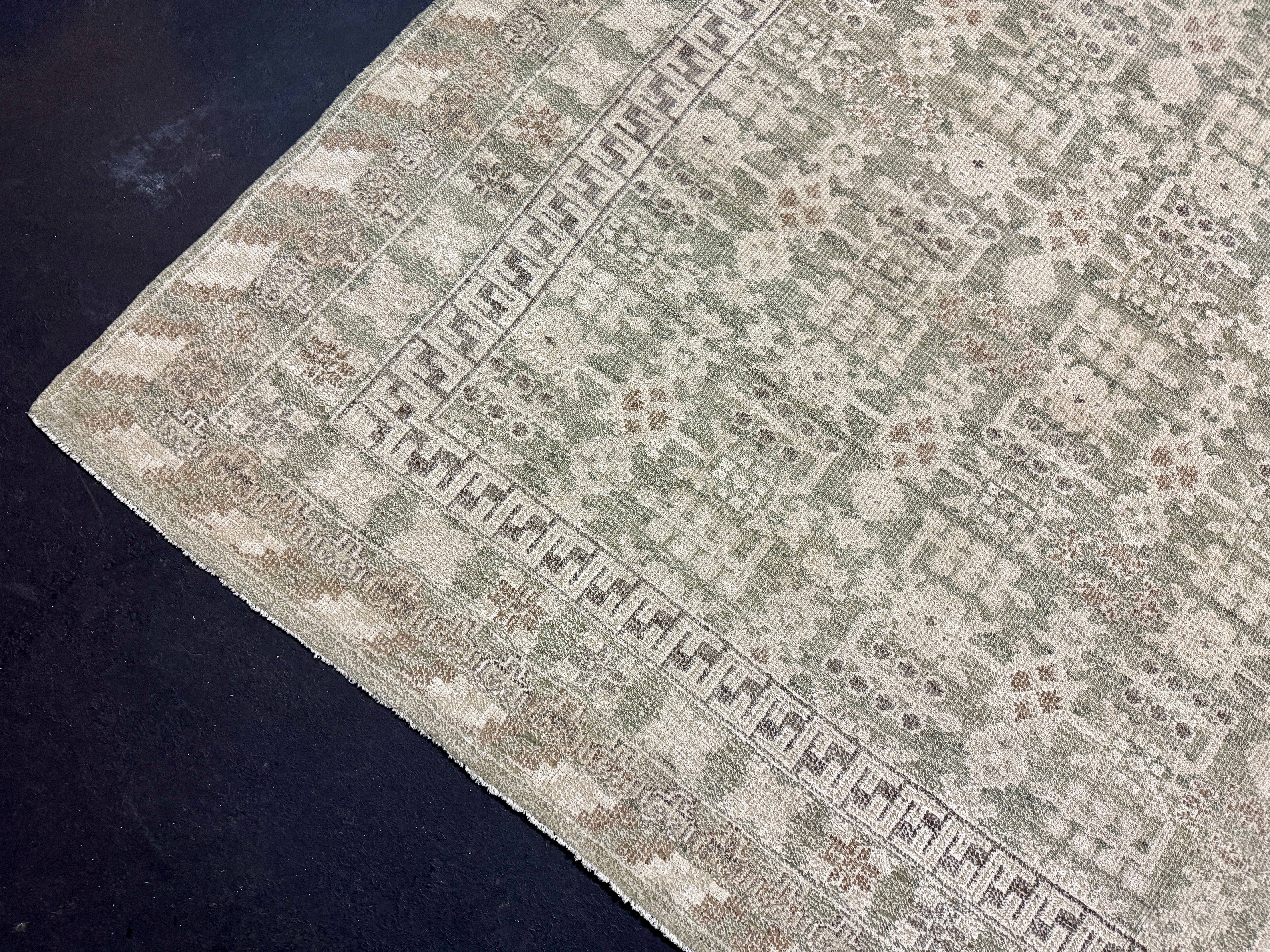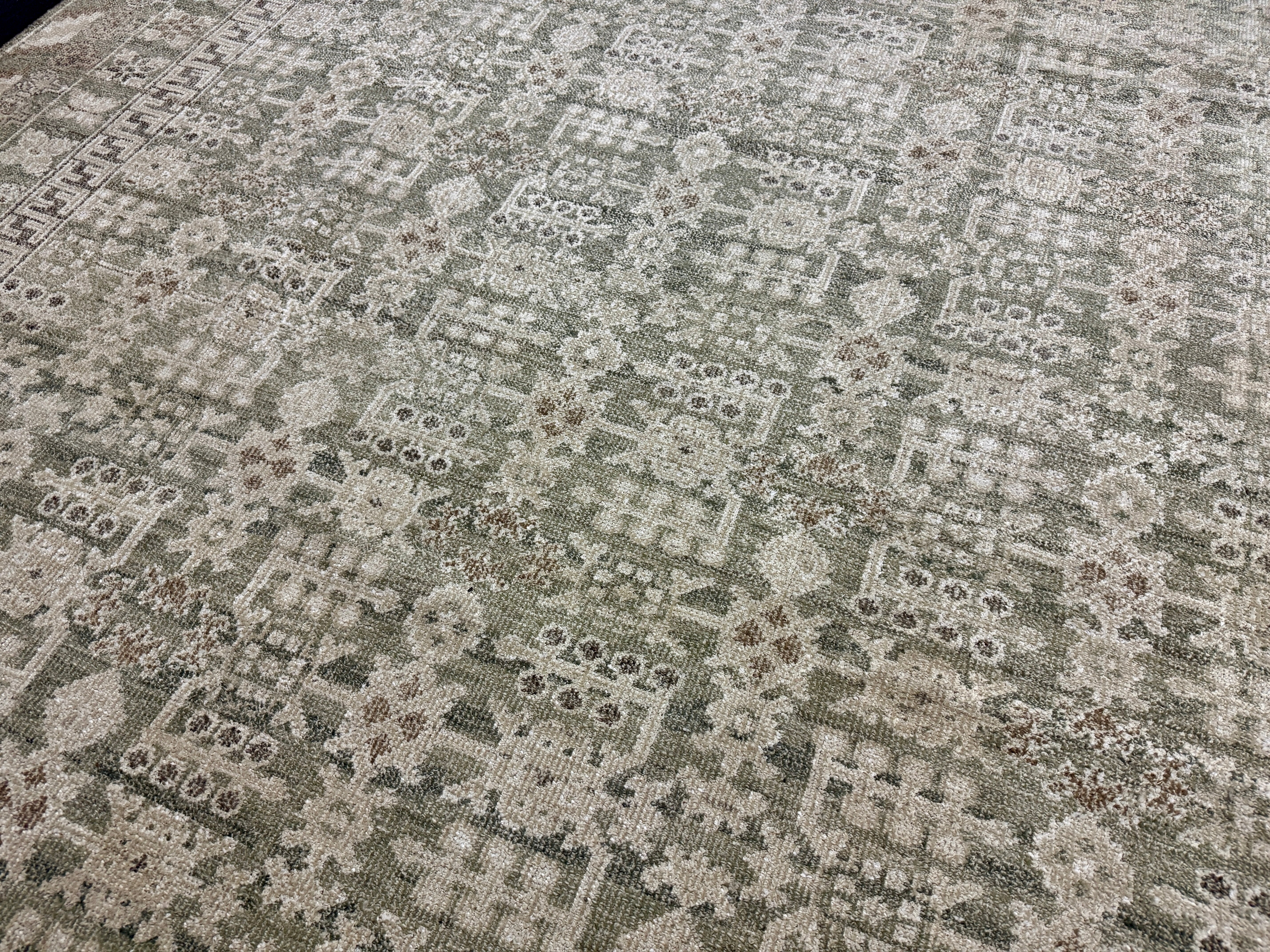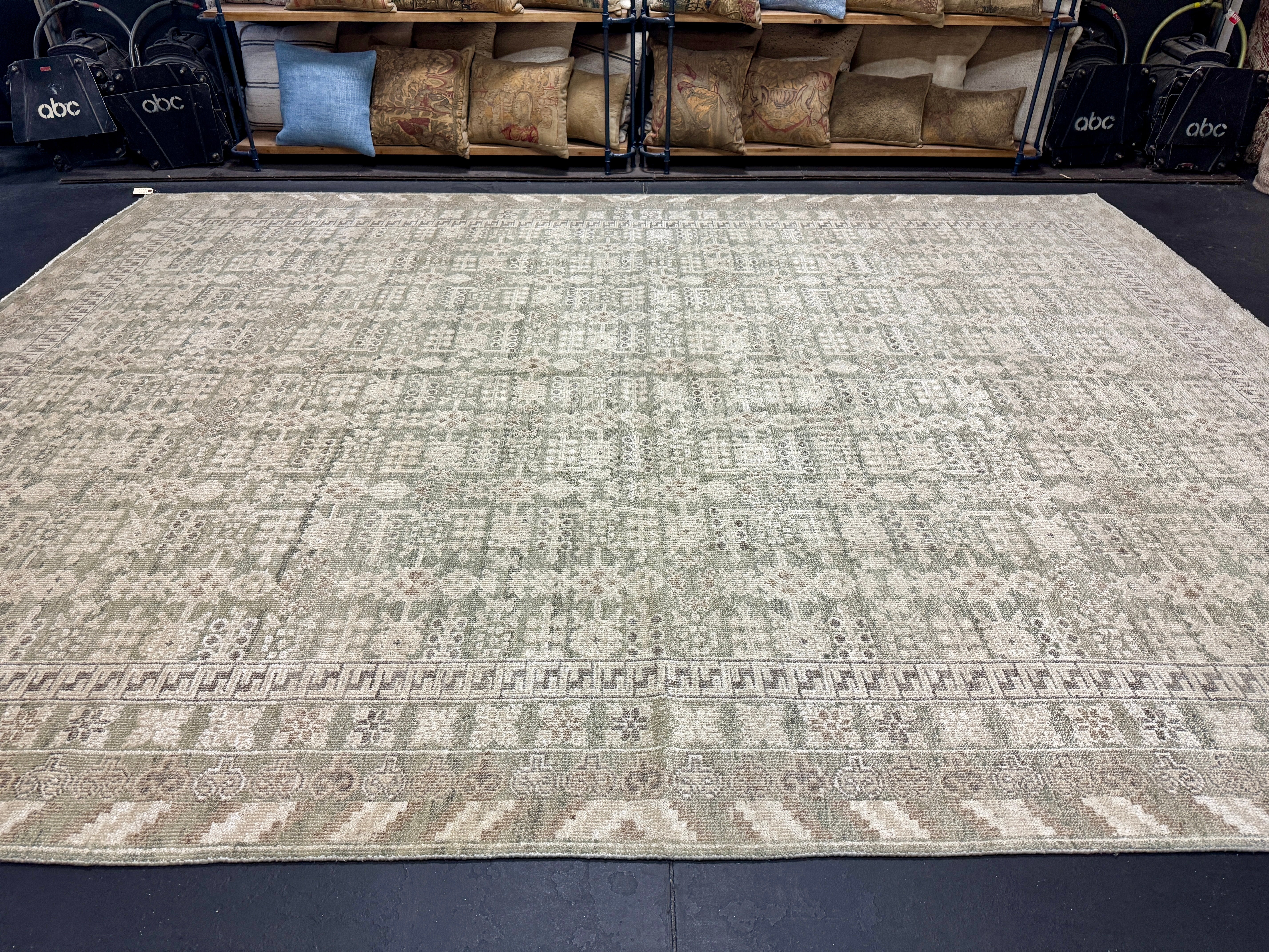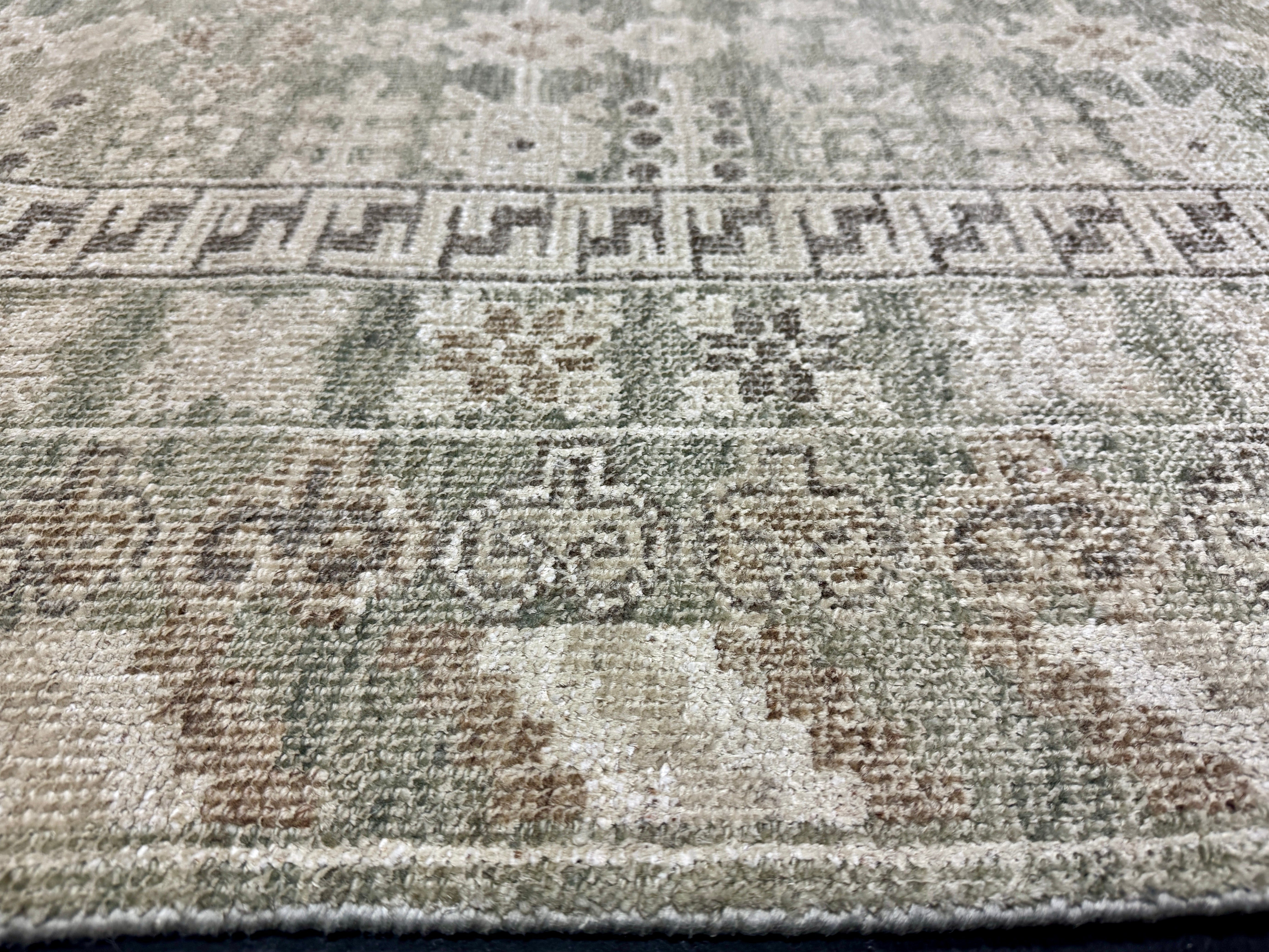 ON HOLD 9’x 12’ Distressed Silk Classic Khotan Rug Beige & Sage LB01