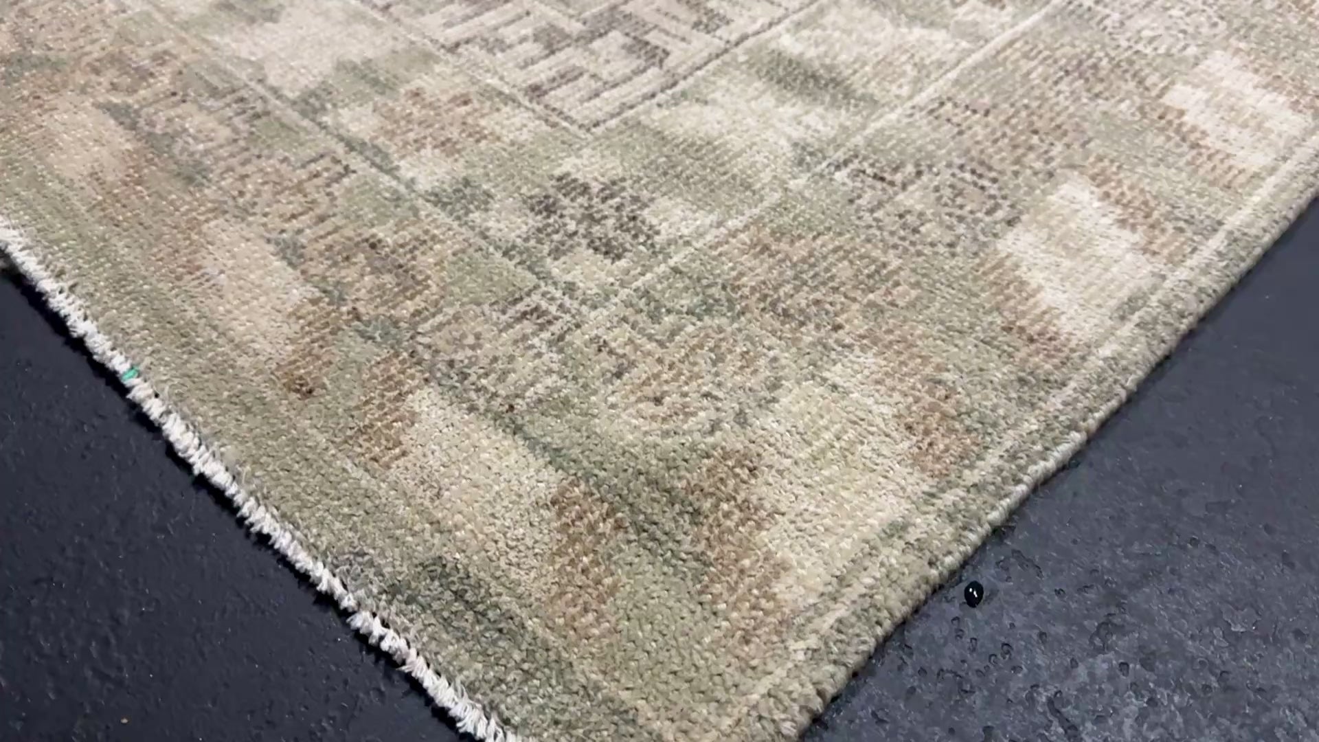 The colors in this piece are natural stone beige, sage and forest green in varying depths, with taupe and brown both lighter and deeper shades. All the three fibers are interwoven together which gives varied interest and texture